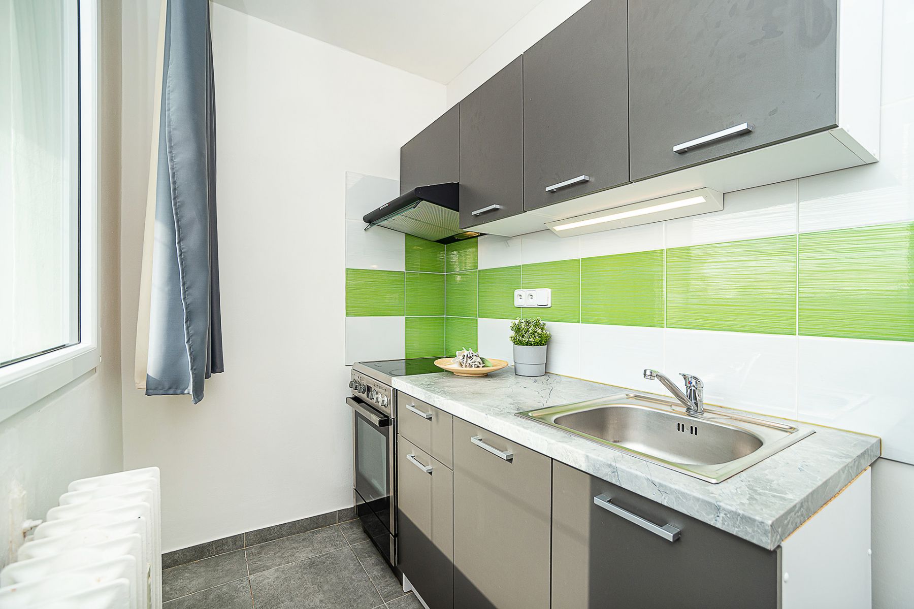 Nabízíme k pronájmu světlý a pečlivě zrekonstruovaný byt 1+kk se zasklenou lodžií v oblíbené městské části Lobeček v Kralupech nad Vltavou. Byt o celkové ploše 33 m (z toho 6 m lodžie) se nachází ve 3. patře velmi dobře udržovaného panelového domu v Krakovské ulici. Z předsíně je vstup do koupelny a do hlavní obytné místnosti. Koupelna je vybavena kvalitními obklady, sprchovým koutem, toaletou, umyvadlem a přípojkou na pračku. Obývací pokoj působí díky velkým plastovým oknům mimořádně vzdušně a svěže. V okolí nejsou žádná protilehlá okna, takže si užijete naprosté soukromí i příjemný výhled. Z pokoje je vstup na zasklenou lodžii, která se skvěle hodí k posezení, pěstování rostlin nebo sušení prádla. Kuchyňský kout je opticky oddělený a vybavený kuchyňskou linkou, dřezem, elektrickým sporákem s troubou, digestoří a prostorem pro lednici. Dlažba v kuchyni i plovoucí podlaha v obytné části jsou z kvalitních, snadno udržovatelných materiálů. K bytu náleží komora na chodbě a sklepní kóje v přízemí o velikosti 2,5 m. Byt je připraven k nastěhování a vhodný pro 1 až 2 osoby. Nábytek a dekorace z fotografií nejsou součástí pronájmu. Měsíční nájemné: 13.413 Kč Zálohy na služby: 2.187 Kč (voda, teplo, výtah) Elektřina: cca 1.000 Kč elektřina se převádí na nájemníka Vratná kauce: 15.000 Kč Rezervační poplatek: 15.000 Kč Kralupy nad Vltavou nabízejí kompletní občanskou vybavenost. Pěšky pohodlně dojdete do obchodů, lékárny, k lékaři i do restaurací či kaváren. V blízkosti je také kino a letní koupaliště. Milovníci sportu ocení cyklostezku podél Vltavy, která vede z Mělníka přes Kralupy až do Prahy a je ideální i pro inline brusle nebo kočárky. Na vlakové nádraží dojdete z Krakovské ulice za 15 minut, přímý vlak vás dopraví do Prahy přibližně za 35 minut. Autobusová zastávka s pravidelnými spoji na metro C Kobylisy je doslova pár kroků od domu. Autem se dostanete na letiště v Ruzyni za 25 minut a do OC Letňany za pouhých 18 minut. Máte zájem o prohlídku? Zavolejte mi a ráda vám byt osobně ukážu. Marta Strašilová vaše realitní makléřka