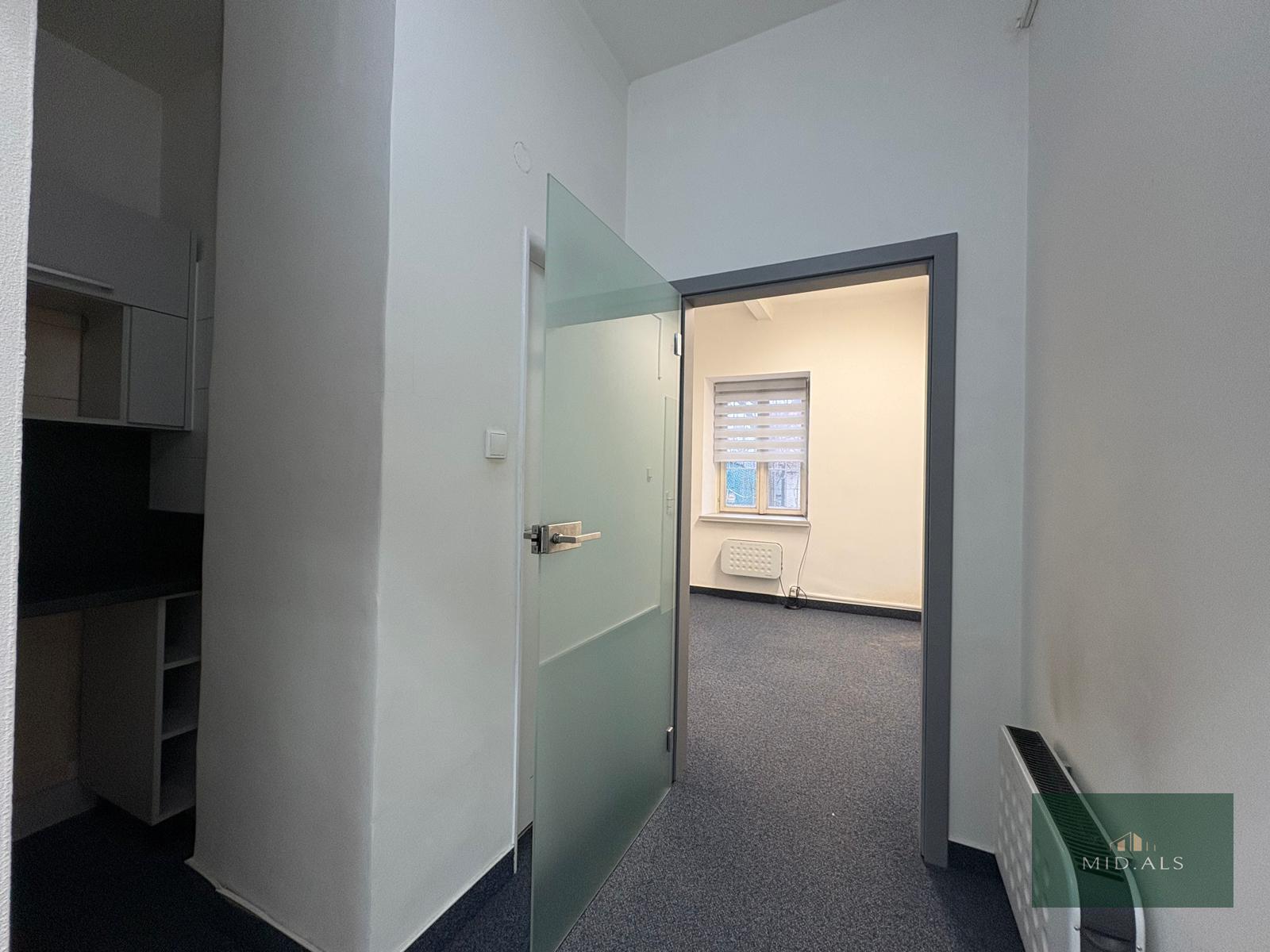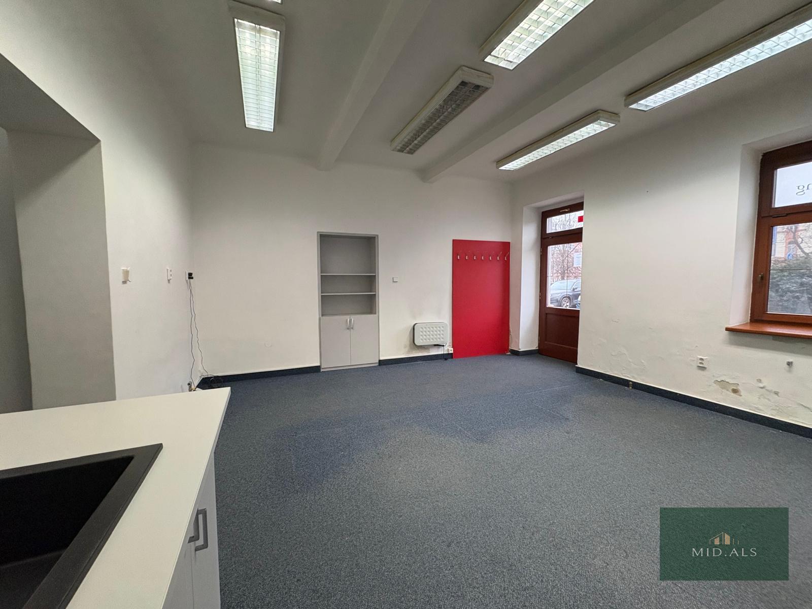 Nabízíme k pronájmu kancelářské prostory o celkové výměře 38,8 m2, přímo v centru Plzně, v Sadech pětatřicátníků. Prostory se skládají ze vstupní místnosti, do které se vchází přímo z přilehlého chodníku, o výměře 23 m2, dále z chodbičky s mini kuchyňkou, samostatného WC a z druhé místnosti o výměře 9 m2, která může sloužit jako zasedací místnost pro soukromé jednání s klienty či porady s kolegy. Umístění těchto prostor je velice strategické, přímo v centru, u křižovatky, avšak s parkováním přímo u kanceláře, samozřejmě za poplatek dle parkovací zóny. Ohřev teplé vody v bojleru, vytápění pomocí elektrických přímotopů umístěných na zdech v místnostech. Měsíční nájemné činí 13.500 Kč, přičemž elektřina se převádí na nájemníka. Při podpisu smlouvy je nutné složit kauci ve výši jednoho měsíčního nájmu a uhradit provizi realitní kanceláři ve výši jednoho měsíčního nájmu + DPH. K předání budou prostory začištěné, uklizené. Reklamu nad dveřmi je možné přizpůsobit předmětu podnikání, nebo odstranit, Prohlídky možné kdykoli, více info v rk.