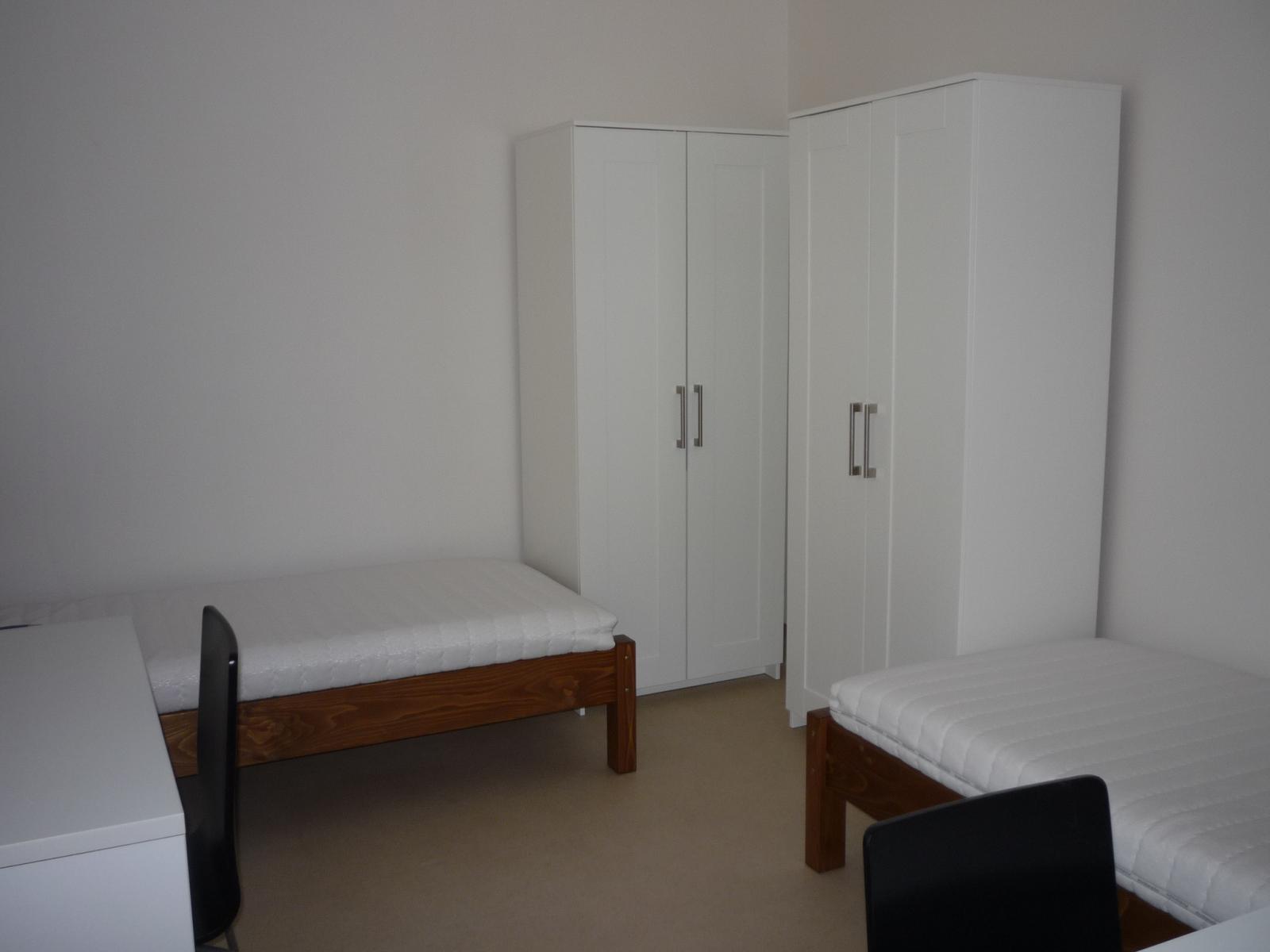 Studentské bydlení. Nabízíme dlouhodobý pronájem vybaveného bytu v 1. patře cihlové budovy v centru Pardubic. Byt o celkové ploše 59m2 má dva samostatné pokoje, zařízenou kuchyni, samostatnou toaletu a koupelnu se sprchovým koutem a pračkou. Ve vybavení pokojů je postel, skříň, pracovní stůl, internet v ceně nájmu. Ubytování je vhodné pro studenty nebo bezdětné páry, max. 4 osoby, bydlení není určeno rodinám s dětmi a zahraničním dělníkům. Nájem 14,000 Kč/měs. + 3.000 energie (podle počtu osob), kauce 2 nájmy, druhý je možné rozdělit do splátek, poplatek pro RK 1 nájem. Volné od února .