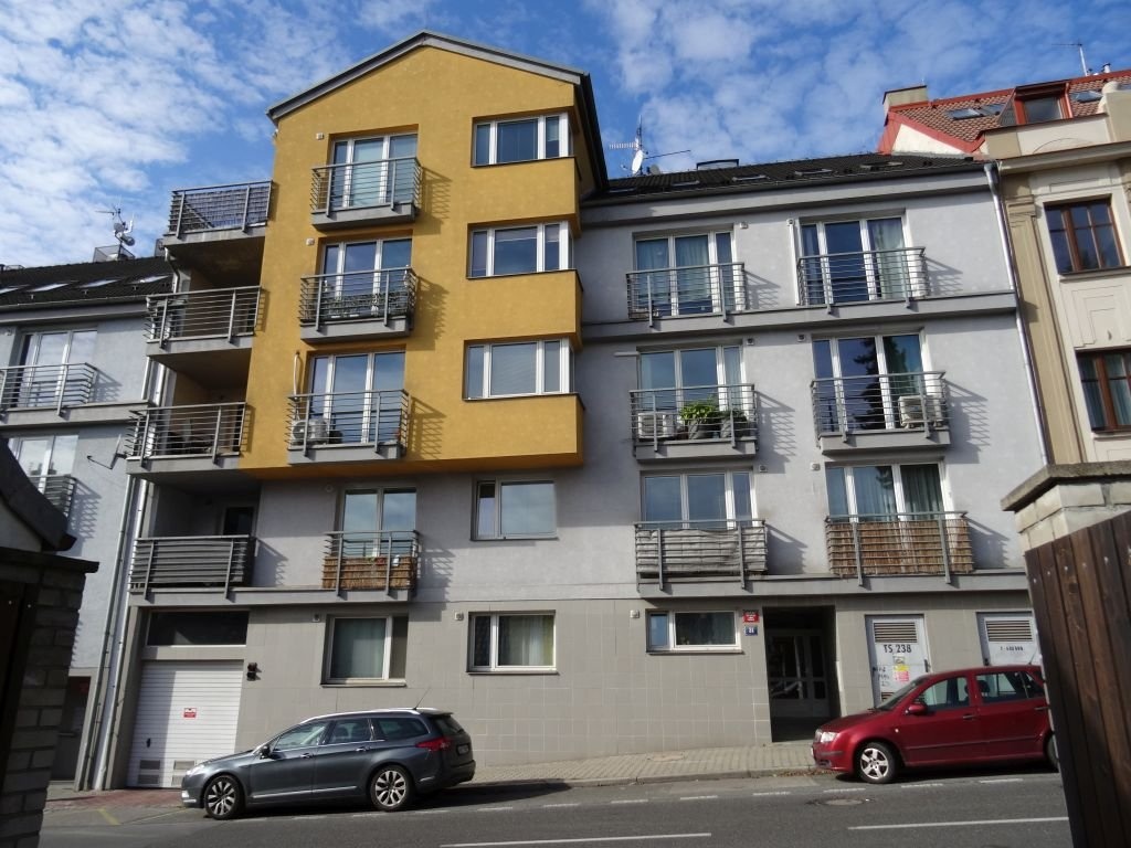 Jedná se o byt 1+kk ve 4.NP bytového domu a garážové stání. V bytě je chodba (3,46m2), koupelna s WC (4,42m2), šatna (1,79m2) a pokoj s kuchyňským koutem (25,84m2). Francouzské okno v pokoji je plastové na jihovýchod, vytápění je ústřední teplovodní do radiátorů z dálkového zdroje vč. teplé užitkové vody, dveře náplňové, na podlahách je keramická dlažba a plovoucí laminátová podlaha, v pokoji je kuchyňský kout bez kuchyňské linky, v koupelně umyvadlo, sprchový kout a WC. K bytu náleží sklep o ploše 1,70m2 v suterénu domu.