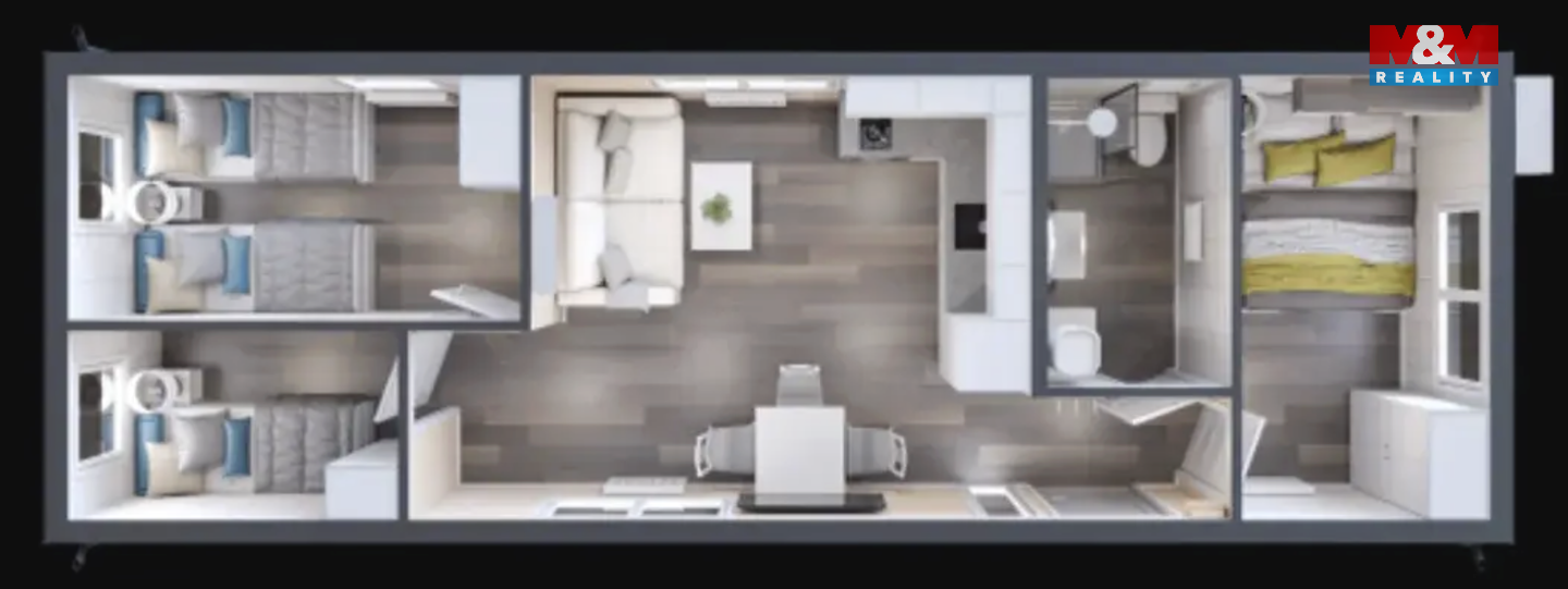 Na prodej nabízíme moderní mobilní dům na klíč, ideální pro ty, kteří touží po klidném dostupném bydlení nebo po pohodovém místě k odpočinku a rekreaci. Tento jednopodlažní dům smíšené konstrukce (ocel, dřevo, plasty, hliník) je vybaven nábytkem a spotřebiči, takže po předání je připraven k okamžitému nastěhování. Užitná plocha činí 48 m2. Dům lze umístit na jakýkoliv pozemek určený k zastavění do 6 měsíců od získání stavebního povolení. Předmětem prodeje je samotný mobilní dům bez pozemku. Cena zahrnuje převoz na místo, usazení domu je účtováno dle složitosti případu. Cena je uvedena bez DPH, které se odvíjí od komplexnosti obchodu. Nepropásněte tuto jedinečnou příležitost k pořízení domu a starosti se získáním stavebního povolení na Váš pozemek nechte na projektantovi. Se zajištěním výhodného financování pomůže partner MM finance. Domluvte si prohlídku v showroomu v Rychnově nad Kněžnou ještě dnes.