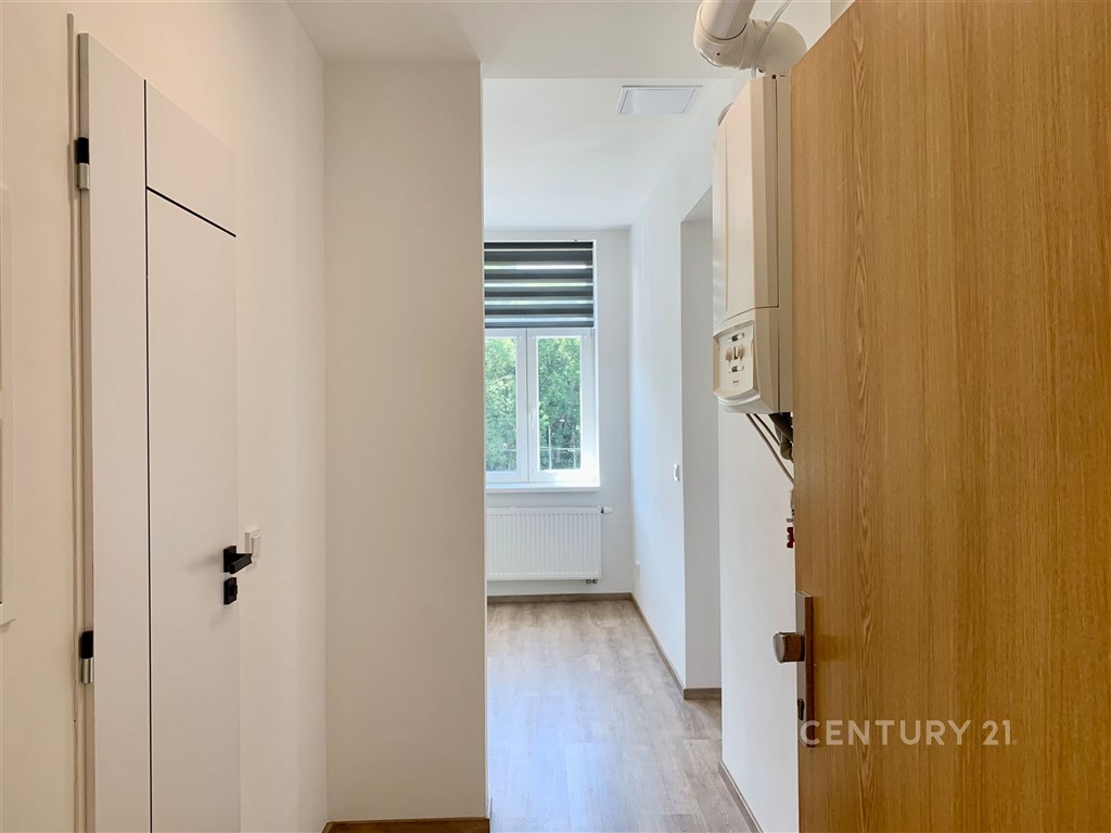 Nabízíme k pronájmu kompletně zrekonstruovaný byt o velikosti 53 m2 a předsíní 5 m2 s jedním parkovacím místem, který se nachází ve 2. patře zatepleného cihlového domu v centru Liberce, v těsné blízkosti autobusového a vlakového nádraží. Celková rekonstrukce byla dokončena v červenci 2024. Interiér je vybaven novou kuchyňskou linkou se všemi spotřebiči včetně lednice a nabízí dostatek prostoru pro jídelní stůl. Ložnice je přístupná z obývacího pokoje a nabízí prostor pro manželskou postel. V nové moderní koupelně se nachází sprchový kout, umyvadlo se zrcadlem a osvětlením, toaleta i vyhrazené místo pro pračku. Velkou výhodou je menší místnost bez okna, která může sloužit jako prostorná šatna a je již vybavena šatní skříní. V celém bytě jsou na oknech instalovány praktické rolety den/noc. Před vstupem do bytu se nachází uzamykatelná předsíň sdílená pouze s jedním sousedem, vhodná například pro umístění botníku. Lokalita nabízí skvělou dostupnost a veškerou občanskou vybavenost v bezprostředním okolí. Zastávky MHD, autobusové i vlakové nádraží jsou dostupné do 5 minut chůze. K bytu náleží jedno vyhrazené parkovací stání přímo u domu, které je již zahrnuto v ceně nájmu. Měsíční nájemné činí 16 500 Kč, zálohy na služby 3 500 Kč (z toho 1 200 Kč vodné a stočné, společná elektřina a úklid společných prostor, 1 200 Kč elektřina a 1 100 Kč plyn). Jistota (kauce) je stanovena ve výši 33 000 Kč a provize realitní kanceláři činí jeden měsíční nájem. Byt je ideální pro dvě osoby a bude připraven k nastěhování začátkem března po vymalování.