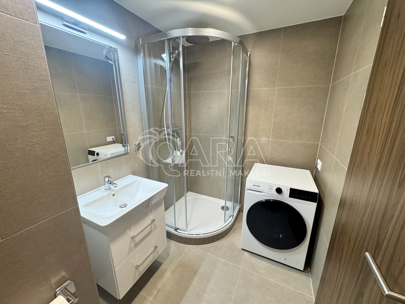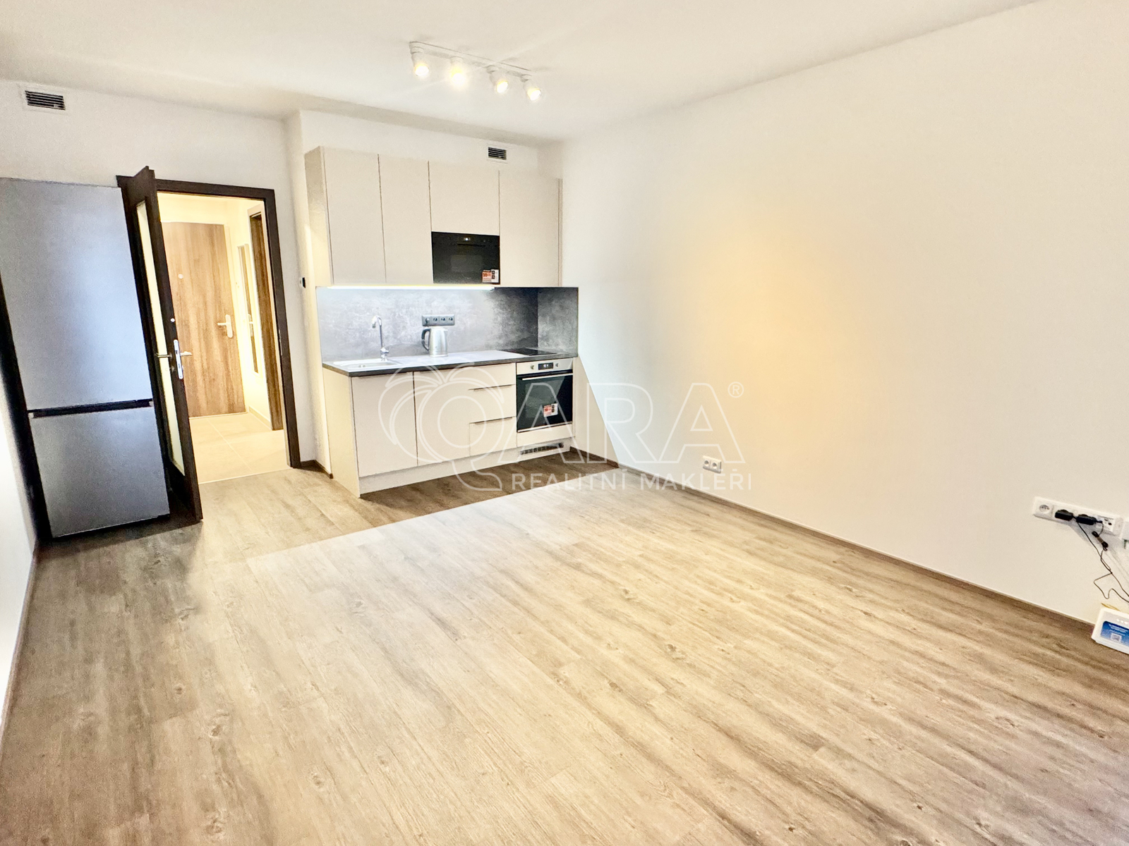 Nový byt o dispozici 1+kk se nachází ve 3. nadzemním podlaží moderního projektu Rezidence Tesla Hloubětín. Rezidence nabízí příjemné a klidné bydlení s výbornou dopravní dostupností i plnou občanskou vybaveností v okolí. Dispozici bytu tvoří vstupní chodba s vestavěnou skříní, hlavní obytná místnost s kuchyňským koutem, dále koupelna se sprchovým koutem a toaletou. Kuchyňská linka je plně vybavena spotřebiči - k dispozici je myčka, mikrovlnná trouba, trouba, elektrická varná deska a digestoř. Velká lednice s mrazákem. V koupelně je pračka se sušičkou. Byt je vybaven rekuperační jednotkou, která pomaha šetřit na vytapení bytu. Velkým benefitem bytu je prostorná lodžie orientovaná do vnitrobloku, která poskytuje příjemné soukromí. Byt se pronajímá jako nezařízený. V případě zájmu je možné dovybavení dle dohody. Součástí pronájmu je také sklepní kóje. Byt je k dispozici ihned. Měsíční poplatky činí 2 467 Kč, elektřina bude převedena na nájemce. Kauce je stanovena ve výši 38 000 Kč. Provize realitní kanceláře činí 9.450 Kč.