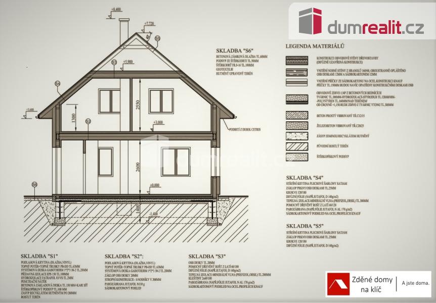 Dumrealit.cz Vám zprostředkuje výstavbu patrového domu 5+kk s užitnou plochou 93m2 v Bojkovicích. Součástí uvedené ceny je i pozemek o velikosti 1227m2 o šíři 13m a délce cca 88m, který je územním plánem schválen pro výstavbu rodinného bydlení. Jedná se o patrový dům, ideální až pro 5 člennou rodinu s nízkými provozními náklady. Uvedená cena je za kompletní výstavbu domu na klíč, včetně DPH, projektové dokumentace, vyřízení stavebního povolení, základové desky až po kolaudaci. V projektu jsou možné variabilní úpravy dispozice (posuny příček či oken). V uvedené ceně můžete počítat s finálními povrchovými úpravami exteriéru i interiéru, a to včetně elektroinstalací, sanitárního vybavení s bateriemi, interiérovými dveřmi včetně obložek, vytápění je řešeno teplovodním podlahovým topením v kombinaci tepelného čerpadla se 180L zásobníkem na teplou vodu. Za příplatek změníme systém vytápění nebo vystavíme komín pro krbové kamna nebo pro využití krbové vložky. Garáž spojená s domem, za příplatek. Pro náročnější klienty máme nabídku nadstandardního vybavení chytré domácnosti, klimatizaci, externí žaluzie a rolety a další. Doba výstavby cca 14 měsíců od vydání stavebního povolení a stavbu zahájíme do 10 dnů od jeho vydání. Smlouvy o dílo zašleme na vyžádání včetně vzorového položkového rozpočtu. Možnost výstavby pouze hrubé stavby za 2.816.000,-Kč. Tento typ domu Vám rádi ukážeme, který je k dispozici nedaleko Bojkovic. Seznámíte se se skladbou materiálů a můžete si tak projít dispozice domu. Podrobnější informace, včetně změny stavebního materiálu například na dřevostavbu, naleznete na webových stránkách naší spolupracující firmy Zděné domky na klíč. Máte-li svůj projekt nebo jen nějakou představu, pošlete nám ji a my vám jej naceníme. Změna na jiný typ domu je možná. Pomůžeme i s hledáním vhodného pozemku dle zaslaného zadání. Fotografie domů jsou domy, které jsme jednak realizovali, ale také vám je rádi ukážeme. Doporučuji prohlídku! Ev. číslo: 653506. Energetický štítek: A (49 kWh/m2/rok).