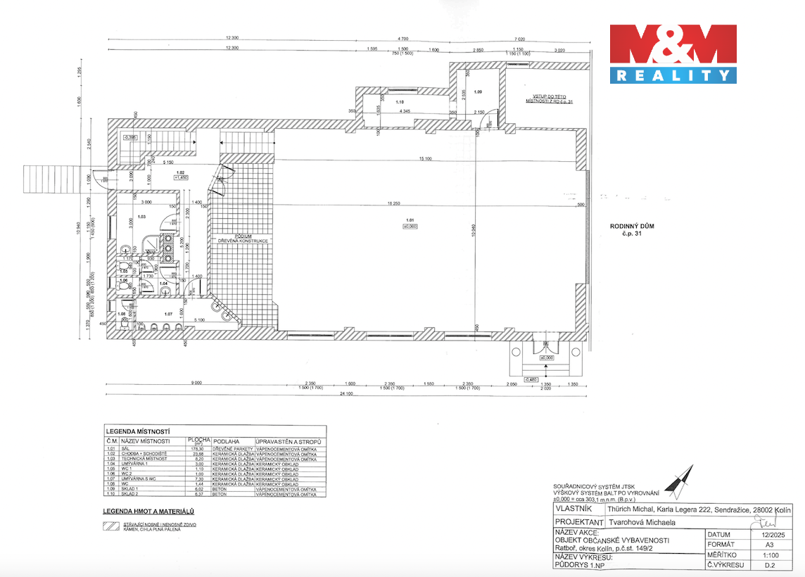 Nabízíme k prodeji jedinečný komerční objekt s rozmanitými možnostmi využití, ideální pro podnikání či investici. Nemovitost je určena k rekonstrukci a nachází se na okraji obce Ratboř, pouhých 7 km od Kolína. Nabízí výbornou dostupnost i bezproblémové parkování a to na vlastním pozemku 87m2 nebo na obecním. Stavba občanského vybavení, postavena přibližně před 100 lety byla průběžně rekonstruována a rozšiřována. Budova je zděná z cihel i kamene, což jí dodává unikátní historický ráz. Objekt je napojen na veřejný vodovod, elektřinu a má vlastní jímku. K dispozici je rozsáhlý sál s pódiem cca 180m2, skladové prostory, toalety, umývárny, technické zázemí. Vytápění krbem nebo kotlem na tuhá paliva rozvedeno do radiátorů. Využijte této mimořádné příležitosti a kontaktujte nás pro více informací!
