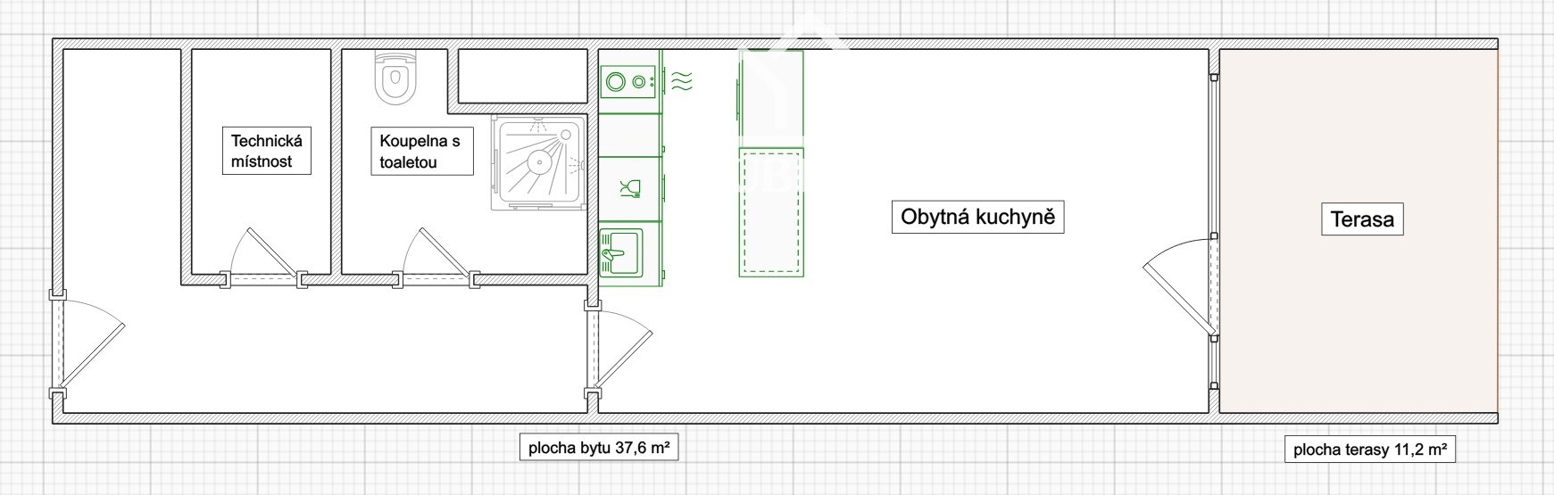 Novostavba 1+kk s parkováním a terasou, Plzeň