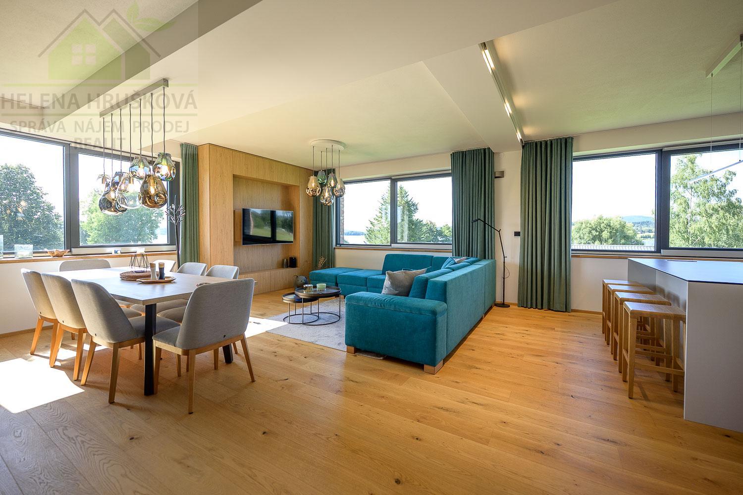Byt volný ihned ! Dobrý den, dovoluji si Vám exkluzivně zprostředkovat dlouhodobý nájem prostorného bytu 3 kk, 95 m2, na břehu Lipenské přehrady, u Molla Jestřábí, nacházející se v novostavbě bytového domu č.p. 209, Černá v Pošumaví. Přízemí nemovitosti tvoří sokromé wellness s bazénem a posilovnou určené pro rezidenty. Byt se nachází v 1.NP/3.NP, v bezprostřední blízkosti pláže, kdy součástí nájmu plně vybaveného bytu je 1 garážové parkovací stání a sklepní koje, přístup na soukromou pláž zdarma. Byt je součástí vyjímečného projektu, který nabízí moderní designové prosvětlené byty, nadstandardní jsou i použité materiály a vybavení, Byt tvoří předsíň, prostorný obývací obývací pokoj s kuchyňským koutem, vybaven moderní kuchyňskou linkou se značkovými elektrospotřebiči - el. varná deska, multifunkční trouba, mikrovlnná trouba, digestoř, myčka, lednice s mrazákem. Dále hlavní ložnice, dětský pokoj - hostovský pokoj, koupelna a samostatné WC, vybavení -vana, sprchový kout, umyvadlo, zrcadlová skříňka s osvětlením, pračka, sušička. Pronajímá se včetně vybavní nábytkem, sedací souprava, jídelní stůl pro osm osob, TV, designové osvětlení, kompletní vybavení ložnice a dětského pokoje, úložné prostory, kvalitní zatemnění - závěsy. V ceně nájmu jedno garážové parkovací stání v suterénu budovy a sklepní box. Nájem 50.000,- Kč/měs + služby + energie. Vratná kauce 100.000,- Kč + zprostředkovatelský poplatek 1 nájem. Nízké provozní náklady, ekonomická náročnost budovy B. Blízkost Yacht Klubu Jestřábí s moderním zázemím, MOLO Jestřábí s přístavištěm, nabízející nádherné výhledy a atmosférou. Pronajímá se dlouhodobě, vhodné jak k trvalému bydlení, tak k rekreaci. Prohlídky kdykoli po dohodě, vyjímečná nabídka, pro milovníky vodních sportů, rybaření, turistiky, lyžování a neopakovatelné atmosféry tohoto místa.
