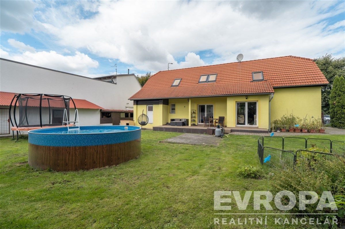Klidné bydlení nedaleko Prahy. K prodeji nabízíme rodinný dům v ulici Bezručova, který prošel nákladnou rekonstrukcí až do dnešní podoby, v přízemí a podkroví je zhruba 180m2 bytové plochy pro celkem šest pokojů, kuchyň a další prostory. Přízemí je šikovně prosvětlené francouzskými okny na zahradu, obývací pokoj, ložnici a kuchyň doplňuje koupelna, toaleta, technická místnost, šatna a hala. Obývací pokoj je průchozí přímo na kryté venkovní posezení, orientované na jih do klidného vnitrobloku. V podkroví jsou čtyři dětské pokoje a vlastní koupelna s toaletou. Přípojka na obecní vodovod, kanalizaci, k dispozici samozřejmě elektřina a plyn. Ústřední topení na plynový kotel, ohřev vody zabezpečují dva bojlery. Internetové připojení: vysokorychlostní připojení přes optický kabel. Na zahradu se vejde bazén i trampolína, kutilové ocení zděnou vedlejší stavbu, kde se dá montovat, opravovat, skladovat, schovávat se před manželkou, parkovat motorku, lyže, nebo psa Prostě prostor pro široké využití. Na zahradě je i původní studna, takže napouštění bazénu nemusí být až tak nákladné. Bydlení v klidné, upravené vesnici s krásným okolím, kde má člověk pocit, že ještě jde o lidi. Moderní škola, několik školek, doktor, zubní lékař, dva menší obchody, pošta, alzaboxy, multifunkční sportovní areál (fotbalové hřiště, kurty pro volejbal, tenis, basketbal, inline dráha, krytá tenisová hala). Místa pro procházku, cyklostezka, pravidelné super akce (Zelenečské čáry, výlov rybníka, Staročeské máje, Mikulášská nadílka, pravidelné trhy, výlety, plavání, ochotníci, letní kino na místní louce a další.). Ale hlavně parádní spojení na Prahu. Nemusíte autem, můžete na vlak, nebo autobus vlak jezdí každou chvilku (cca 25minutna Hlavní nádraží), autobus je na metru B Černý Most za cca 15 minut. V posledních desetiletích byl rozvoj obce opravdu dynamický a nezbývá než poděkovat původnímu i současnému vedení obce. Pro nemovitost hledáme kupce, který poskytne stávajícímu majiteli dostatek času pro vystěhování.