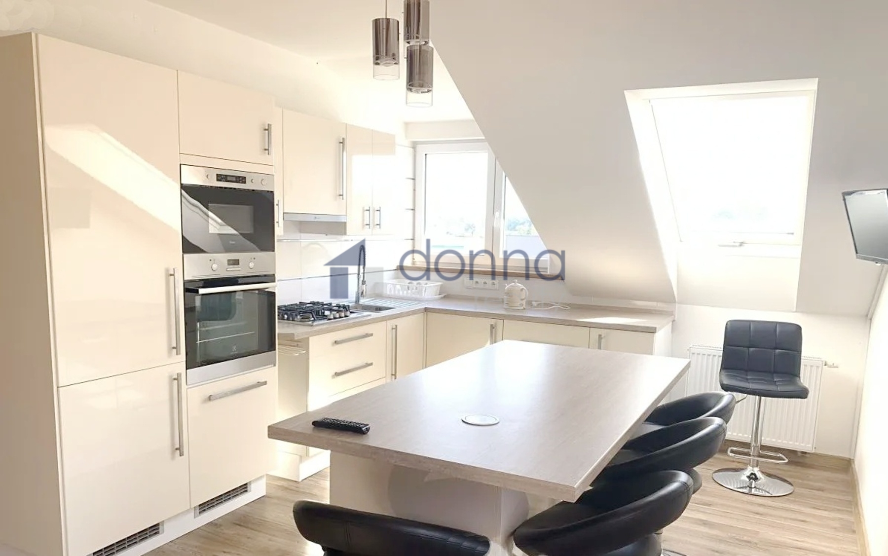 Pronájem zařízeného půdního byu 3+kk, o ploše 81m2 s lodžií, v podkroví v rodinném domě, ul. Schoellerova, Praha 9 - Čakovice. Celá půdní vestavba byla realizovaná v roce 2014. Dům je v sousedství velkého zámeckého parku s rybníkem. Velký obývací pokoj propojený s kompletně zařízenou kuchyní (lednice, myčka, plynový sporák, trouba, digestoř, mikrovlnná trouba) ze které je vstup na balkon s výhledem na zahradu (zahrada není k dispozici). Dále jsou v bytě dva samostatné pokoje, velká koupelna s rohovou vanou, sprchovým koutem a pračkou, samostatné WC a komora. Byt je kompletně zařízený viz foto v nabídce, úložné prostory v šatních skříních + komora přímo v bytě. Všude v bytě je položená plovoucí podlaha, v koupelně a na WC je podlahové vytápění.V bytě je také nainstalovaná klimatizace. Byt je napojen na vlastní plynový kotel a má vlastní elektroměr, plynoměr i vodoměr. Klidná lokalita plná zeleně s kompletní občanskou vybaveností a velmi dobrou dopravní dostupností do centra Prahy. V bezprostřední blízkosti jsou potraviny, kavárna, cukrárna a restaurace, přímo naproti domu je nově vybudovaný Lidl, Globus 5 minut autem, OC Letňany 10 min autem. Autobusová zastávka necelou minutu pěšky, na metro C Letňany cesta trvá 12 min, vlakem do centra 20 min. Volný ihned. Nájem 25.000 Kč + poplatky 7.100 Kč již vč. energií. Kauce 60.000 Kč + provize 1x nájem. Pronajímatel si vyhrazuje právo výběru nájemce.