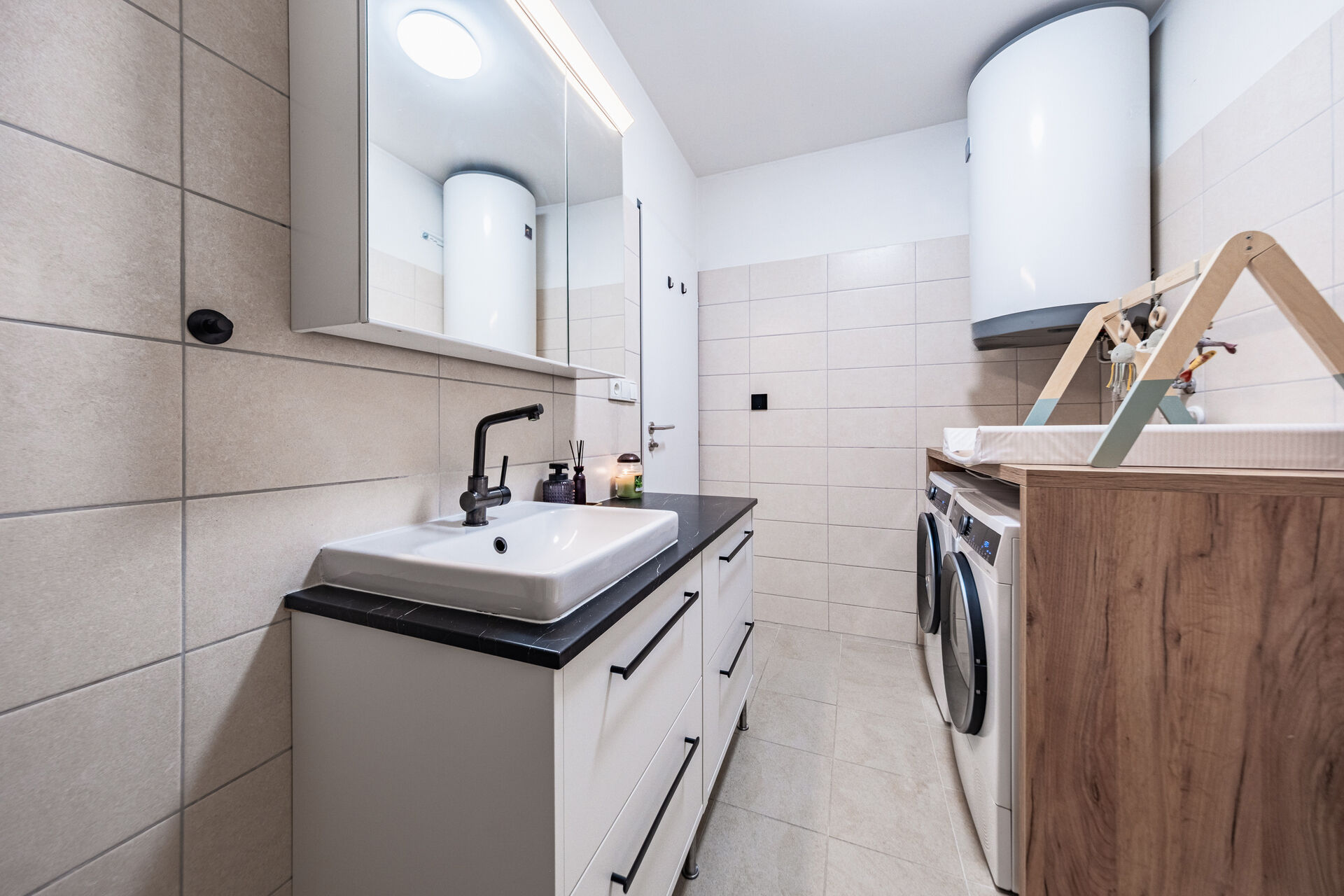 REZERVOVÁNO Hledáte moderní byt 2+kk v klidné lokalitě s výbornou dostupností do Prahy? Pak pro vás máme skvělou nabídku v obci Předměřice nad Jizerou. Nabízený byt se nachází ve 2. nadzemním podlaží cihlového domu a nabízí celkovou plochu 55,6 m2, včetně zděného sklepa o velikosti 5,1 m2. Dispozice bytu je prakticky řešená - světlý obývací pokoj s kuchyňským koutem, samostatná ložnice, koupelna s toaletou a předsíň tvoří příjemný a funkční celek. Veškerý nábytek je v celém bytě řešen truhlářem na míru, vše v nadstandardním provedení. Dům prošel kompletní rekonstrukcí a byl zkolaudován v roce 2023, takže vás čeká nové, moderní bydlení bez dalších investic. Energetická náročnost třídy B zajišťuje nízké provozní náklady, což oceníte dlouhodobě. Lokalita nabízí vše, co potřebujete ke komfortnímu životu - obchod, poštu, sportovní areál, mateřskou i základní školu máte v docházkové vzdálenosti, přičemž školka i škola se nachází přímo naproti domu. Výborná je také dopravní dostupnost - díky dálnici D10 i PID jste během krátké chvíle v Mladé Boleslavi, Brandýse nad Labem - Staré Boleslavi nebo v Praze. K domu náleží tři parkovací stání na vlastním pozemku. Další parkování je možné pohodlně v okolí. Bonus navíc představuje příprava na nabíjení elektromobilů, společná technická místnost a úklidová komora. Byt je napojen na elektřinu, internet a obecní kanalizaci, zásobování vodou zajišťuje vlastní studna s čističkou. O komfort se stará elektrické podlahové vytápění a moderní elektrický bojler na ohřev vody. Ideální volba jak pro vlastní bydlení, tak jako investice k pronájmu. Neváhejte a domluvte si prohlídku - podobné nabídky se dlouho neohřejí.