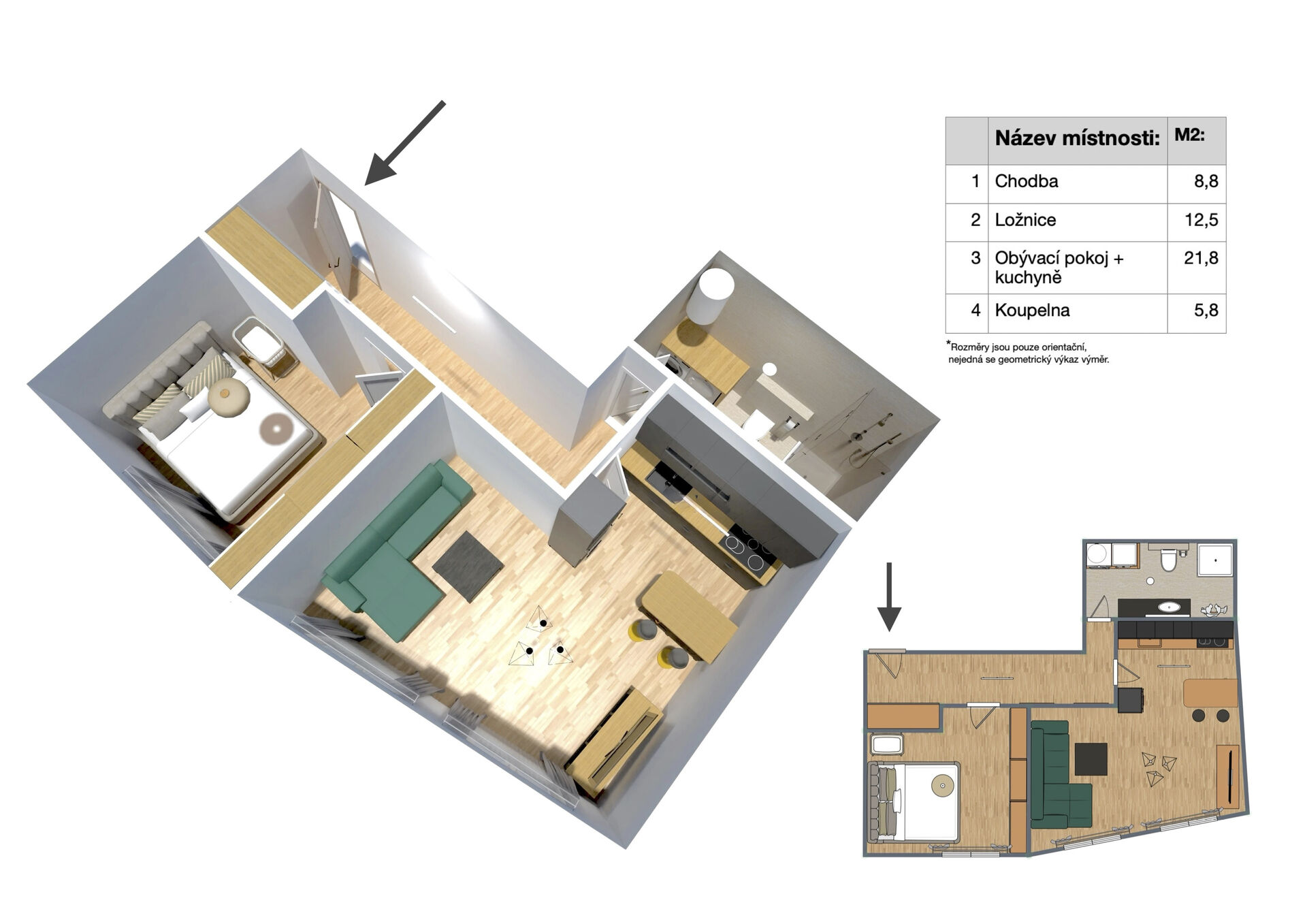 Prodej krásného a světlého bytu 2+kk, novostavba, Předměřice nad Jizerou