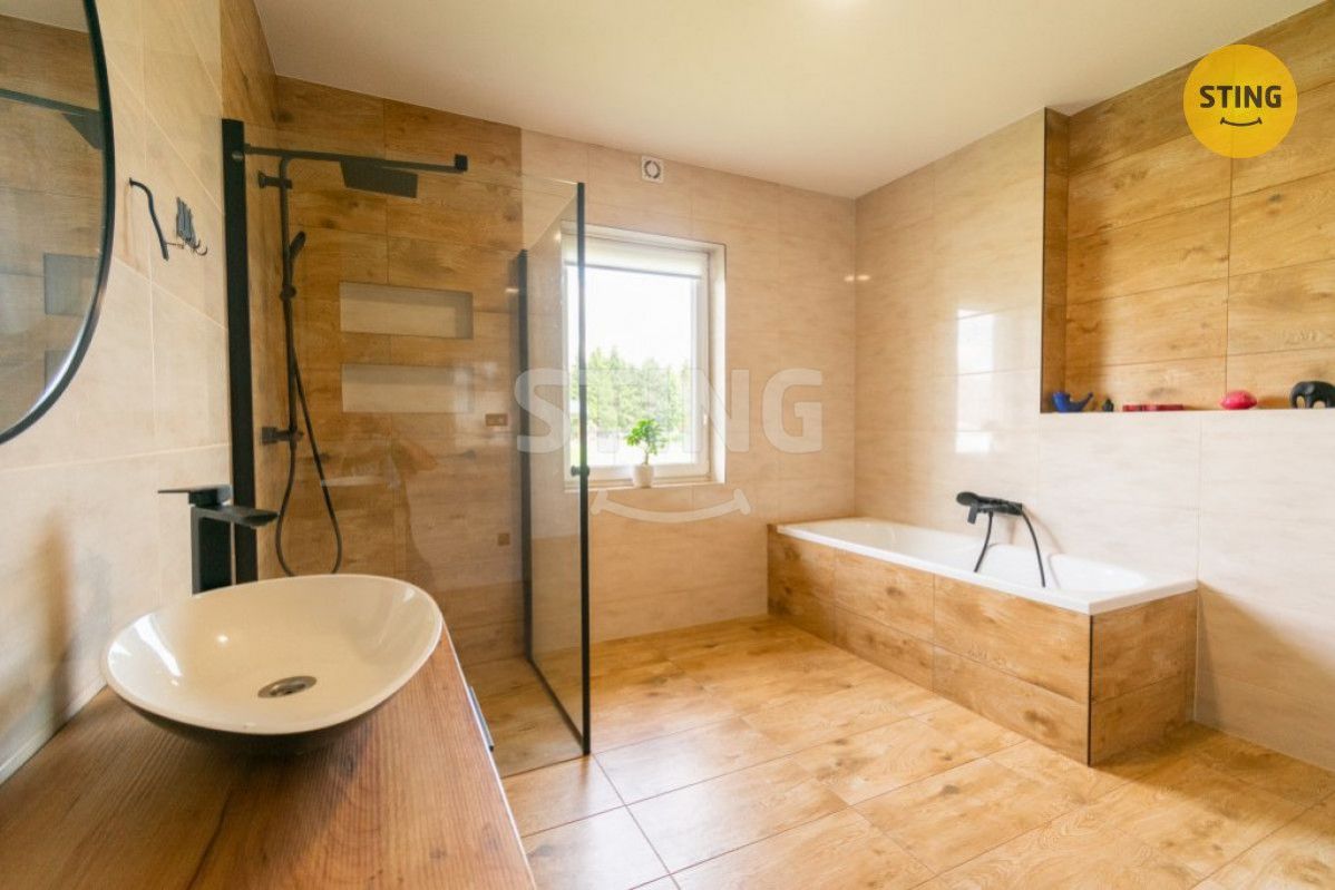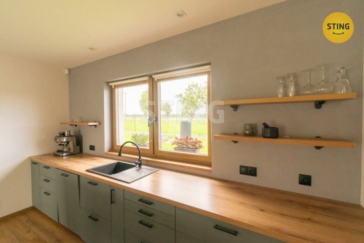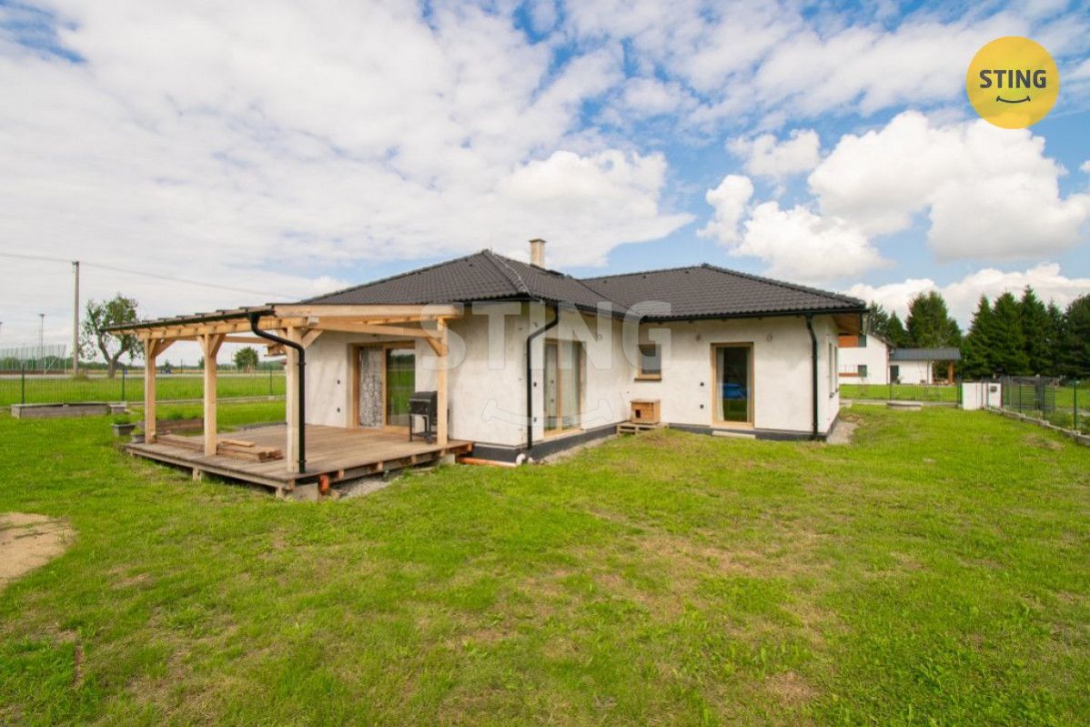 Nabízíme Vám ke koupi novostavbu rodinného domu 4+kk, která se nachází ve vyhledávané lokalitě v obci Chotěbuz. Zastavěná plocha nemovitosti činí 142 m2, nemovitost je jednopodlažní. Za vstupem do domu se nachází předsíň, ze které se dostaneme chodbou do obývacího pokoje s jídelnou a kuchyní. Z obývacího pokoje se vstupuje na prostornou terasu orientovanou jižním a západním směrem. V domě jsou dále tři neprůchozí pokoje, které je možné využít jako ložnici, dětské pokoje, případně jako pracovnu. V moderní a velmi prostorné koupelně se nachází vana a sprchový kout. Dům dále disponuje technickou místností a spižírnou. Vytápění domu je řešeno tepelným čerpadlem, v domě je podlahové topení, v obývacím pokoji jsou krbová kamna. Pitná voda z obecního vodovodního řadu, ohřev vody zajišťuje rovněž tepelné čerpadlo. Odpad - ČOV, střešní krytina - betonová taška. V celém domě jsou plastová okna s trojskly. Jedná se o dřevostavbu. K nemovitosti náleží oplocená zahrada o výměře 1058 m2. Dům se nachází v klidné části obce Chotěbuz, kde nalezneme veškerou občanskou vybavenost (škola, školka, obchod, dětské hřiště, pošta, autobus). Nemovitost skýtá možnost bydlení stranou městského ruchu s dostatkem zeleně v bezprostředním okolí, avšak zároveň s výbornou dostupností do okolních měst. Nemovitost nabízí výbornou dostupnost do Českého Těšína, Karviné či Frýdku-Místku, jelikož se nachází v dosahu přivaděče na dálnici D48. Velmi pěkné, klidné a moderní bydlení. Pro více informací a prohlídku domu mne kontaktujte. Do konce února 2026 nabízíme prostřednictvím našeho partnera úrokové sazby od 4,29 % p.a. Více informací Vám sdělí náš specialista na prohlídce.