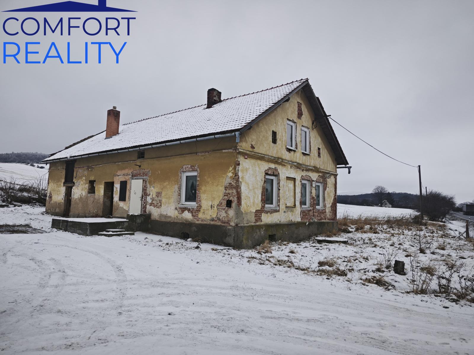 Prodej rodinného domu 5+2 o podlahové ploše 200 m2. Dům je částečně podsklepen, napojen na el. energií, studnu. V 1 NP, kde se nachází kuchyňský kout dětský pokoj, obývací pokoj a ložnice. Ve 2 NP. se nachází místnost pro kuchyni a dva pokoje. Dům je bez topení, vodárny a jsou poškozena všechny skleněné výplně oken-nutná výměna. K dispozici ihned. Jelikož od majitele domu nemáme k dispozici energetický štítek náročnosti budovy, zákonná povinnosti nám nařizuje uvádět v inzerci energetickou náročnost budovy třídy G - mimořádně nehospodárný. K dispozici ihned.