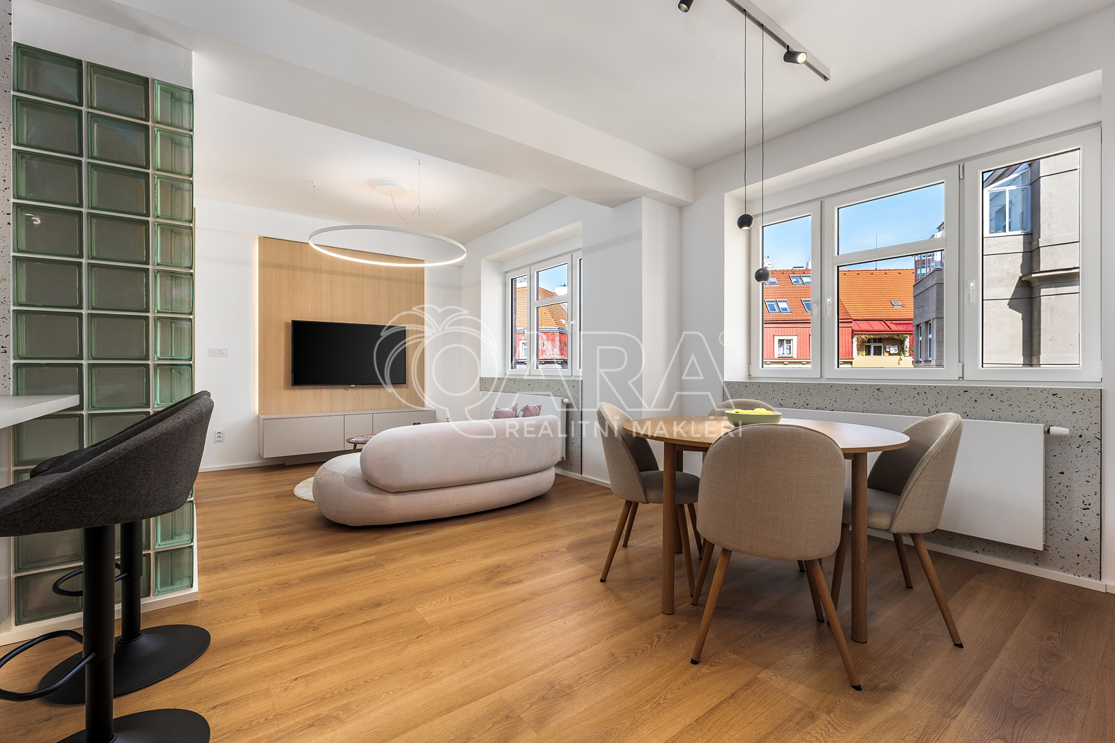 Tahle nabídka vás zaujme, pokud hledáte nadstandardní byt bez nutnosti dalších investic. Nabízíme k prodeji exkluzivní, kompletně vybavený byt 2+kk o velikosti 44,79 m2 + sklep 2,99 m2, který vznikl pod vedením renomovaného architekta. Byt se nachází ve 3. podlaží cihlového domu bez výtahu v klidné části Prahy 8 - Libeň, v ulici Pivovarnická. Byt právě prošel precizní rekonstrukcí - od podlah přes okna, radiátory, příčky, omítky, až po kompletní rozvody elektřiny, vody a topení. Každý detail byl promyšlen s důrazem na design, funkčnost a vysoký standard provedení. Prodává se včetně veškerého vybavení, takže stačí přinést osobní věci a můžete se ihned nastěhovat. Kuchyňská linka je vyrobena na míru a vybavena všemi potřebnými spotřebiči - elektrickou troubou, indukční varnou deskou, digestoří, myčkou a lednicí. Součástí kuchyně je i barový pult s barovými židlemi, který plynule navazuje na obývací část. Obývací pokoj je zařízen sedací soupravou, kobercem, jídelním stolem se židlemi a obývací stěnou s integrovaným LED osvětlením. To vše doplněno o stylové luxfery. Ložnice disponuje na míru vyrobenou postelí s úložným prostorem, dvěma nočními stolky a prostornou vestavěnou skříní. V předsíni se nachází další vestavěná šatní skříň na kabáty s botníkem. Koupelna je vybavena prostorným sprchovým koutem, se sprchovým deštěm. Dále zrcadlem s led osvětlením a dalším vestavěným koupelnovým nábytkem. Samostatné WC navazuje na design koupelny, je doplněno luxfery a hygienickou sprškou. Technická místnost nabízí vývod na pračku a další úložný prostor. Veškeré interiérové dveře v bytě jsou vyrobeny na míru v bezfalcovém provedení s magnetickými zámky v stejném tónu dřeva jako ostatní dřevěné prvky v bytě. Vše je doslova vylazené do posledního detailu. Myslelo se i na osvětlení, které zhotovilo značkové světelné studio. Světla jsou stmívatelná, mají možnost různých režimů a podtrhují atmosféru interiéru. Podlahy v obytných místnostech tvoří kvalitní vinyl, v předsíni, koupelně a na WC je položena dlažba. Měsíční náklady na byt činí přibližně 3 500 Kč + elektřina dle vlastní spotřeby. Byt je v osobním vlastnictví, tudíž je možné financovat ho hypotečním úvěrem. Dům má pouze 20 jednotek a nabízí klidné sousedské prostředí. Obyvatelé domu mohou využívat střešní terasu a vnitroblok. Lokalita Libeň patří mezi oblíbené a dynamicky se rozvíjející části Prahy. V docházkové vzdálenosti budete mít tramvajovou zastávku Libeňský zámek (cca 3 minuty chůze) odkud se dostanete do Karlína přibližně za 8 minut nebo stanici metra Palmovka (cca 5 min.) odkud jste v centru Prahy do 10 min. V blízkosti se nachází populární cyklostezka vedoucí do centra či Troji. Dále pak supermarket Albert nebo obchody se smíšeným zbožím. Troufám si říci, že takto zrekonstruovaných bytů na prodej moc není, proto je ideální volbou pro ty, kteří hledají opravdu stylové, kvalitní a funkčně řešené bydlení. Přijďte se přesvědčit osobně.