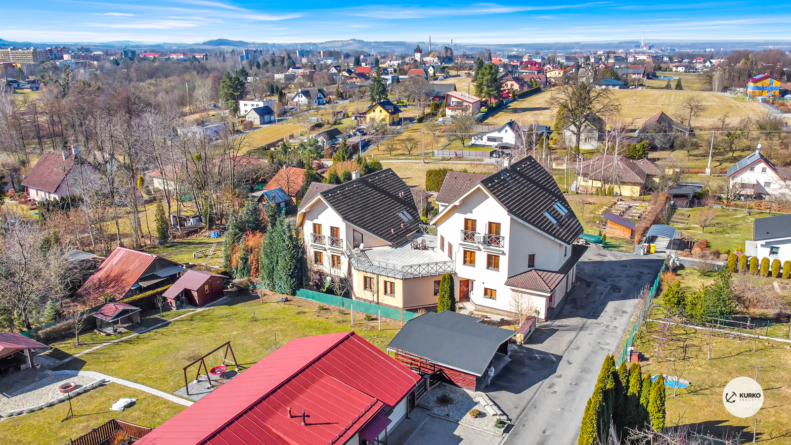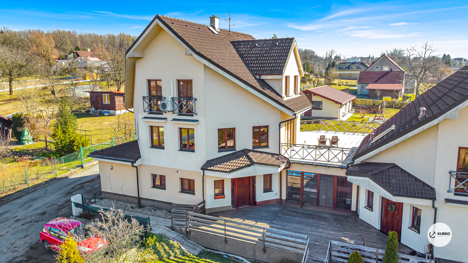 Nabízíme atypický dům o čtyřech jednotkách s celkovou užitnou plochou 825 m2. Zděný dům stojí na pozemku o výměře 1.117 m2. Hlavní dispozicí domu jsou tři jednotky o dispozicích 2+1, 4+1 a 5+1. V suterénu domu se nachází nebytová jednotka o dispozici 3+1.Terasa je přístupná z bytů v 2NP. V 1NP se nachází garáž. Všechny jednotky mají vlastní vchod. K této nemovitosti je již zpracován dokument Prohlášení vlastníka k rozdělení na samostatné jednotky. V domě jsou instalovány rozvody domácího telefonu, internetu a centrálního vysavače. Vytápění zajišťují dva plynové kotle s rozvodem do radiátorů. Voda je obecní, elektřina 230/400V, odpad sveden do kanalizace. Z důvodu atypické dispozici této nemovitosti, poskytneme půdorys na vyžádání. K domu je možné dokoupit stavební pozemek o výměre 1.344 m2. Příjezd je po asfaltové komunikaci.