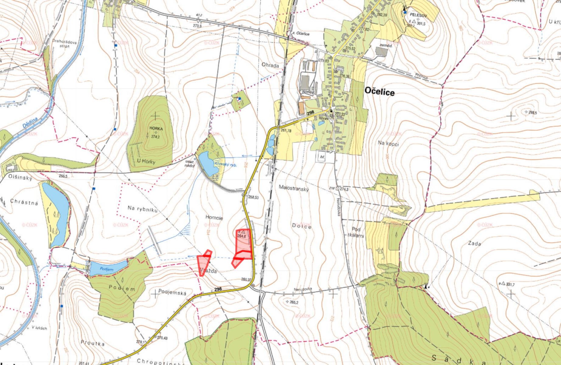 V katastrálním území Očelice (okres Rychnov nad Kněžnou) nabízím k prodeji vlastnictví na souboru zemědělských pozemků Pozemky jsou zapsány na listu vlastnictví č. 28 a tvoří dva hospodářské celky. V lokalitě byly zahájeny komplexní pozemkové úpravy. Celková výměra pozemků je 21 378 m, k prodeji je na nich nyní 10 689 m. Součástí nabídky jsou: Orná půda: parc. č. 368/2 1 800 m parc. č. 368/21 408 m parc. č. 373 4 996 m parc. č. 388/6 2 518 m parc. č. 388/8 845 m Vodní plocha: parc. č. 378/2 46 m parc. č. 378/10 76 m V případě zájmu o více informací mě neváhejte kontaktovat telefonicky nebo e-mailem. Pozemky nabízím k přímému prodeji v zastoupení vlastníka. Cena zahrnuje provizi i kompletní právní servis. Majitel si vyhrazuje právo vybrat kupujícího na základě nabídky.