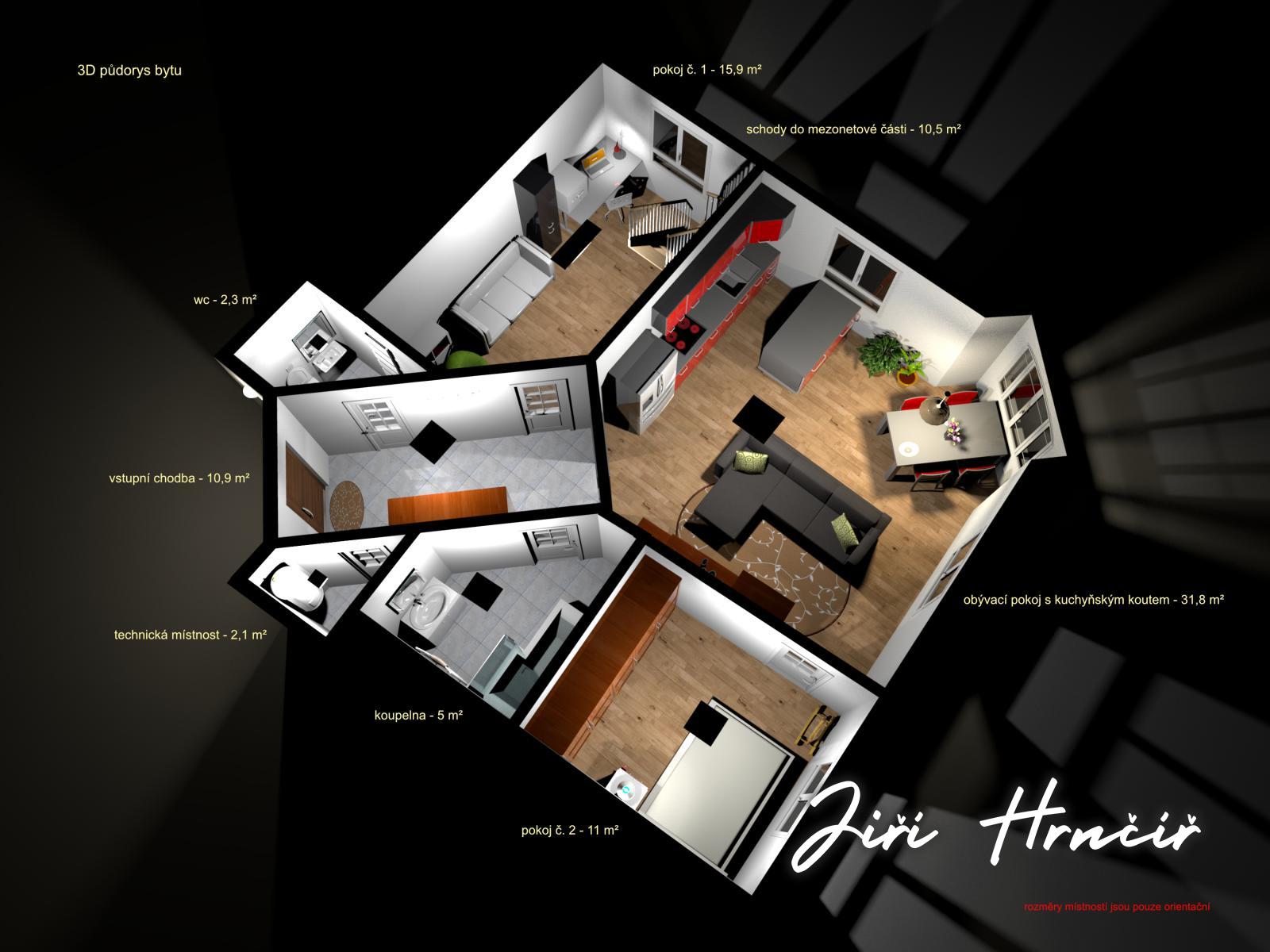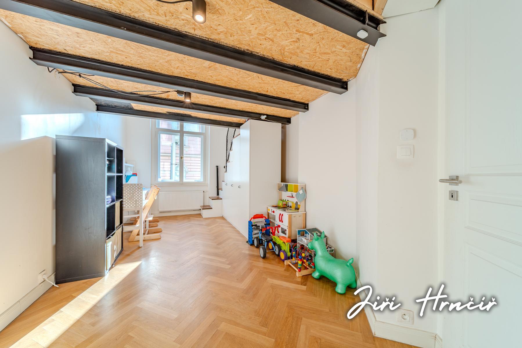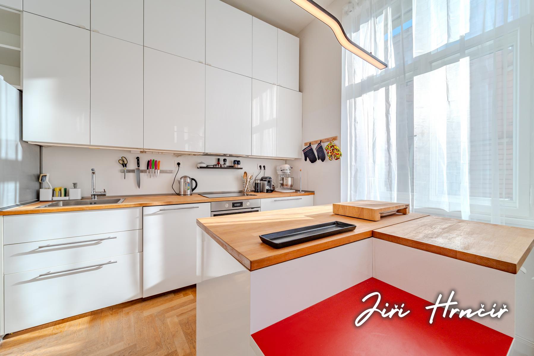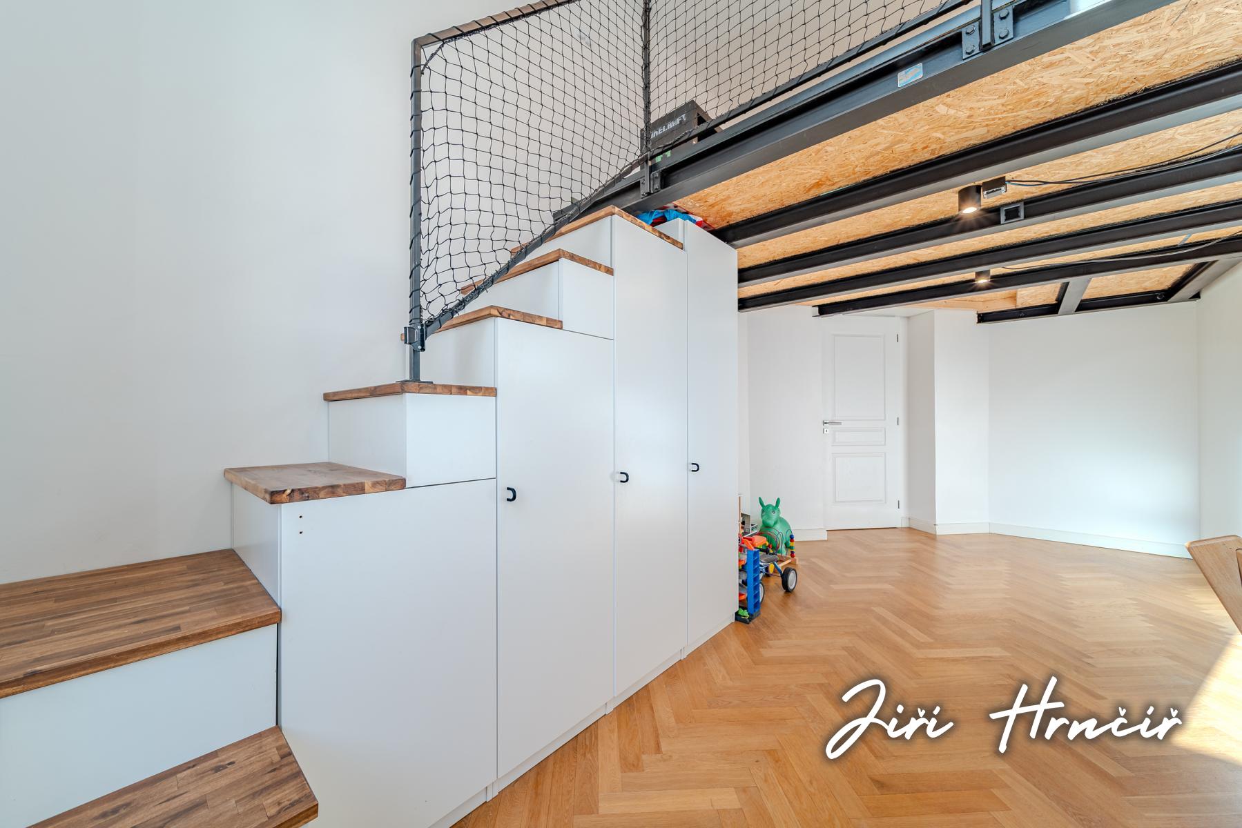 Tento výjimečný byt s užitnou plochou 80 m2, který je nabízen za cenu 11 500 000 Kč, představuje dokonalé spojení historického charakteru a precizního moderního designu. Nemovitost se nachází v prvním nadzemním podlaží kompletně zrekonstruovaného reprezentativního nárožního domu. Již samotný vstup do budovy vás okouzlí monumentální společnou halou s malovanými freskami na stropě, která celému objektu dodává nádech exkluzivity a historické noblesy. Hlavní obytná část bytu o výměře 32 m2 je bohatě prosvětlena velkými okny a dominuje jí moderní bílá kuchyňská linka ve vysokém lesku, která je vybavena kvalitními vestavěnými spotřebiči a prostornou americkou lednicí. Jeden z pokojů o ploše 16 m2 disponuje důmyslně vybudovaným ocelovým mezipatrem o rozloze 10,5 m2, které ideálně slouží jako ložnice, zatímco prostor pod schodištěm je efektivně využít jako vestavěný šatní systém. Nabídku doplňuje další samostatný pokoj o výměře 11 m2, který může sloužit jako druhá ložnice, dětský pokoj nebo pracovna. Moderně pojatá koupelna s vanou je situována odděleně od samostatné toalety, která je pro vyšší standard vybavena bidetovou sprškou a vlastním umyvadlem. Praktickou stránku bydlení doplňuje technická místnost přímo v bytě a velkorysá vstupní chodba s dostatkem místa pro odkládání svršků. K jednotce náleží také dva prostorné sklepy o velikosti 12 + 6 m2. Lokalita pražské Libně zajišťuje vynikající dopravní spojení do centra města i veškerou občanskou vybavenost v bezprostředním okolí domu.