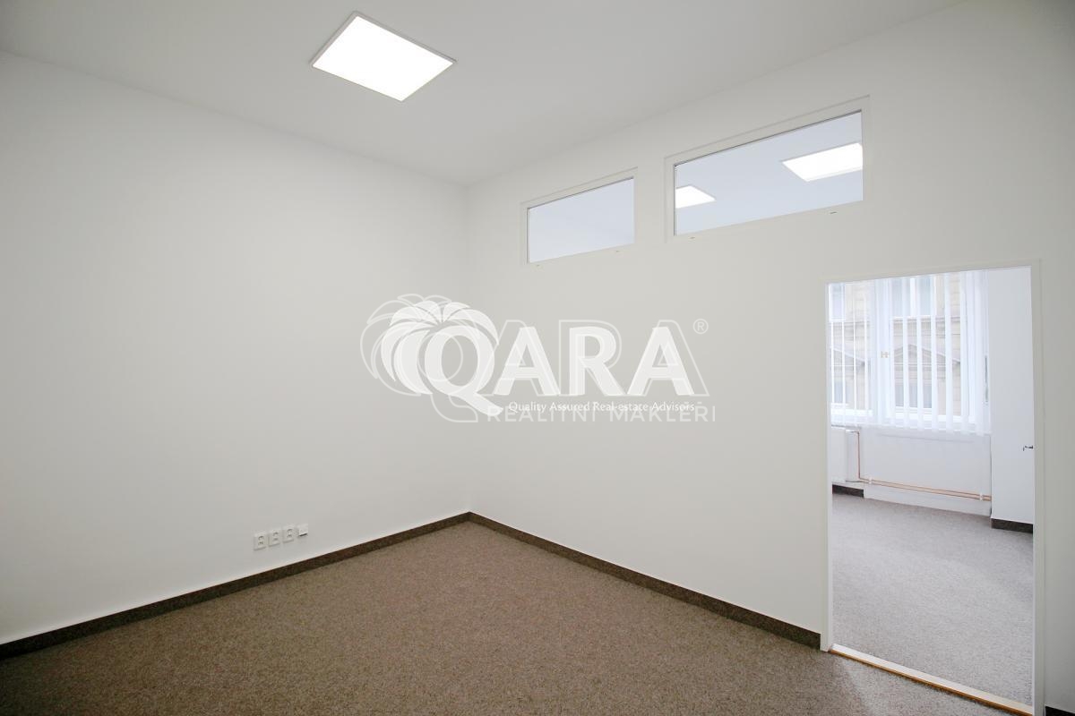 Pronájem kanceláře, místnost 27 m2- rozdělena příčkou, možno tedy použít na klientskou část a druhou půlku pro neprůchozí kancelář. Po rekonstrukci, ve 3. patře secesního domu s výtahem a nepřetržitou ostrahou, sociální zázemí a kuchyňka na chodbě, na podlahách koberce, telefon, internet, možno zajistit úklid za poplatek, možnost pronájmu reklamních vitrín v pasáži nebo na sloupech domu. Prostory se nacházejí v samotném centru Prahy, s veškerou občanskou vybaveností a výbornou dostupností MHD. Doporučujeme.