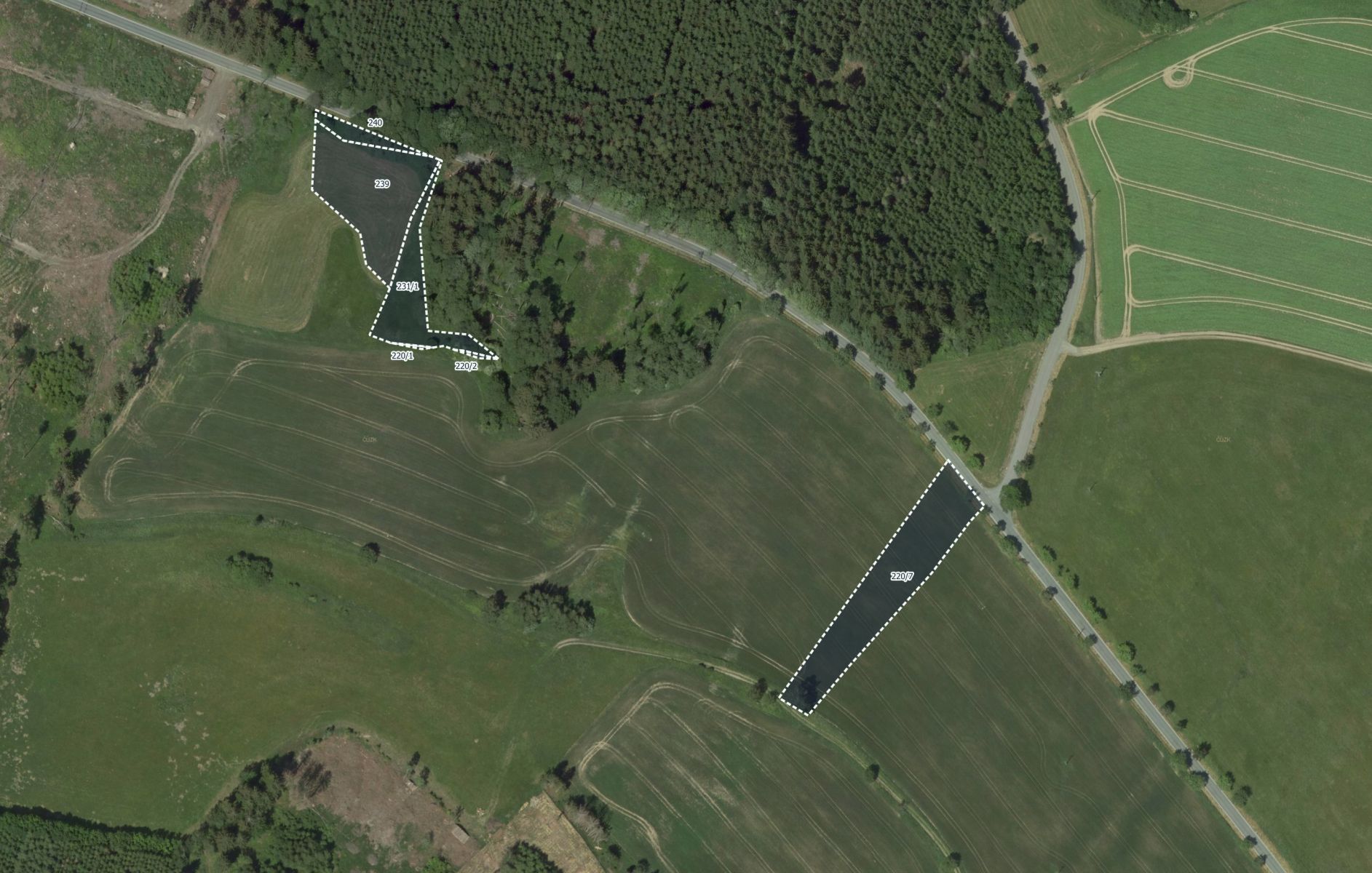 Nabízím k prodeji zemědělské pozemky v katastrálním území Ubušín, obec Jimramov, zapsané na listu vlastnictví č. 867. Všechny parcely jsou ve 100% vlastnictví a tvoří kompaktní celek o celkové výměře 6 783 m. Předmětem prodeje jsou tyto pozemky parcelního čísla 220/1, 220/2, 220/7, 231/1, 239 a 240. Jedná se o kombinaci trvale travního porostu a orné půdy. Jako TTP jsou vedeny parcely 231/1, 239 a 240 o společné výměře 3 843 m. Parcely 220/1, 220/2 a 220/7 jsou pak orná půda s výměrou 2 940 m. Nachází se u zpevněné cesty, pozemek 220/7 je také přístupný dle KN po obecní parcele. Pro více informací o tomto pozemku mne kontaktujte telefonicky nebo e-mailem. Pozemek nabízím k prodeji v zastoupení vlastníka. Cena je uvedena včetně provize. Majitel si vyhrazuje právo vybrat kupujícího na základě nabídky.
