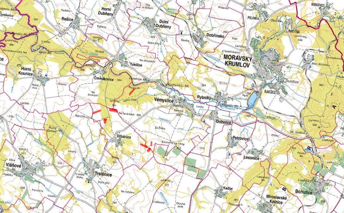 Nabízím k prodeji vlastnictví na zemědělských pozemcích v katastrálních územích Džbánice a Vémyslice, okres Znojmo. Pozemky jsou zapsány na LV 88 v KÚ Džbánice pod čísly 627/76, 627/119, 634/21, 645, 848/15, 1028/9, 1028/17, 1102/92 a 1109/6 a na LV 312 pod čísly 1936/1, 1936/2 a 6027 v KÚ Vémyslice. Celková výměra pozemků je 73 584 m a výměra prodávaného vlastnictví na nich je 24 528 m. Pozemky zahrnují převážně ornou půdu, okrajově pak lesní pozemky a ostatní plochy. Průměrná BPEJ těchto pozemků je 9,54 Kč/m, což svědčí o dobré kvalitě půdy, která je vhodná jak pro zemědělskou výrobu, tak pro dlouhodobou investici. Pro více informací o této nabídce mne kontaktujte telefonicky nebo e-mailem. Pozemky nabízím k prodeji v exkluzivním zastoupení vlastníka. Cena je uvedena včetně provize a souvisejících právních služeb. Majitel si vyhrazuje právo vybrat kupujícího na základě nabídky.