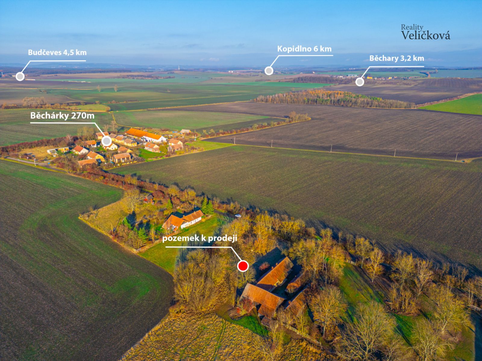Na okraji obce Běchary, v prostředí otevřené krajiny a minimální okolní zástavby, nabízíme k prodeji stavební pozemek o výměře 986 m. Pozemek se nachází v klidné části obce a je vhodný pro zájemce, kteří hledají místo s dostatkem prostoru, soukromí a přírodním charakterem okolí. Dle platného územního plánu je pozemek určen k výstavbě jednoho rodinného domu. Tato skutečnost je jednoznačně vymezena a poskytuje jasný rámec pro budoucí využití parcely. Pozemek je vhodný jak pro trvalé bydlení, tak pro rekreační účely, v závislosti na záměru budoucího vlastníka. Lokalita nabízí kombinaci klidného venkovského prostředí a dobré dopravní dostupnosti. Do Jičína je vzdálenost přibližně 12 km, Nový Bydžov se nachází zhruba 10 km od obce, Chlumec nad Cidlinou 17 km, Poděbrady přibližně 30 km a Hradec Králové asi 35 km. Dojíždění do okolních měst je tak reálně možné, aniž by místo ztrácelo svůj klidný charakter. Technická infrastruktura: Elektřina je přivedena na hranici pozemku. Obec je napojena na skupinový vodovod Kopidlno, který zajišťuje dodávku pitné vody. Kanalizace v obci není vybudována, odpadní vody se standardně řeší jímkou nebo domácí čističkou odpadních vod, což odpovídá běžným podmínkám v menších obcích. Obec Běchary disponuje základní občanskou vybaveností potřebnou pro každodenní život. K dispozici je mateřská škola, základní škola pro 1.5. ročník, obchod, restaurace, kulturní dům, veřejné osvětlení, místní rozhlas a internetové připojení. Charakter obce vytváří klidné a stabilní prostředí bez výrazné tranzitní dopravy. Bezprostřední okolí pozemku tvoří pole, louky a volná krajina. Lokalita je tichá, bez průmyslových provozů a hlavních dopravních tahů. V okolí se běžně vyskytuje volně žijící zvěř, což odpovídá přírodnímu charakteru místa. Pozemek má otevřenou polohu s dostatkem slunečního svitu během dne, což je vhodné pro obytné i zahradní využití. Pozemek je určen pro zájemce, kteří hledají klidné místo s jasným územním určením, bez složitých omezení a s možností realizace vlastního záměru bydlení či rekreace v venkovském prostředí. V případě zájmu o doplňující informace nebo sjednání osobní prohlídky nás neváhejte kontaktovat.