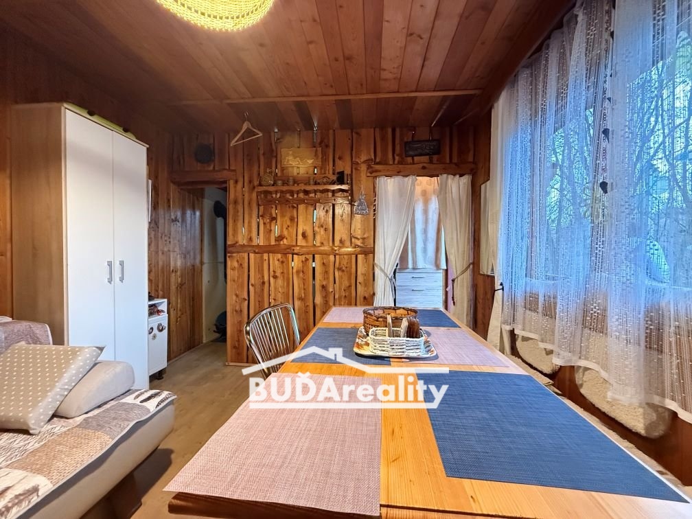 Dovoluji si Vám nabídnout sezónně obyvatelnou chatu, která se nachází ve východní části Zlína v Jaroslavicích. Má dobrou dostupnost do centra Zlína, kde se octnete za 7 minut jízdy autem. 10 minut pěší chůze je odsud zastávka MHD. Jedná se o chatovou osadu, která v těsné blízkostí sousedí s lesem. Celková výměra pozemku činí 385 m2, z toho vyzděná zastavěná plocha pod objektem je 17 m2. Je připojena na elektřinu, vytápí se krbovými kamny. Chata má zděný sklep o 2 místnostech a wc. Z jižní a východní části stěny obytné části chaty obepíná terasa. Interiér chaty disponuje 1 místností a menší kuchyňkou. Výhodu je dojezd k pozemku po nezpevněné komunikaci. Na zahradě můžete využívat solární sprchu, užitkovou vodu ze studny a pitnou vodu z vodovodního řádu. Přenechání příslušenství v interiéru chaty je dle dohody mezi vlastníkem nemovitosti a kupujícím Tuto chatu doporučuji nejen pro nadšence chataření. Pokud Vás tato nabídka zaujala, tak rád se s Vámi setkám při prohlídce této nemovitosti.