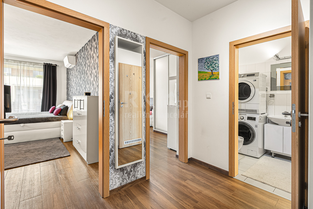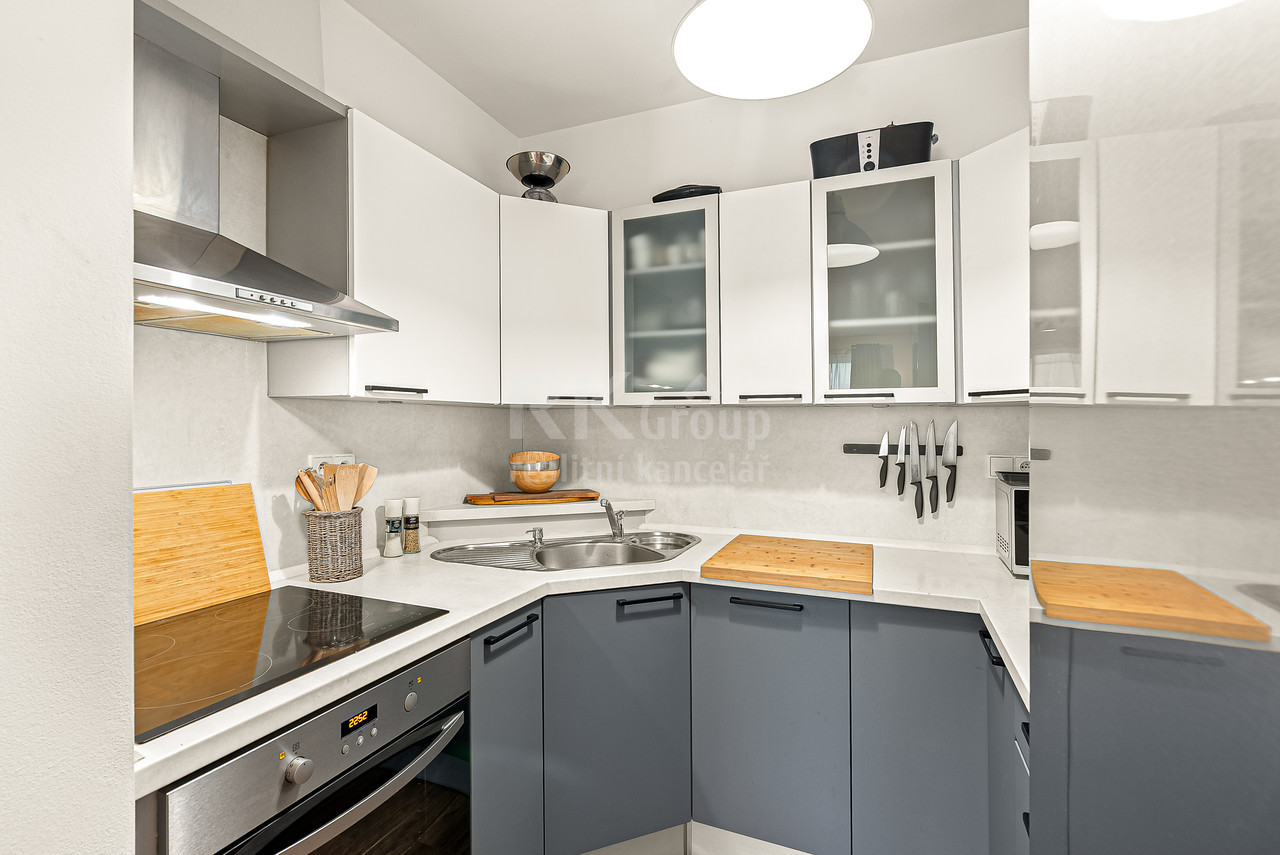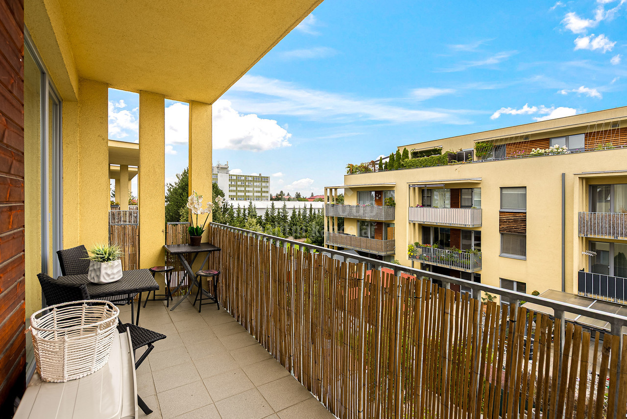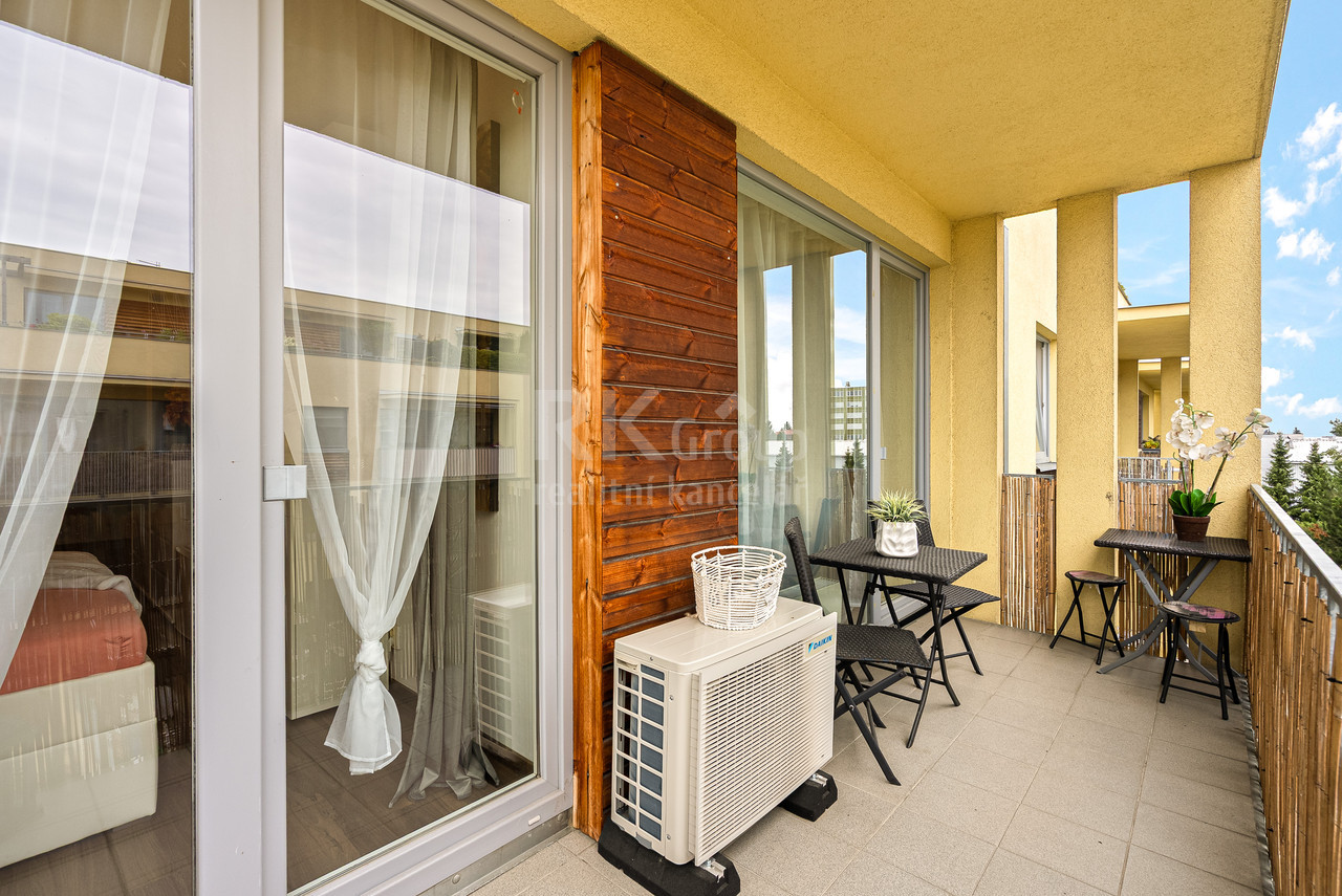Prodej 2+kk, ul.Rýnská, Praha 9. Nabízíme k prodeji krásný, slunný byt 2+kk o velikosti 54 m2 s balkonem 8 m2 a sklepem, nacházející se v moderním bytovém domě v oblíbené lokalitě Praha 9 - Čakovice. Byt je ve výborném stavu a připraven k okamžitému nastěhování. Součástí je nová kuchyňská linka s indukční varnou deskou, klimatizace a částečné vybavení nábytkem. Dispozice nabízí prostorný obývací pokoj propojený s kuchyňským a jídelním koutem, samostatnou ložnici a koupelnu s vanou. Velkým benefitem je přímý vstup na balkon jak z obývacího pokoje, tak z ložnice. K bytu náleží také sklepní kóje. Balkon orientovaný do klidného vnitrobloku poskytuje příjemné místo k odpočinku. Parkování je možné přímo v ulici a bez problémů. V blízkosti se nachází také plavecký bazén, sportoviště a dostatek zeleně. Výborná dopravní dostupnost - zastávka MHD pár minut chůze, metro C - Letňany cca 10 minut jízdy. Kompletní občanská vybavenost v místě: školy, školky, zdravotní středisko, supermarket, pošta, sportoviště i dětská hřiště. Možnost odpočinku i aktivního vyžití - zámecký park Čakovice, cyklostezky a další volnočasové aktivity. Byt je vhodný jak pro vlastní bydlení, tak i jako investiční příležitost - díky své poloze a dostupnosti je ideální pro dlouhodobý i krátkodobý pronájem.