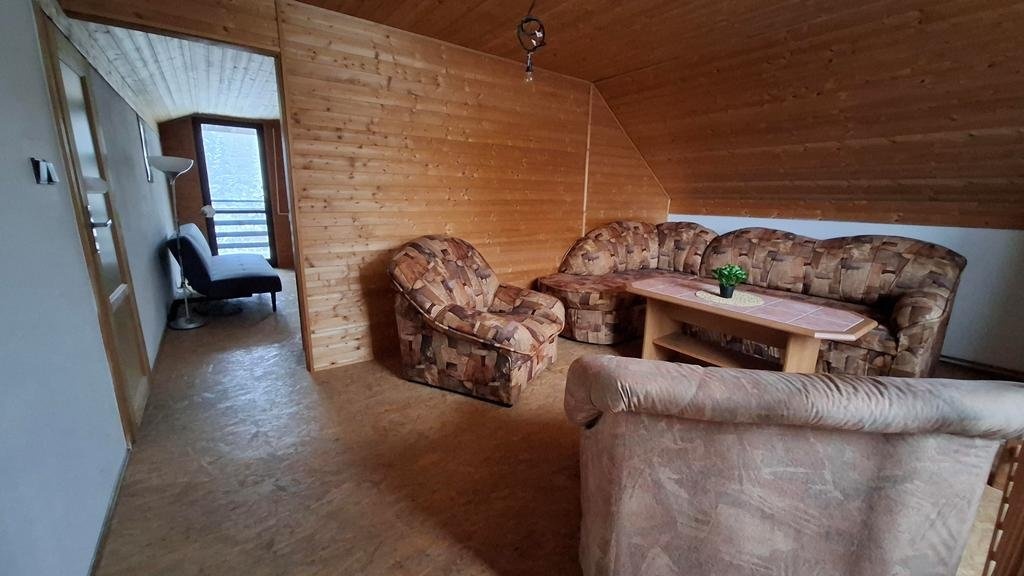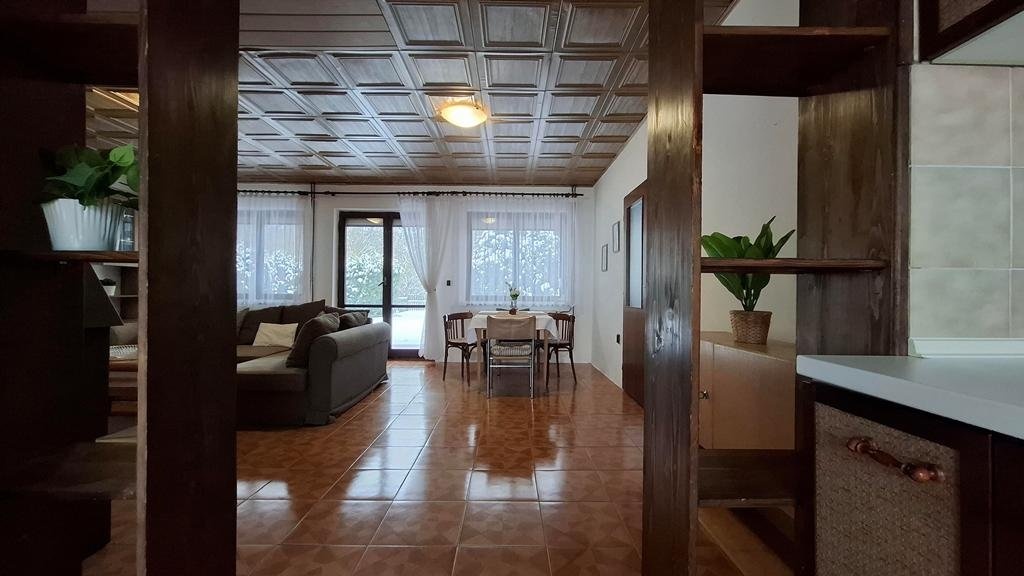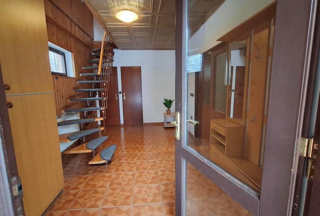 Nabízíme k prodeji samostatně stojící rodinný dům se sedlovou střechou, situovaný uvnitř vlastního pozemku o výměře 760 m2 v obci Přibyslavice. Jedná se o dvoupodlažní rodinný dům s dispozicí 4+1 na půdorysu 100 m2 s parkovacím přístřeškem/pergolou a přístavbou garáže (hobby dílny) se společnou výměrou cca 55 m2, zahradou s dokončenou příjezdovou cestou, přístupovým chodníčkem a dalším parkovacím stáním u vjezdové branky s celkovou výměrou cca 600 m2. Celý pozemek je po obvodu oplocen. Dispozice: 1. NP - terasa 23 m2, vstupní hala se schodištěm 12 m2, kuchyně s prostupem do zahrady a orientací severním směrem 10 m2, obývací pokoj (jih) s krbem a prostupem na venkovní terasu 32 m2, ložnice (sever) 15 m2 a koupelna 8 m2, WC samostatné. 2. NP/podkroví - 2 x průchozí pokoj s výměrou 18 a 14 m2 a orientací východ (s lodžií 8 m2) a západ, půdní prostor ve střešní šikmině 25 m2 (všechny výměry jsou zaokrouhleny). Nemovitost je napojena na všechny místně dostupné ing. sítě - elektřina 230/400V, vytápění plynové ústřední, hloubková obecní kanalizace, voda z vlastní studny. Obvodové nosné konstrukce jsou z pálených cihel Keratherm, okna dřevěná zdvojená, střešní vazba/krovy z dřevěných trámů, střešní krytina betonová taška Bramac. Zahrada uvnitř které je dům situován je rovinatého charakteru, zatravněná bez pěstebních záhonů a s okrasnými jehličnany, které tvoří optickou "bariéru" od příjezdové obecní komunikace. Příjezdová i spojovací cesta vč. park. stání uvnitř pozemku je dlážděná. Dům je ihned plně obyvatelný, funkční a nevyžaduje žádné přímé investice, modernizace některých "morálně" zastaralých komponentů nemovitosti je však vhodná (kuchyňská linka, podhledy v 1. NP, finální podlahová krytina v podkroví...). Nemovitost je stavebně dokončena a řádně zkolaudována (výstavba 1997 - 2000).