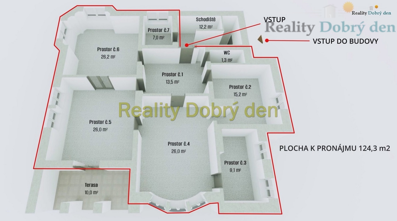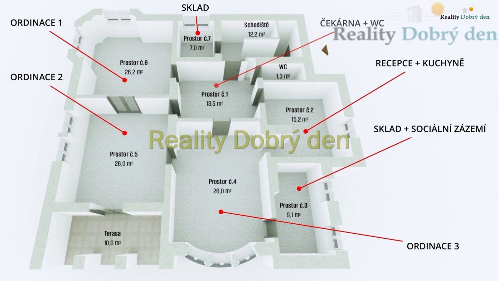 Pronajmeme prostory pro zřízení ordinace jednoho nebo několika lékařů, zřízení daňové nebo právní kanceláře, nebo kohokoli s tichým provozem (projekční kancelář, IT buňka a pod.). Prostor lze přizpůsobit potřebám nájemce, vše je o dohodě. K dispozici ve čtvrtém kvartále letošního roku, popřípadě v prvním kvartále roku 2027. Prohlídky prostor lze realizovat kdykoli po dohodě. Jedná se o velmi dlouhodobý nájem.
