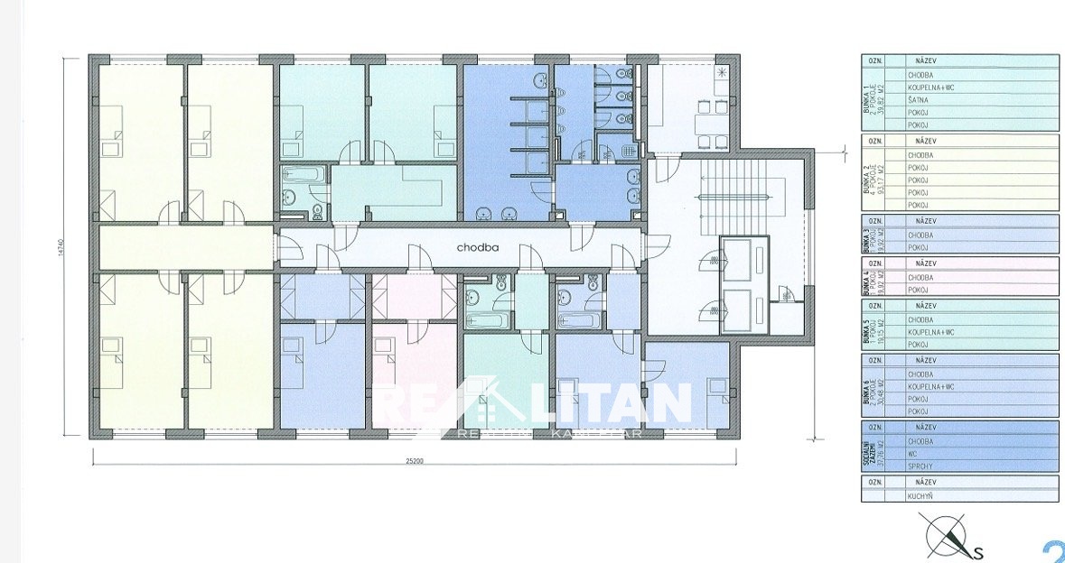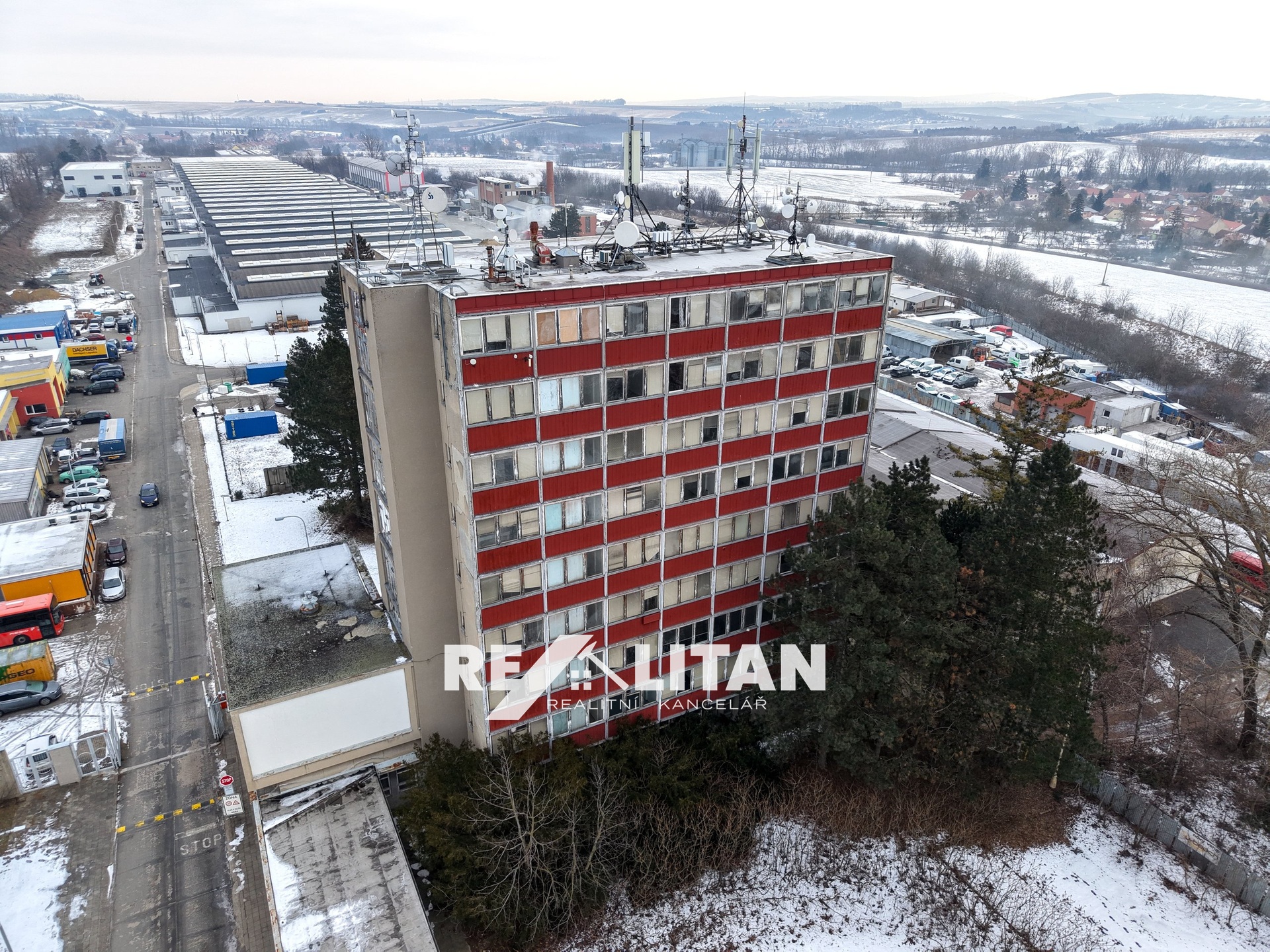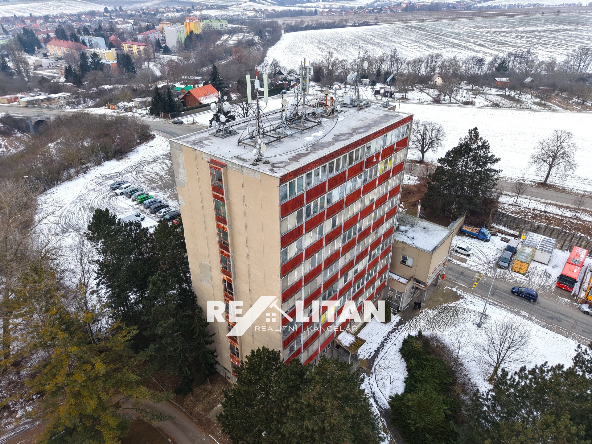 Nabízíme k prodeji osmipodlažní nemovitost v lokalitě Rousínov - Čechyně, postavenou v roce 1970. Tato budova je před rekonstrukcí, což poskytuje příležitost pro přetvoření objektu dle vlastních představ. Díky své strategické poloze (k Brnu) nabízí obrovský potenciál pro investici, nebo rozvoj různých komerčních projektů či bytů / ubytovny. Byty, Kanceláře,... V kanceláři s Vámi rádi projdeme studii, technickou zprávu a detaily. Předmětem studie je využiti stávající administrativní budovy / přestavba na ubytovnu. IS - voda, elektřina, 02, EON, kanalizace, plyn je možný také. V poslední době byla nemovitost využívána k různým (administrativním, sportovním, skladovým) účelům, a to zejména nižší patra. Vnější forma je tvořena dvěma nestejnými kvádry. Menší, situovaný na západní straně, obsahuje v 1.NP vstupní halu a vrátnici pro areál. V 2.NP byla využívaná velkoprostorová kancelář. Východní část, tvořená kancelářskými prostory má tvar stojícího kvádru, půdorys obdélníkový o vnějších rozměrech cca 25,2 x 14,74 m. Před budovou na jižní straně se nachází betonová kolonáda přecházející v portikus vedoucí do vstupní haly budovy. Je zde i stále funkční vrátnice.