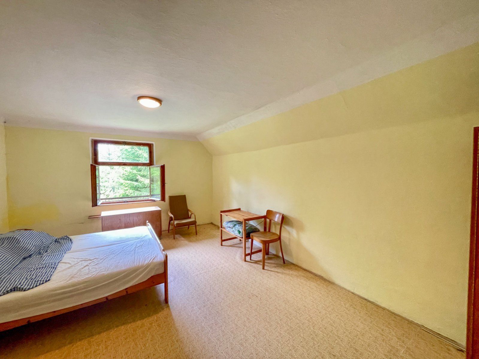 Na klidné samotě u Horní Vltavice se tyčí zděná chalupa, postavená kolem roku 1925. Tato robustní stavba si i přes svůj historický původ zachovává svůj šarm. V rámci započaté rekonstrukce byla kompletně vyměněna střešní krytina a provedeno nové opláštění komínů, což zajišťuje její dlouhodobou ochranu a připravenost na další desetiletí. Chalupa je zasazena do malebné šumavské krajiny, kde se dokonale snoubí klid a příroda. Okolí domu tvoří zahrada trojúhelníkového tvaru, která se plynule vine kolem chalupy a dává jí jedinečný charakter. Tato zahrada, obklopená navazujícími lesy, zajišťuje naprosté soukromí a hluboký kontakt s divokou přírodou. Vzrostlé stromy podtrhují její polohu na samotě a vytvářejí idylické venkovské prostředí ideální pro relaxaci a outdoorové aktivity. Na zahradě se navíc nachází parkoviště a zastřešený skladovací prostor pro zahradní nářadí, kola a podobné vybavení. Velkou výhodou této odlehlé lokality je velmi pohodlný příjezd přímo k domu po asfaltové komunikaci, na které panuje naprosto minimální provoz. To zaručuje snadnou dostupnost a zároveň nerušený klid. Příjezd je navíc doplněn dostatečnou možností parkování pro více aut, což činí chalupu snadno dostupnou pro všechny návštěvníky. Chalupa je dispozičně řešena pro komfortní rekreační provoz. Je napojena na elektrickou síť a zajištěn je přívod pitné vody z obecního vodovodu.Odpad je řešen septikem. Vytápění - kotel na TP a lokálně kamna. Dispozice domu: Přízemí se otevírá do prostorné vstupní haly, která navazuje na dlouhou, prosvětlenou chodbu. Z ní vedou vstupy do pěti samostatných místností (o rozlohách 21 m, 16,75 m, 18 m, 16,5 m a 20 m), z nichž jedna sloužila jako kuchyně. Dále jsou zde k dispozici čtyři sprchové kouty a dvě toalety. Po schodišti vystoupíme do prvního patra, které nabízí další ubytovací a společenské prostory. Zde se nachází tři menší pokoje (cca 15 m každý) a dvě velké společenské místnosti. Jedna z nich je největší místností v domě, o rozloze 45 m, celá obložená dřevěnými palubkami a prosvětlená množstvím oken, což vytváří světlý a vzdušný prostor. Druhá velká místnost je o velikosti 36,5 m. V prvním patře jsou také 2 toalety s umyvadly. Po žebříku je zde také vstup do půdních prostor. Již od svého vzniku sloužila tato chalupa s velkorysou kapacitou pro 30 osob jako oblíbená rekreační základna pro skupiny a kolektivy. Její současné dispoziční řešení a značná velikost nabízejí výjimečný potenciál pro přestavbu na jednotlivé apartmány. Tato adaptace by umožnila vytvořit moderní a komfortní ubytování, které by plně využilo prostorový potenciál domu a zároveň oslovilo širší spektrum návštěvníků Šumavy, hledajících soukromí a pohodlí vlastního apartmánu.Chalupa s bohatou historií, současným uspořádáním a kompletním je tak ideální investicí pro další rozvoj v oblasti cestovního ruchu. Okolí Horní Vltavice je rájem pro milovníky přírody, turistiky, cyklistiky a zimních sportů, nabízející celoroční vyžití. Doporučujeme prohlídku.