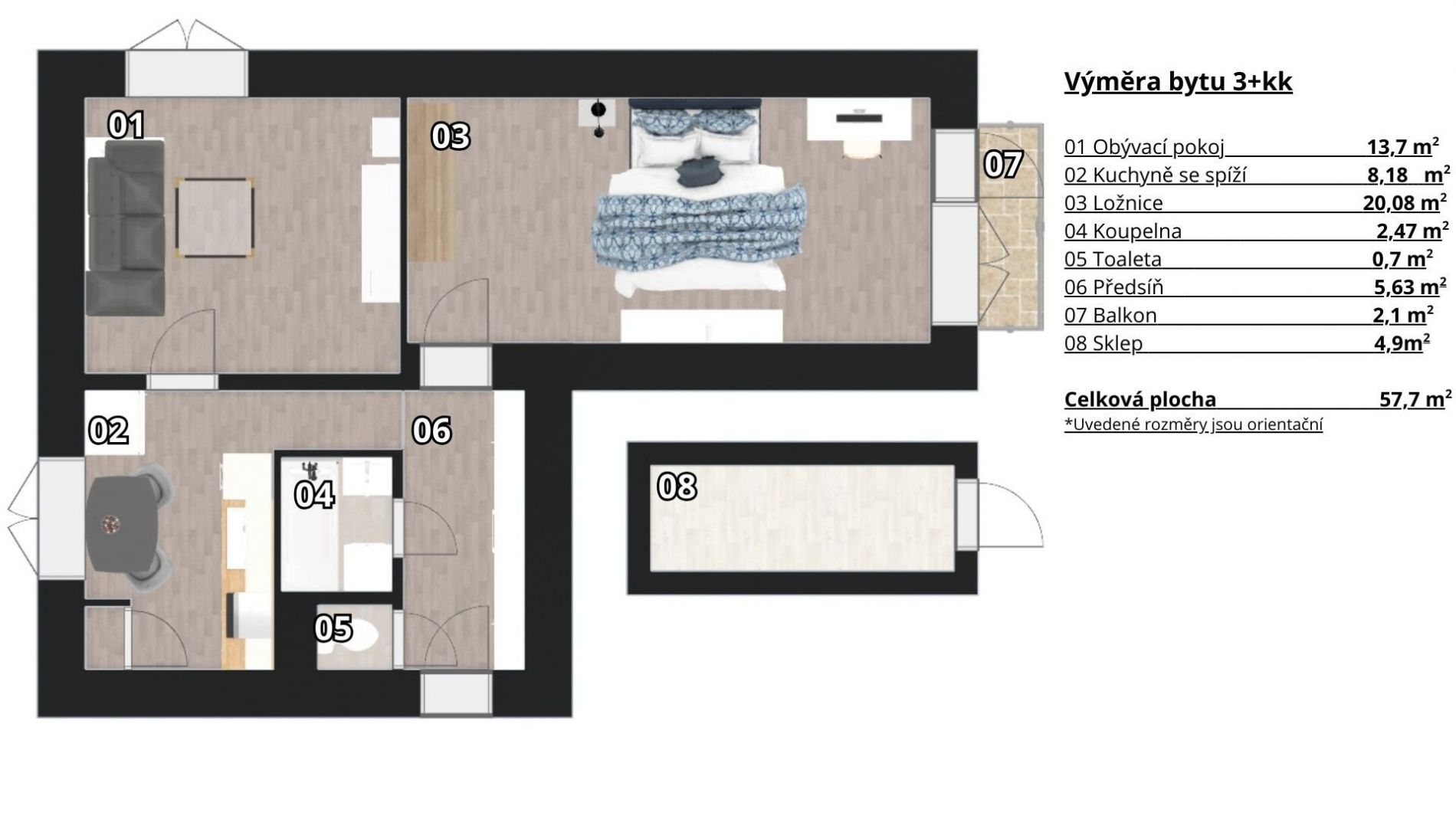 Exkluzivně nabízíme ke koupi byt v osobním vlastnictví 2+1 v Brno Obřany, ul. Fryčajova. Hledáte byt, který je připravený k bydlení bez nutnosti velkých investic, v klidné okrajové části Brna a s výbornou občanskou vybaveností? Tento byt ve zvýšeném 1. podlaží cihlového domu vás příjemně překvapí jak stavem, tak atmosférou lokality. Dispozice a technický stav: Byt v osobním vlastnictví má celkovou užitnou plochu 57 m včetně příslušenství (sklep, balkon), součástí je balkon 2,1 m a zděný sklep o velikosti 4,9 m. V bytě proběhla rekonstrukce v roce 2016 nová elektroinstalace, renovovaná koupelna i toaleta (zděné jádro) v moderní šedo-černé dlažbě. V koupelně je vana, umyvadlo a místo na pračku. Toaleta je oddělená. V předsíni je zabudovaná šatní skříň na míru, která perfektně využívá prostor a výrazně zlepšuje úložné možnosti bytu. V kuchyni je moderní kuchyňská linka a praktická spižírna, která skvěle doplňuje kuchyňský prostor. V roce 2021 byly v kuchyni, obývacím pokoji, koupelně, na toaletě a na chodbě udělány sádrokartonové podhledy izolované vatou. Okna jsou plastová (2010). V celém bytě až na ložnici jsou nově vylité podlahy. V kuchyni, obývací části je položena tmavá vinylová podlaha, ložnice má šedohnědou plovoucí podlahu na původních dubových prknech, v předsíni, koupelně a WC je dlažba. Kuchyňská linka prošla rekonstrukcí v roce 2016. V pokojích je instalované osvětlení Philips Hue, které umožňuje plynule měnit intenzitu světla i teplotu barev (od studené po teplou). Revize plynu i elektřiny jsou zde provedeny. Dům a společné prostory: Cihlový dům má pět podlaží (jedno podzemní). V posledních letech proběhly tyto investice: Rekonstrukce střechy a izolace (2023). Rekonstrukce stupaček (plast). Nová elektroinstalace ve společných prostorách. K dispozici je také kočárkárna, prádelna a sušárna. Orientace a prostředí: Kuchyně severozápad. Obývací pokoj severovýchod. Ložnice s balkonem jihovýchod, výhled do klidného sídliště. Provozní náklady: Měsíční náklady činí 5 692 Kč (fond oprav - 1.600,-Kč, topení + ohřev vody - 3.500,-Kč, společná energie a údržba společných prostor, voda ) + elektřina a plyn. Lokalita: Obřany jsou vyhledávané díky kombinaci klidu, zeleně a dobré dostupnosti do centra. Hned u domu je park se stromy, dětskými hřišti i kavárnou. Minutu chůze od bytu najdete autobusovou zastávku. Okolí nabízí kompletní občanskou vybavenost, včetně škol, školek, obchodů, sportovišť, restaurací a zdravotnických zařízení. Pro milovníky pohybu je zde oblíbená cyklostezka z Obřan do Bílovic nad Svitavou, cca 4 km dlouhá trasa podél řeky Svitavy po kvalitním asfaltu ideální pro kolo i in-line. Pokud chcete, můžete pokračovat až na Velkou Klajdovku do Líšně, což z ní dělá skvělou celodenní vyjížďku. V bytě může zůstat po domluvě veškeré vybavení. Financování možné hypotékou či úvěrem ze stavebního spoření, s jejich vyřízením vám rádi pomůžeme. Případě zájmu o prohlídku nás neváhejte kontaktovat.