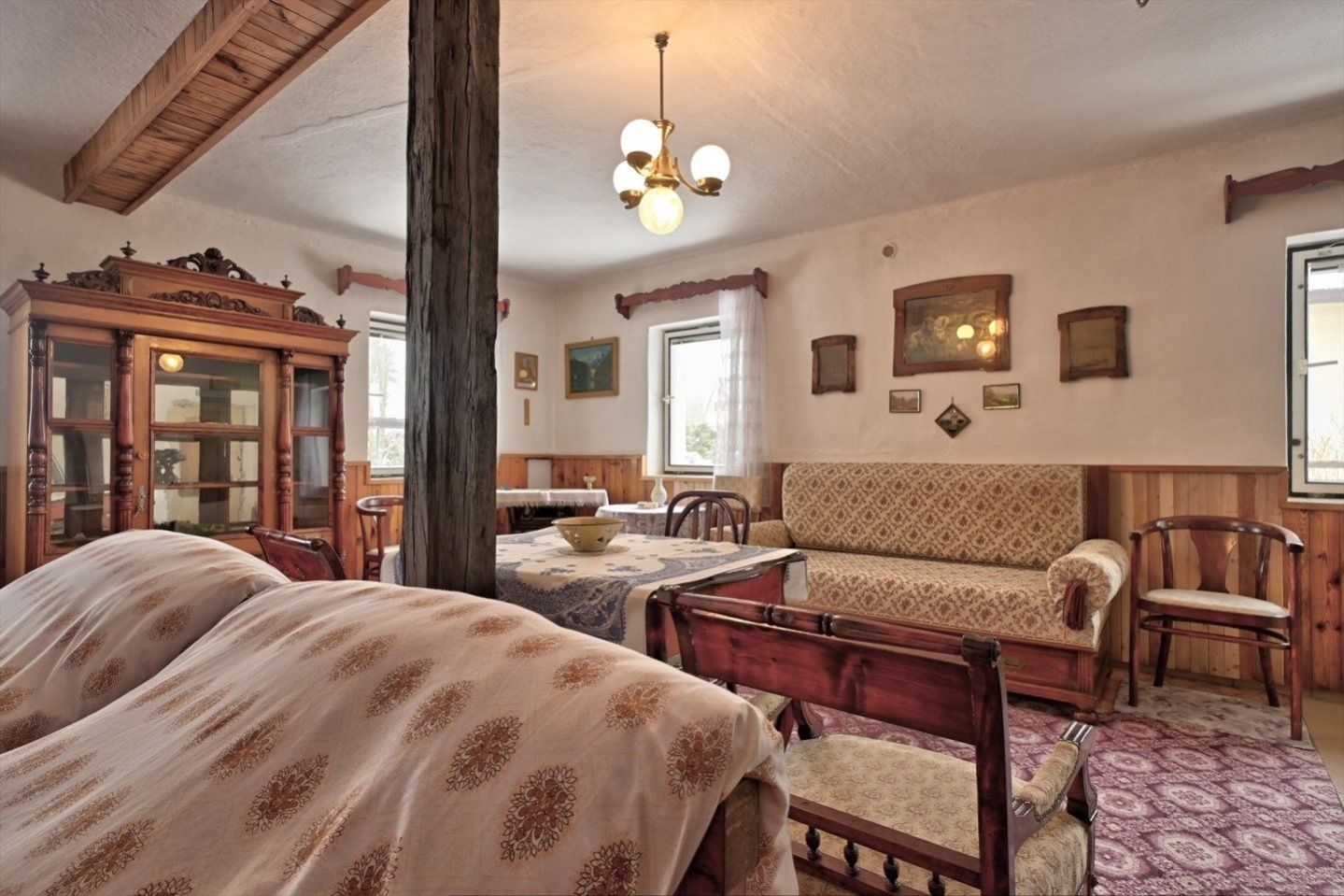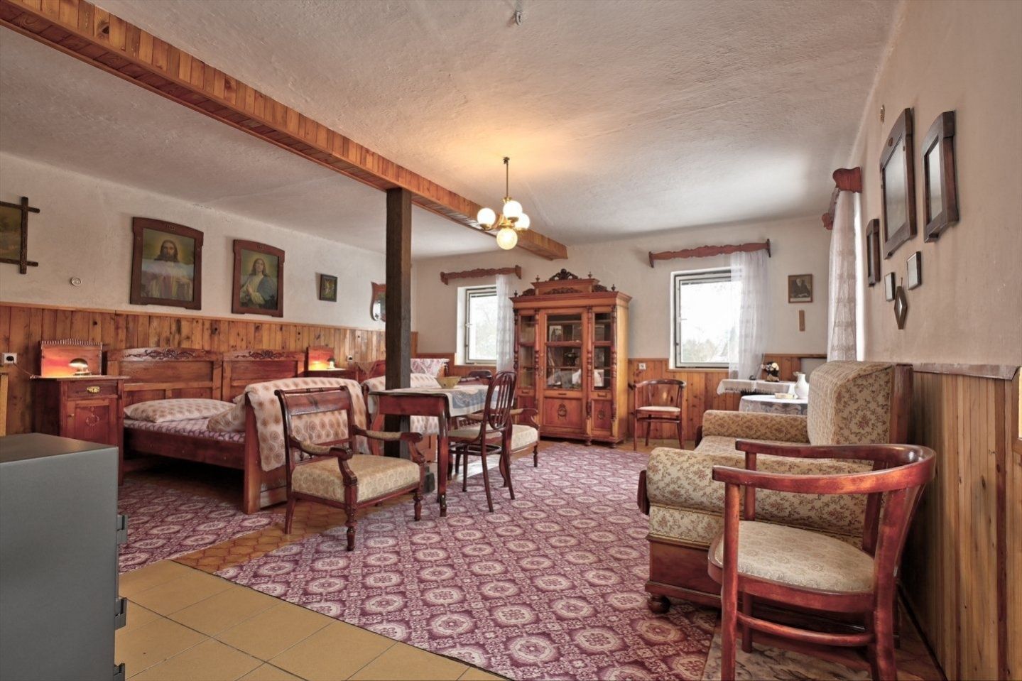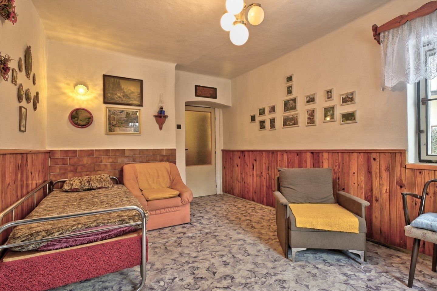 Nabízíme rodinný dům v obci Dolní Kalná v části Slemeno. Zděný dům s původními prvky obytné a hospodářské části má zachované klenuté stropy a kamenná ostění. V podkroví je jedna obytná místnost a rozsáhlé prostory pro úpravy a využití dle představ nového vlastníka. V přízemí je prostorná ložnice a obývací pokoj s částečně oddělenou kuchyní. Na konci chodby je vstup do spižírny, do koupelny s odděleným WC a do malého sklepa. K obytnému domu navazuje garáž s dílnou a zastřešením pro dřevo. Dům je obklopený rovinatým pozemkem. Je napojen na vodovodní řád a septik. Vytápění je zajištěno lokálními kamny či elektrickými přímotopy, ohřev vody elektrickým bojlerem. Obchody a služby se nachází v nedalekém Hostinném 5 km a Vrchlabí vzdáleném 15 km. Momentálně je dům využívaný pro rekreaci. Jeho umístění lze považovat za strategické místo pro dojezd do zimních středisek i spoustu příležitostí letních výletů po okolí - ZOO, přehrada Les Království, hrad Pecka, větrný mlýn a další zajímavá místa.