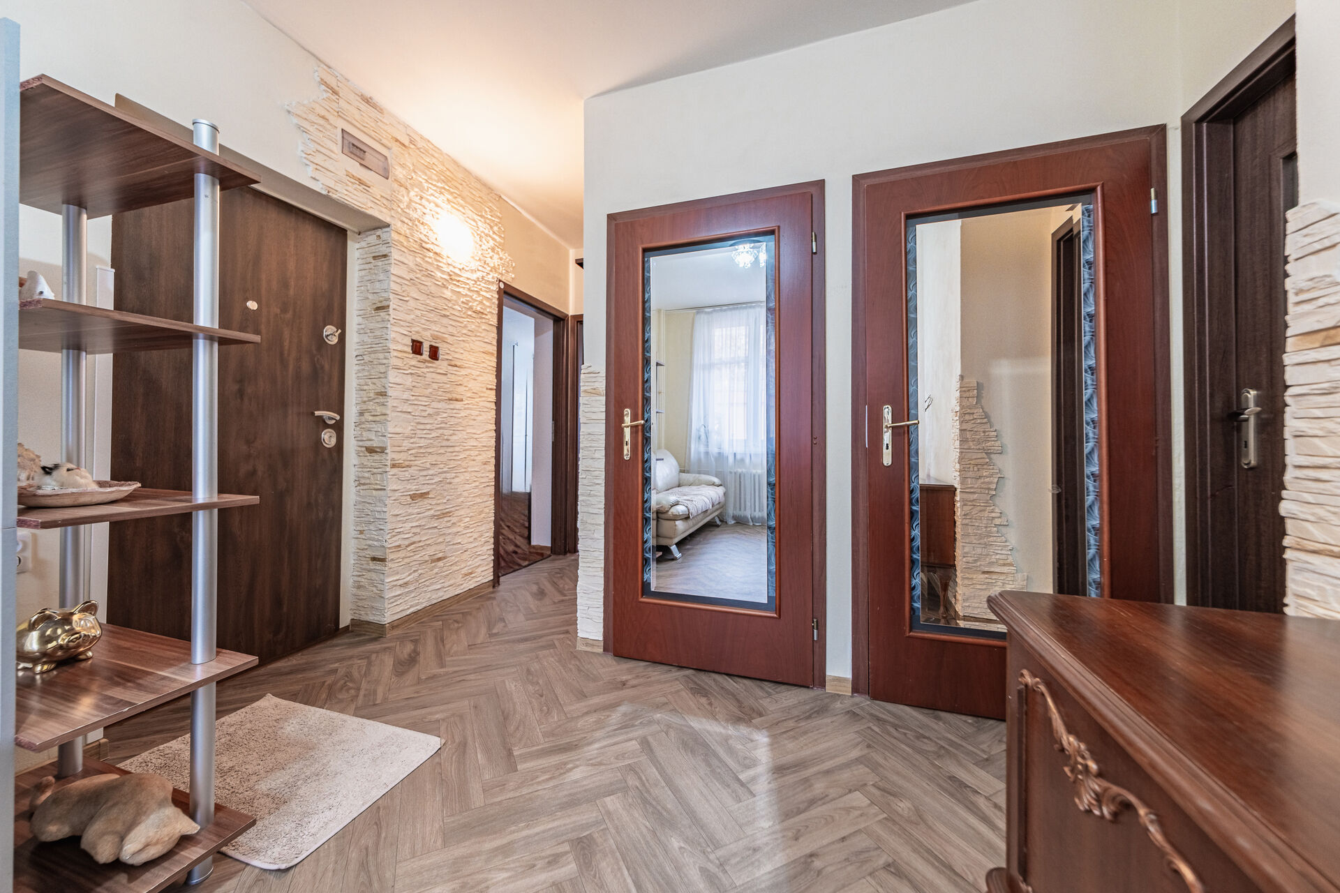 Nabízíme k prodeji světlý a prostorný byt 3+1 o velikosti 100 m2, s balkónem 7,5 m2, komorou 3 m2 a sklepem 6 m2, ve zvýšeném přízemí čtyřpatrového domu se zahradou. Dispozice bytu je velmi praktická, vstupní hala se dvěma komorami, tři samostatné pokoje s vestavěnými skříněmi na míru, nová kuchyně, samostatné WC, koupelna s vanou a další komora na potraviny. Byt je světlý, vzdušný, a díky své velikosti nabízí komfortní bydlení pro rodinu i náročnější klienty. Čtyřpatrový dům (48 bytů) prošel celkovou rekonstrukcí, zateplení, oprava střechy, nové vodovodní trubky. Stejně tak byt byl celý zrekonstruován, nové podlahy, podhledy, vestavěné skříně, nová kuchyň na míru i nové koupelny. Topení centrální dálkové. Rozvody elektřiny v mědi v domě i bytě. Dům se nachází v klidné ulici s výbornou občanskou vybaveností, v docházkové vzdálenosti - školy, školky, obchody, pošta, restaurace i zdravotnická zařízení. Skvělá dopravní dostupnost do centra Prahy (MHD, metro, tramvaj). Pražské Strašnice jsou čtvrtí, která si drží osobité kouzlo a zároveň nabízí moderní městský životní styl. Byt je ideální jak pro bydlení, tak jako investiční příležitost k pronájmu.