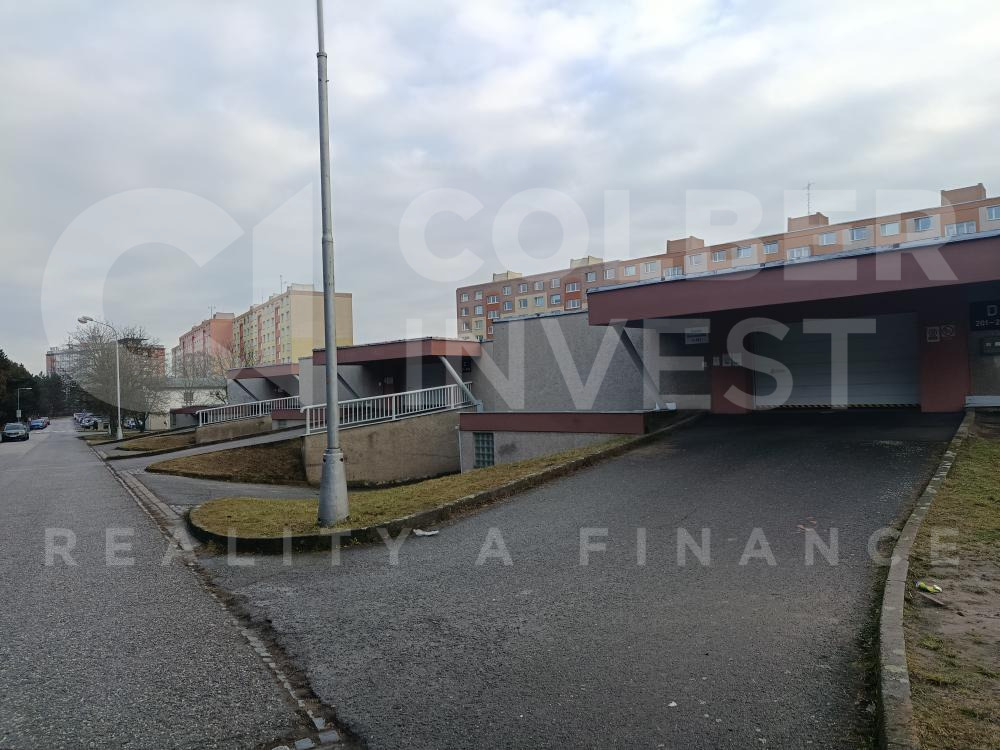 Výhradní prodej garáže se spoluvlastnickým podílem na budově a pozemku o pl. 14,60 m2 (cca 5,6 x 2,6 m), umístěné v 1.NP třípodlažní, cihlové budovy, tvořící rozlehlý garážový komplex. Vjezd do budovy přes automatická vjezdová vrata, v garáži přístupné manuálně ovládanými, plechovými vraty s výškou 196 cm je vlastní osvětlení, el. zásuvky na příjezdové chodbě. V blízkosti budovy MHD, roční náklady za užívání 3200,- Kč (el. energie, správa, údržba, FO). Garáž po prodeji ihned volná.