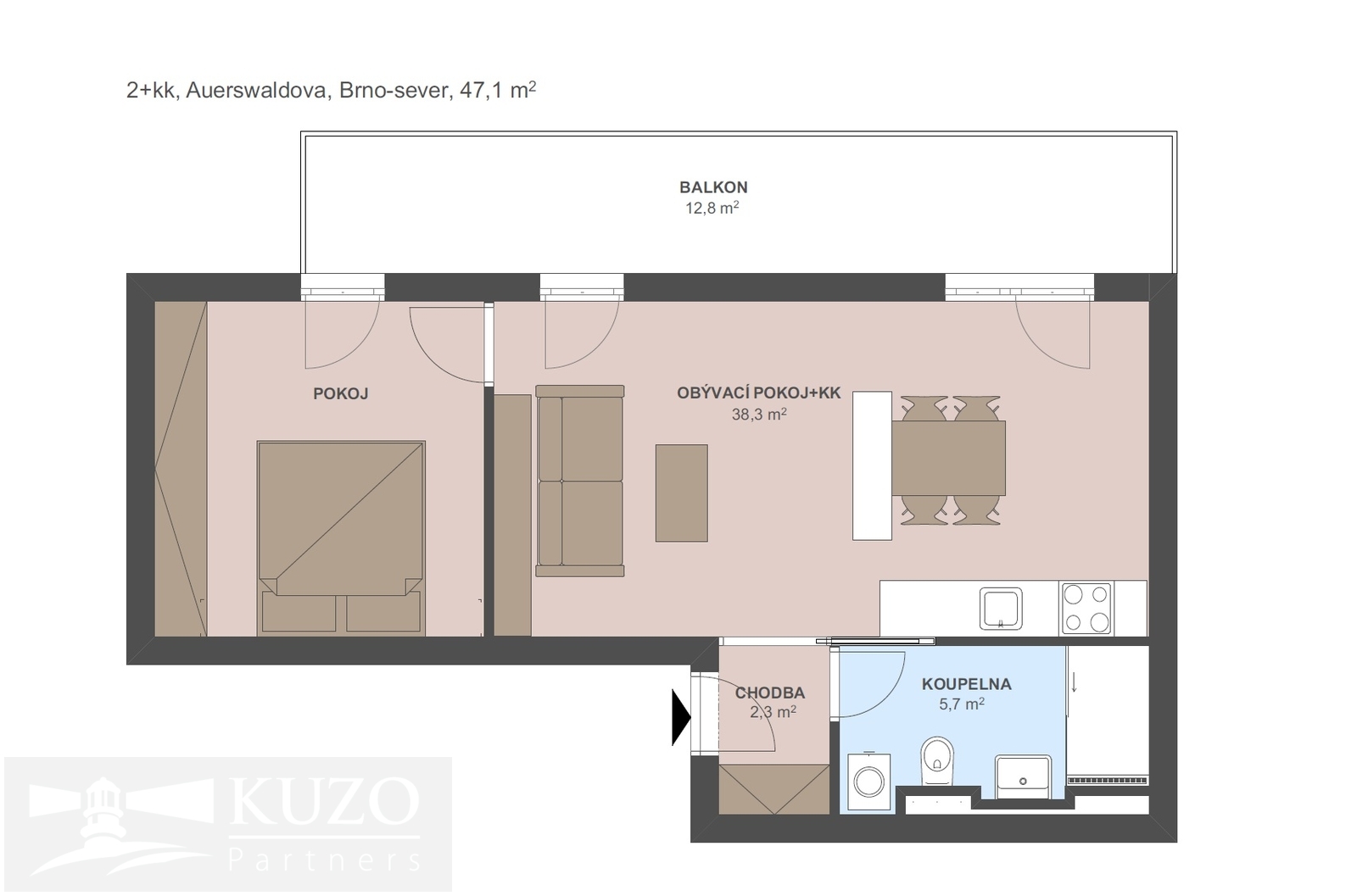 Pronájem bytu 2+kk, 57 m2, Brno, ul. Dusíkova