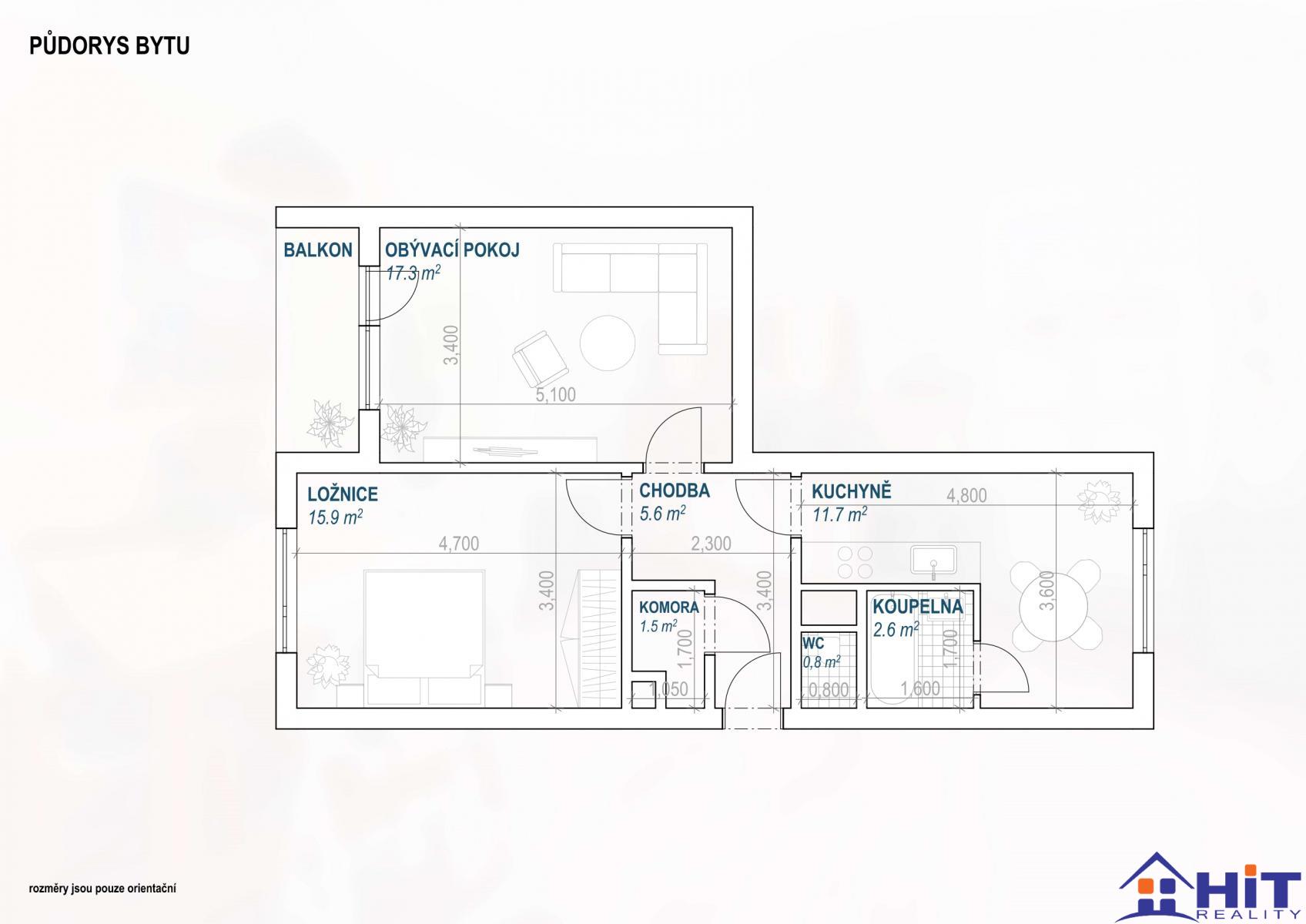 Nabízíme k prodeji světlý byt o dispozici 2+1 s lodžií, který se nachází v klidné části Turnova. Byt je situován v 1. podlaží panelového domu z přibližně roku 1990, který nedávno prošel celkovým zateplením. Dispozice bytu je velmi praktická a nabízí dostatek prostoru jak pro pár, tak i menší rodinu. Obývací pokoj o velikosti 17,9 m2 je orientován na jih a díky tomu je příjemně prosvětlený po celý den. Ložnice o výměře 16,2 m2 poskytuje dostatek místa pro manželskou postel i úložné prostory. Samostatná kuchyně (11,9 m2) je vybavena kuchyňskou linkou a sporákem a nabízí prostor pro jídelní kout. Součástí bytu je koupelna s vanou a umyvadlem, samostatné WC, chodba a praktická komora o velikosti 1,7 m2. K bytu náleží také lodžie 3,8 m2 a velký sklep 8 m2, který výrazně rozšiřuje úložné možnosti. Celková výměra bytu je 57 m2 + lodžie 3,8 m2 + sklep 8 m2. Vytápění i ohřev teplé vody jsou řešeny dálkově z teplárny, což zajišťuje pohodlný a bezstarostný provoz. Byt má plastová okna, podlahy jsou řešeny kombinací PVC a betonu. Bytové jádro je panelové se sádrokartonovými úpravami. Část elektroinstalace je již v mědi, zbytek je původní hliník. Byt prošel částečnou rekonstrukcí přibližně před 10 lety a je aktuálně vyklizený, připravený k okamžitému užívání nebo úpravám dle vlastních představ. Parkování je možné pohodlně na parkovišti přímo před domem. Velkou výhodou je samotná lokalita klidné místo s výbornou dostupností. V pěší vzdálenosti najdete obchody, školy, školky i zdravotnické služby. Zároveň jste během pár minut na nájezdu na rychlostní silnici I/35 a dálnici D10. Turnov je vstupní branou do Českého ráje a nabízí široké možnosti volnočasových aktivit. V blízkosti se nachází restaurace Plaudit (cca 200 m), zámek Hrubý Rohozec, pivovar Rohozec, zámek Hrubá Skála či hrad Trosky. Lokalita tak spojuje pohodlné městské bydlení s přírodou a historií na dosah. Byt představuje ideální příležitost pro vlastní bydlení i jako investici. Pro více informací či sjednání osobní prohlídky nás neváhejte kontaktovat.