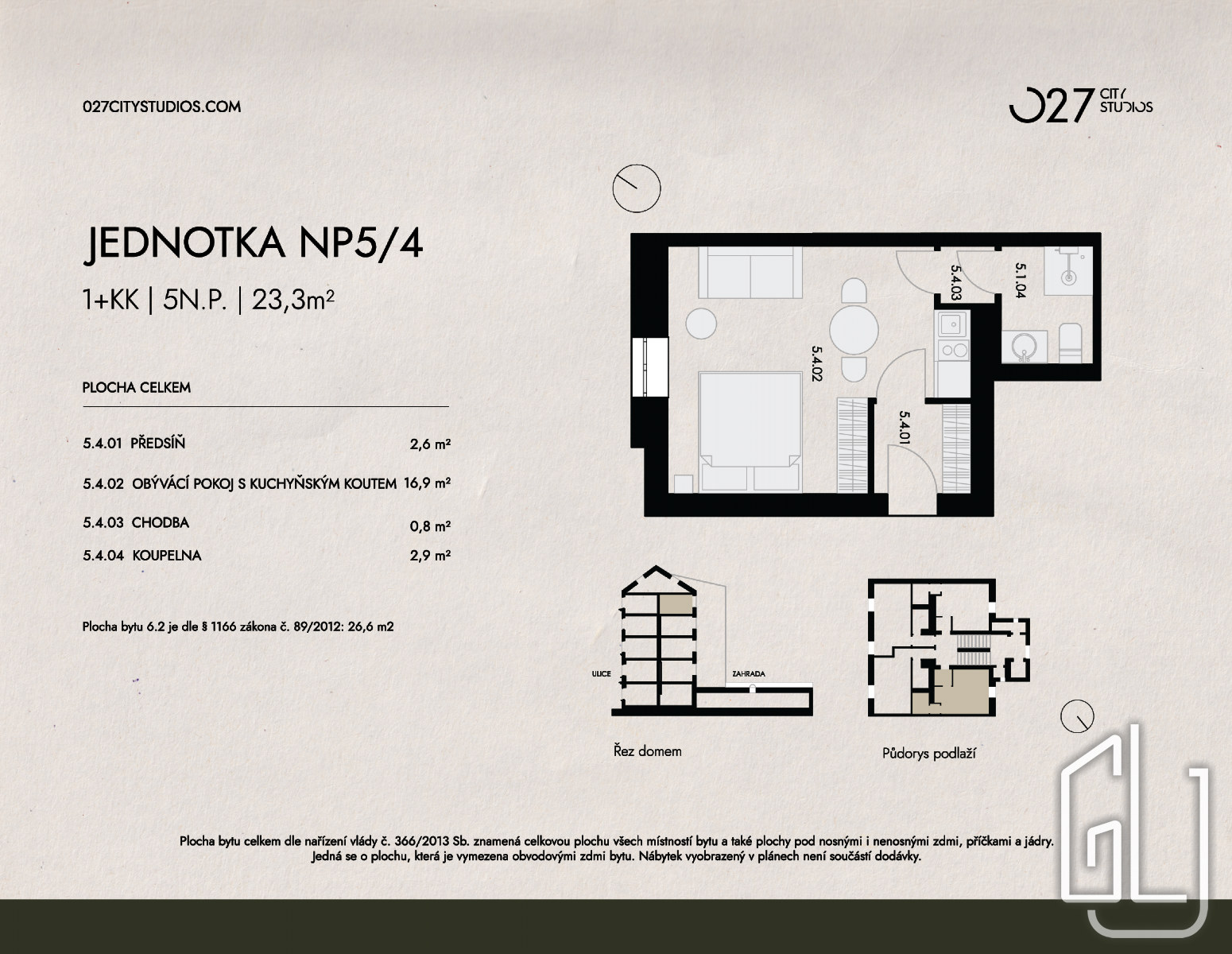 GLJ Partners představuje první vlnu prodeje projektu O27 City Studios rezidenční developerský projekt studiových jednotek v atraktivní lokalitě u náměstí Jiřího z Poděbrad, na pomezí Vinohrad a Žižkova. Dokončení projektu je plánováno v 1. čtvrtletí roku 2026, prohlídky jsou již možné. Projekt představuje renovovaný prvorepublikový dům a nabízí jednotky 1+kk a 2+kk a také ateliéry o výměrách od 16,5 do 37,4 m2. Jednotka č. 5/4 o výměře 23,3 m2 se nachází v 5. nadzemním podlaží renovovaného cihlového domu s výtahem v ulici Ondříčkova, Praha 3. Dispozice 1+kk nabízí světlý obytný prostor s kuchyňským koutem, koupelnu se sprchou a toaletou. Byt je orientován na severovýchod do klidného vnitrobloku, takže zůstává mimo ruch ulice. K jednotce náleží sklepní kóje o ploše 2,6 m2 v suterénu (-1. NP). Nabízená jednotka patří mezi malometrážní byty, které jsou v této části Prahy dlouhodobě velmi žádané pro nájemní bydlení. Díky tomu obvykle nabízí stabilní využití, dobrou obsazenost a zároveň solidní prodejnost do budoucna. Dispozice 1+kk je z investičního hlediska jedním z nejpraktičtějších formátů pro uložení kapitálu na pražském rezidenčním trhu. O27 City Studios není jen o jednotce, ale i o pohodlí kolem. V domě jsou nové společné prostory a výtah, k tomu garáž s možností dokoupení parkovacího stání, kolárna a zelený vnitroblok, kde si v teplých měsících dáte kávu nebo gril. Rezidentům je k dispozici také prádelna a ke každé jednotce náleží sklepní kóje. Lokalita O27 City Studios stojí přesně v bodě, kde se Vinohrady a Žižkov přirozeně prolínají, a je to znát na každém kroku. Za pár minut jste u Žižkovské věže a v Mahlerových sadech, kde si můžete dát piknik pod věží nebo si jen odpočinout v zeleni nad městem. V podobné vzdálenosti leží i náměstí Jiřího z Poděbrad, jedno z nejživějších lokálních center, známé farmářskými trhy a venkovními akcemi. Když chcete větší parkové zázemí, blízko jsou také Riegrovy sady, oblíbené pro procházky i výhledy při západu slunce. A pro město po práci má okolí svůj vlastní rytmus: kavárny, vinárny a lokální podniky přímo v okolních ulicích. Dopravní dostupnost: Náměstí Jiřího z Poděbrad (metro A) je vzdálené pouhých 5 minut chůze, stejně jako zastávka Olšanské náměstí. Na zastávku Lipanská dojdete za 6 minut. Do centra se dostanete za 15 minut MHD a přibližně za 10 minut autem. V nabídce jsou také obdobné jednotky v dalších podlažích (v různých fázích rekonstrukce). Pro více informací nás kontaktujte. V případě zájmu vám zajistíme hypoteční financování prostřednictvím našich prověřených partnerských specialistů. Převezmou s vámi celý proces od úvodního nastavení financování přes porovnání nabídek až po komunikaci s bankou a podpis úvěrové dokumentace.