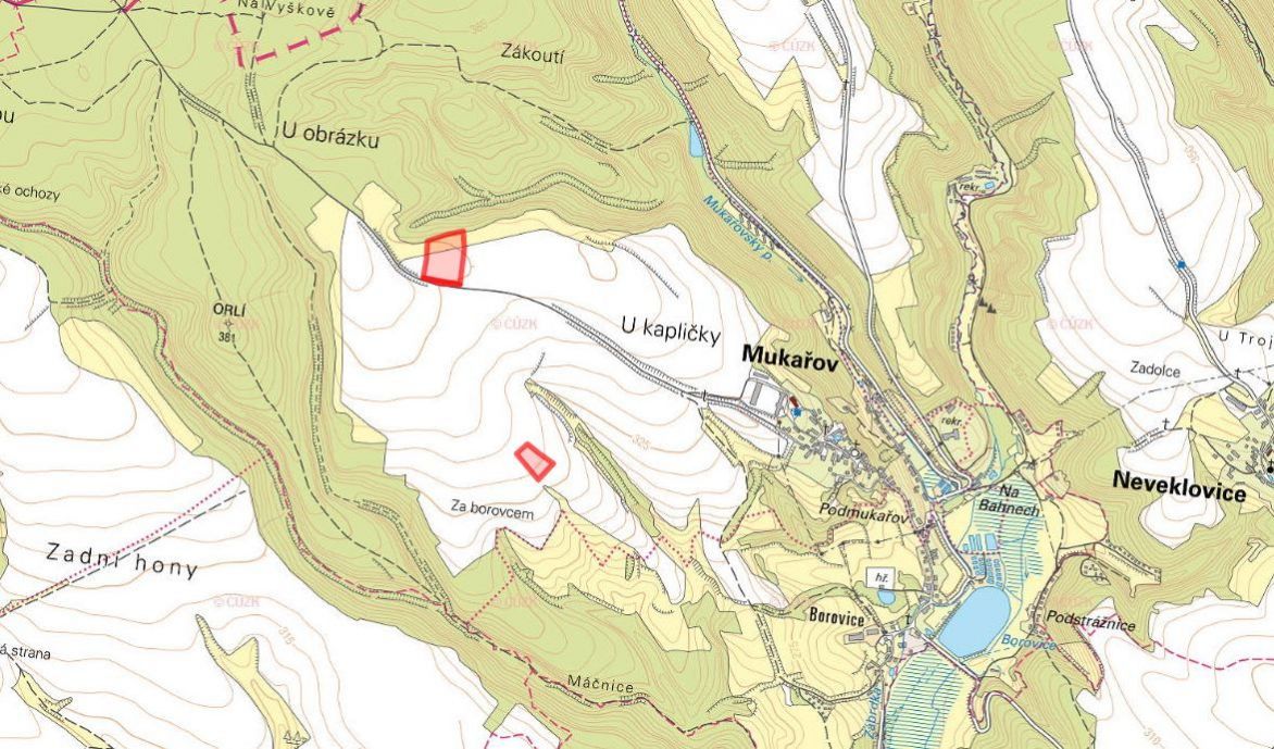V katastrálním území Mukařov u Jiviny, obec Mukařov, okres Mladá Boleslav, nabízíme ke koupi vlastnictví na souboru zemědělských pozemků. Pozemky jsou zapsány na listu vlastnictví č. 927. Jedná se o tyto parcely: 101/21 orná půda 228/4 trvalý travní porost 268/23 orná půda Celková výměra parcel je 32 171 m a k prodeji je na nich nyní vlastnictví 16 086 m, z toho 15 709 m tvoří orná půda. Pozemky se nacházejí v lokalitě s velmi dobrou bonitou půdy průměrně 12,14 Kč/m, přičemž u vybraných parcel dosahuje až 12,77 Kč/m. Orná půda leží v rovinatém zemědělském bloku, což umožňuje efektivní hospodaření s využitím moderní techniky. Přístup k pozemkům je zajištěn po parcelách ve vlastnictví obce, což poskytuje pohodlnou obslužnost a jistotu dlouhodobé dostupnosti. V katastrálním území dosud neproběhly komplexní pozemkové úpravy. Do budoucna tak lze očekávat jejich realizaci, která může přinést zlepšení přístupových cest, úpravu hranic a přehlednější uspořádání pozemků. Pro více informací o této nabídce mne kontaktujte telefonicky nebo e-mailem. Pozemky nabízím k exkluzivnímu prodeji v zastoupení vlastníka. Cena je uvedena včetně provize. Majitel si vyhrazuje právo vybrat kupujícího na základě nabídky.