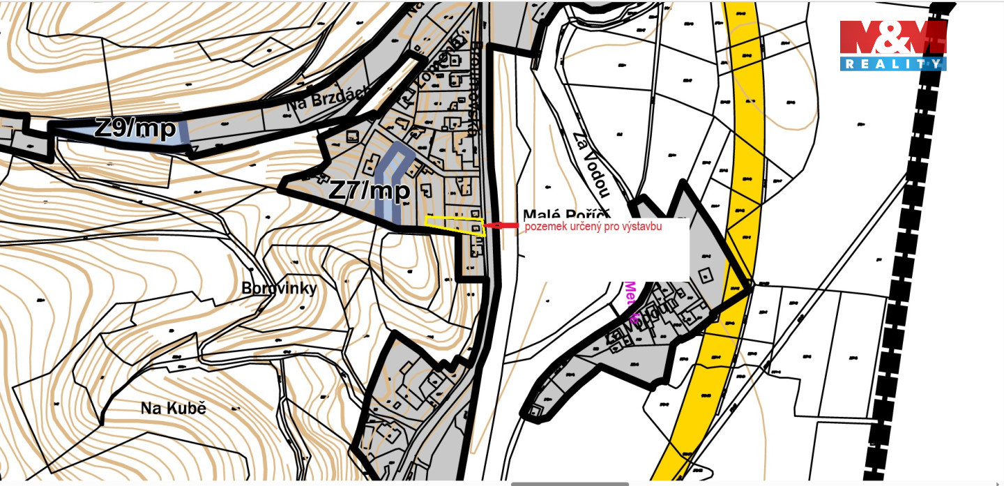 Nabízíme k prodeji atraktivní stavební pozemek o rozloze 796 m2 v centru obce Malé Poříčí. Pozemek je ideální pro výstavbu rodinného bydlení, nachází se v prolukách stávající zástavby a nabízí výbornou dopravní dostupnost díky plánovanému obchvatu na Hronov. Přední část pozemku s garáží je ideální pro výstavbu, zatímco zbytek pozemku ve svahu poskytuje soukromí a možnost kreativního zahradního řešení. Na pozemek je přiveden elektrický proud, kanalizace a přípojka vody jsou na hranici pozemku. Výškové a objemové řešení staveb musí respektovat charakter okolní zástavby. Výjimečná příležitost pro ty, kteří hledají klidné bydlení s dobrou dopravní dostupností.