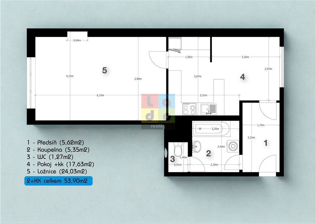 Nabízíme Vám k pronájmu byt 2+kk, 54 m2, v obci Praha 9 Hloubětín, ul. Slévačská. Bytová jednotka se nachází v 1. patře bytového domu s výtahem. Dispozice bytu: předsíň 5,62 m2, obývací pokoj s kuchyňským koutem 17,63 m2, ložnice 24,03 m2, koupelna 5,35 m2 a WC 1,27 m2. Celková výměra bytu činí 53,90 m2. Okna plastová, podlahy dlažba, plovoucí a vinyl. Byt je kompletně vybaven. Možnost venkovního stání pro jeden vůz. Volný od 01.04.2026. Pro více informací volejte svého makléře.