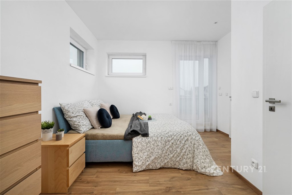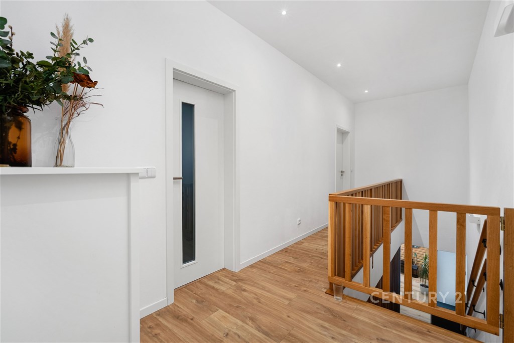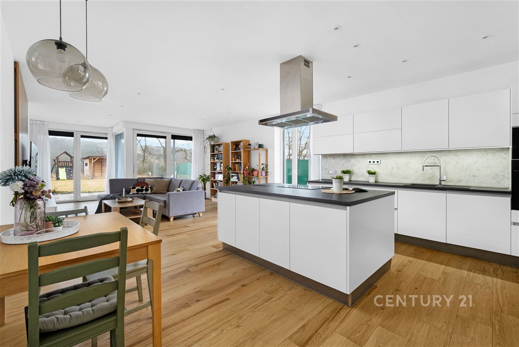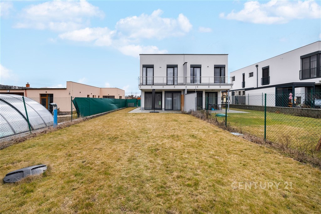 Představte si domov, kde ráno otevíráte okna do klidné krajiny, kde máte dostatek prostoru pro rodinu i vlastní soukromí a přitom jste za pár minut v Brně. V oblíbené obci Hajany nabízíme moderní rodinný dům o dispozici 4+kk a užitné ploše 147,5 m2 na pozemku o velikosti 612 m2, kolaudovaný v roce 2021. Dům splňuje energetickou třídu B, tedy velmi úsporný standard, který zajišťuje dlouhodobě příznivé provozní náklady. Tato nemovitost spojuje současnou architekturu, kvalitní provedení a příjemnou atmosféru místa, kde se budete cítit opravdu doma. První nadzemní podlaží tvoří otevřený a velkorysý obytný prostor, který přirozeně propojuje obývací část, jídelnu a kuchyni. Kuchyňská linka s ostrůvkem nabízí dostatek pracovní i úložné plochy a díky svému čistému designu působí nadčasově. Velkoformátová okna přivádějí do interiéru dostatek přirozeného světla a umožňují přímý vstup na terasu a zahradu, čímž vytvářejí plynulé propojení interiéru s exteriérem. Na tomto podlaží se dále nachází vstupní chodba s úložnými prostory, pracovna, technická místnost a samostatné WC. Dispozice je praktická, promyšlená a vhodná pro každodenní rodinný život i setkávání s přáteli. Horní podlaží je vyhrazeno klidové části domu. Nacházejí se zde tři samostatné pokoje, které mohou sloužit jako ložnice, dětské pokoje nebo pracovna. Hlavní ložnice nabízí přímý vstup na balkon s výhledem do okolní zeleně, což vytváří příjemný pocit prostoru a soukromí, vlastní koupelnu a šatnu. Součástí patra je prostorná koupelna v moderním designu s vanou i sprchovým koutem a samostatné WC. Celé podlaží působí světlým a vzdušným dojmem a poskytuje dostatek komfortu pro všechny členy domácnosti. Pozemek o velikosti 612 m2 nabízí dostatek prostoru pro relaxaci, rodinné aktivity i případné budoucí úpravy podle vlastních představ. Na obytnou část plynule navazuje terasa, která vytváří ideální místo pro každodenní posezení i letní setkávání s přáteli. Otevřený výhled do okolní krajiny za domem podtrhuje pocit klidu, soukromí a prostoru, který je v této lokalitě velmi příjemným benefitem. Součástí zahrady je retenční nádrž s možností dopouštění z vodovodu a technologie pro automatické zavlažování trávníku, což usnadňuje údržbu a zvyšuje komfort užívání. Parkování je zajištěno přímo na vlastním pozemku, a to s dostatečnou kapacitou pro více vozidel. Dům je postaven z cihelného zdiva Porotherm 30 Profi a zateplen minerální vatou o tloušťce 150 mm. Energetická náročnost budovy odpovídá třídě B, tedy velmi úsporné kategorii, což se pozitivně promítá do dlouhodobých nákladů na provoz. V celém domě je instalováno podlahové vytápění napojené na plynový kotel a plastová okna jsou osazena izolačními dvojskly. Provozní náklady jsou stabilní a přehledné: elektřina přibližně 1 590 Kč měsíčně, plyn cca 2 040 Kč měsíčně, voda zhruba 1 000 Kč měsíčně, roční stočné přibližně 9 000 Kč. Poplatek za komunální odpad se v obci nehradí.