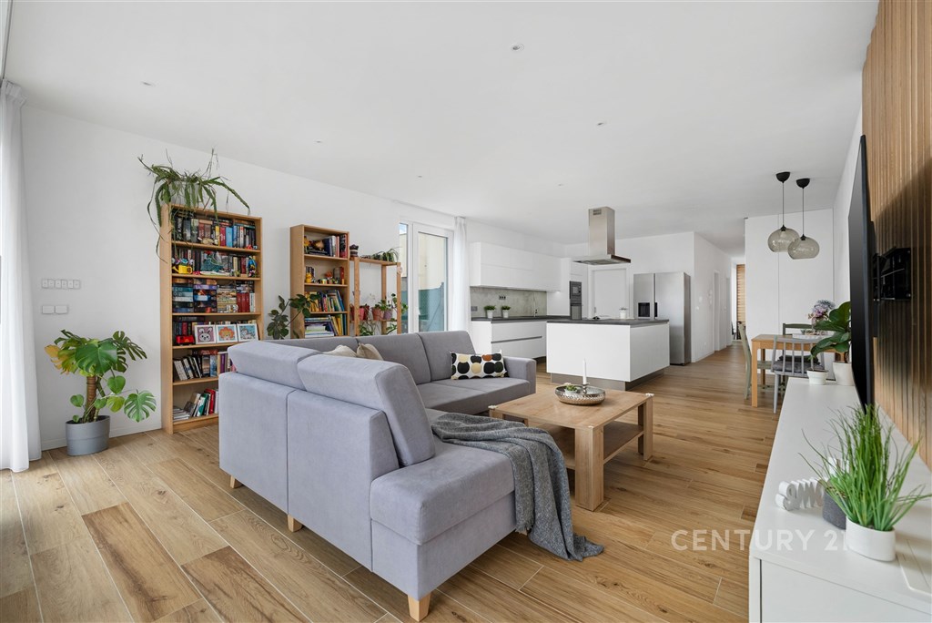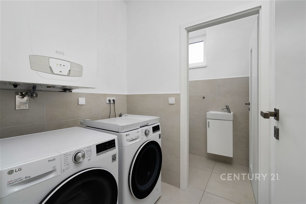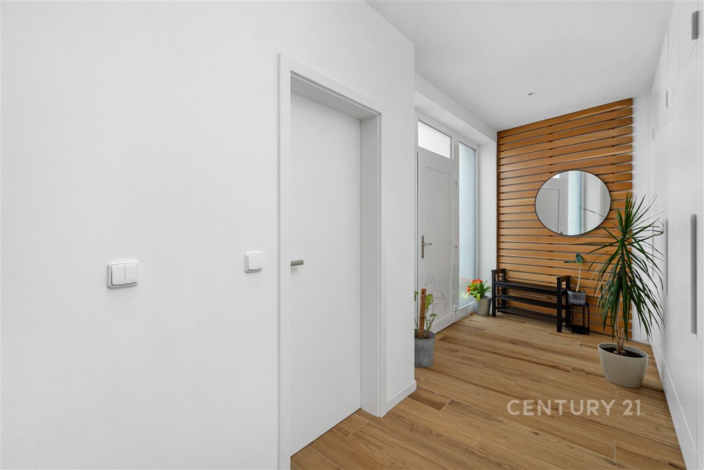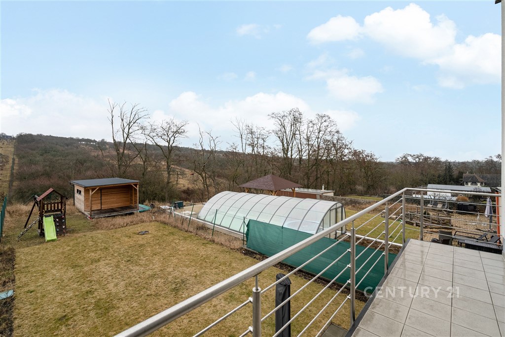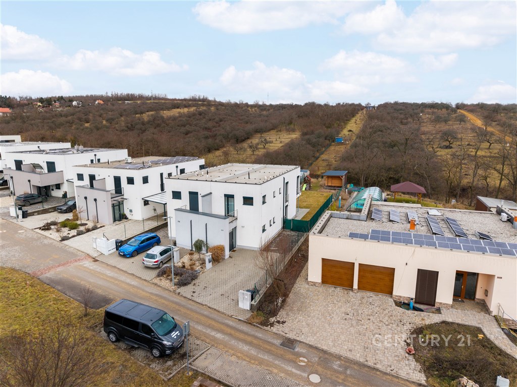 Představte si domov, kde ráno otevíráte okna do klidné krajiny, kde máte dostatek prostoru pro rodinu i vlastní soukromí a přitom jste za pár minut v Brně. V oblíbené obci Hajany nabízíme moderní rodinný dům o dispozici 4+kk a užitné ploše 147,5 m2 na pozemku o velikosti 612 m2, kolaudovaný v roce 2021. Dům splňuje energetickou třídu B, tedy velmi úsporný standard, který zajišťuje dlouhodobě příznivé provozní náklady. Tato nemovitost spojuje současnou architekturu, kvalitní provedení a příjemnou atmosféru místa, kde se budete cítit opravdu doma. První nadzemní podlaží tvoří otevřený a velkorysý obytný prostor, který přirozeně propojuje obývací část, jídelnu a kuchyni. Kuchyňská linka s ostrůvkem nabízí dostatek pracovní i úložné plochy a díky svému čistému designu působí nadčasově. Velkoformátová okna přivádějí do interiéru dostatek přirozeného světla a umožňují přímý vstup na terasu a zahradu, čímž vytvářejí plynulé propojení interiéru s exteriérem. Na tomto podlaží se dále nachází vstupní chodba s úložnými prostory, pracovna, technická místnost a samostatné WC. Dispozice je praktická, promyšlená a vhodná pro každodenní rodinný život i setkávání s přáteli. Horní podlaží je vyhrazeno klidové části domu. Nacházejí se zde tři samostatné pokoje, které mohou sloužit jako ložnice, dětské pokoje nebo pracovna. Hlavní ložnice nabízí přímý vstup na balkon s výhledem do okolní zeleně, což vytváří příjemný pocit prostoru a soukromí, vlastní koupelnu a šatnu. Součástí patra je prostorná koupelna v moderním designu s vanou i sprchovým koutem a samostatné WC. Celé podlaží působí světlým a vzdušným dojmem a poskytuje dostatek komfortu pro všechny členy domácnosti. Pozemek o velikosti 612 m2 nabízí dostatek prostoru pro relaxaci, rodinné aktivity i případné budoucí úpravy podle vlastních představ. Na obytnou část plynule navazuje terasa, která vytváří ideální místo pro každodenní posezení i letní setkávání s přáteli. Otevřený výhled do okolní krajiny za domem podtrhuje pocit klidu, soukromí a prostoru, který je v této lokalitě velmi příjemným benefitem. Součástí zahrady je retenční nádrž s možností dopouštění z vodovodu a technologie pro automatické zavlažování trávníku, což usnadňuje údržbu a zvyšuje komfort užívání. Parkování je zajištěno přímo na vlastním pozemku, a to s dostatečnou kapacitou pro více vozidel. Dům je postaven z cihelného zdiva Porotherm 30 Profi a zateplen minerální vatou o tloušťce 150 mm. Energetická náročnost budovy odpovídá třídě B, tedy velmi úsporné kategorii, což se pozitivně promítá do dlouhodobých nákladů na provoz. V celém domě je instalováno podlahové vytápění napojené na plynový kotel a plastová okna jsou osazena izolačními dvojskly. Provozní náklady jsou stabilní a přehledné: elektřina přibližně 1 590 Kč měsíčně, plyn cca 2 040 Kč měsíčně, voda zhruba 1 000 Kč měsíčně, roční stočné přibližně 9 000 Kč. Poplatek za komunální odpad se v obci nehradí.