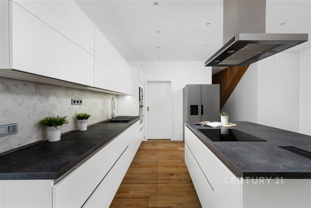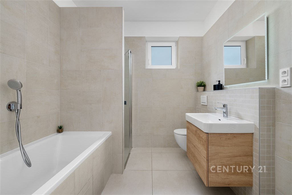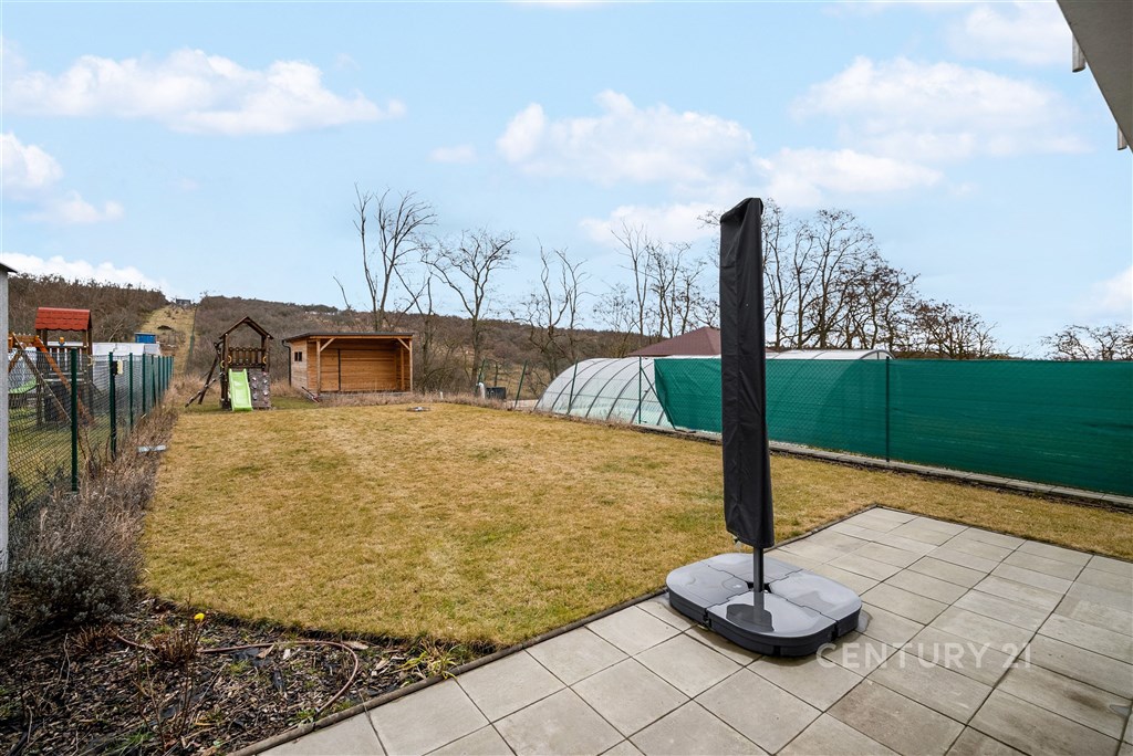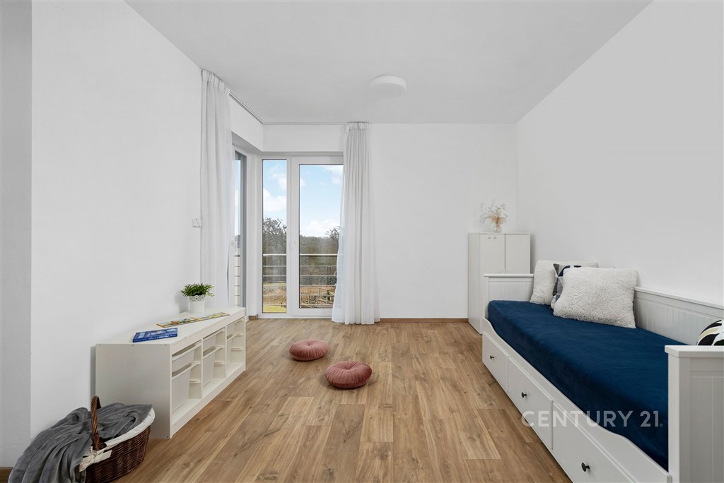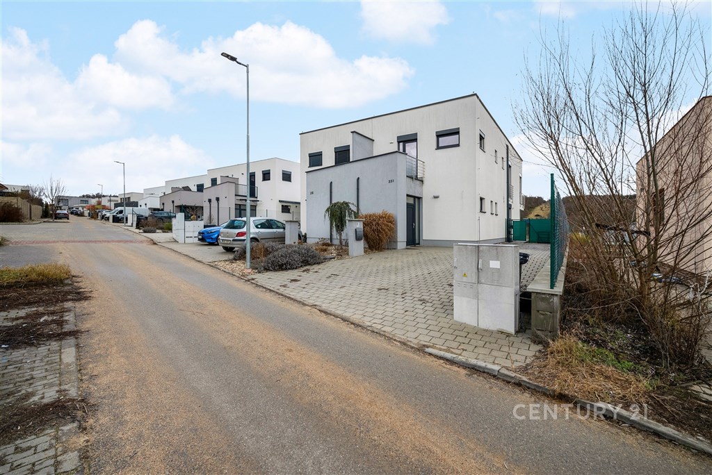 Představte si domov, kde ráno otevíráte okna do klidné krajiny, kde máte dostatek prostoru pro rodinu i vlastní soukromí a přitom jste za pár minut v Brně. V oblíbené obci Hajany nabízíme moderní rodinný dům o dispozici 4+kk a užitné ploše 147,5 m2 na pozemku o velikosti 612 m2, kolaudovaný v roce 2021. Dům splňuje energetickou třídu B, tedy velmi úsporný standard, který zajišťuje dlouhodobě příznivé provozní náklady. Tato nemovitost spojuje současnou architekturu, kvalitní provedení a příjemnou atmosféru místa, kde se budete cítit opravdu doma. První nadzemní podlaží tvoří otevřený a velkorysý obytný prostor, který přirozeně propojuje obývací část, jídelnu a kuchyni. Kuchyňská linka s ostrůvkem nabízí dostatek pracovní i úložné plochy a díky svému čistému designu působí nadčasově. Velkoformátová okna přivádějí do interiéru dostatek přirozeného světla a umožňují přímý vstup na terasu a zahradu, čímž vytvářejí plynulé propojení interiéru s exteriérem. Na tomto podlaží se dále nachází vstupní chodba s úložnými prostory, pracovna, technická místnost a samostatné WC. Dispozice je praktická, promyšlená a vhodná pro každodenní rodinný život i setkávání s přáteli. Horní podlaží je vyhrazeno klidové části domu. Nacházejí se zde tři samostatné pokoje, které mohou sloužit jako ložnice, dětské pokoje nebo pracovna. Hlavní ložnice nabízí přímý vstup na balkon s výhledem do okolní zeleně, což vytváří příjemný pocit prostoru a soukromí, vlastní koupelnu a šatnu. Součástí patra je prostorná koupelna v moderním designu s vanou i sprchovým koutem a samostatné WC. Celé podlaží působí světlým a vzdušným dojmem a poskytuje dostatek komfortu pro všechny členy domácnosti. Pozemek o velikosti 612 m2 nabízí dostatek prostoru pro relaxaci, rodinné aktivity i případné budoucí úpravy podle vlastních představ. Na obytnou část plynule navazuje terasa, která vytváří ideální místo pro každodenní posezení i letní setkávání s přáteli. Otevřený výhled do okolní krajiny za domem podtrhuje pocit klidu, soukromí a prostoru, který je v této lokalitě velmi příjemným benefitem. Součástí zahrady je retenční nádrž s možností dopouštění z vodovodu a technologie pro automatické zavlažování trávníku, což usnadňuje údržbu a zvyšuje komfort užívání. Parkování je zajištěno přímo na vlastním pozemku, a to s dostatečnou kapacitou pro více vozidel. Dům je postaven z cihelného zdiva Porotherm 30 Profi a zateplen minerální vatou o tloušťce 150 mm. Energetická náročnost budovy odpovídá třídě B, tedy velmi úsporné kategorii, což se pozitivně promítá do dlouhodobých nákladů na provoz. V celém domě je instalováno podlahové vytápění napojené na plynový kotel a plastová okna jsou osazena izolačními dvojskly. Provozní náklady jsou stabilní a přehledné: elektřina přibližně 1 590 Kč měsíčně, plyn cca 2 040 Kč měsíčně, voda zhruba 1 000 Kč měsíčně, roční stočné přibližně 9 000 Kč. Poplatek za komunální odpad se v obci nehradí.