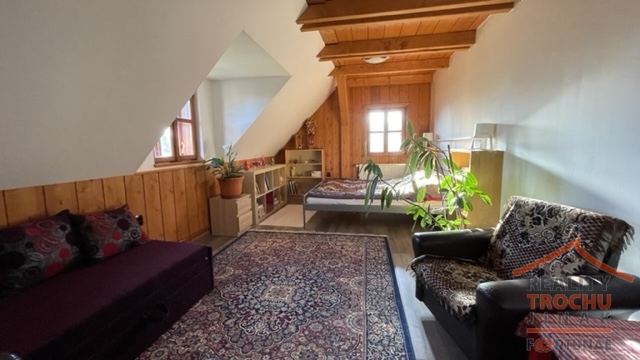 Nabízíme k prodeji rodinný dům 5+kk v malebné obci Podlevín. Tento patrový dům, postavený pouze z kvalitních materiálů a z cihlové konstrukce, disponuje pěti pokoji a kuchyňským koutem, což poskytuje dostatek prostoru pro velkou rodinu nebo pro ty, kteří potřebují několik místností pro práci, relaxaci či koníčky. V nemovitosti dvě moderní koupelny, kde jedna má vanu, druhá sprchový kout. Plastová okna 3 skla; podlahy vinyl. S užitnou plochou 185 m2 nabízí kompaktní, ale efektivní dispozici. Vytápění je realizováno elektrokotlem napojeným na podlahové topení, radiátory a dále pak krbová kamna v obýváku. Dům je kolaudovaný v roce 2013. Dům je v perfektním stavu bez známek opotřebení. Prostorné parkování pro 6 vozidel a velmi velká zahrada 3090 m2 s ovocnými stromy. Na zahradě je krytý bazén. Krásný a prostorný dům je situován v okrajové klidné části obce - nachází se v blízkosti lesa na okraji vesnice Podlevín, která je součástí města Nová Paka v okrese Jičín. Dům je velmi dobře zateplen a krbová kamna v obývacím pokoji dokáží vyhřát celý prostor domu. Okna jsou dřevěná, dveře a interiér rovněž dřevo. V přízemí je dlažba, ve druhém podlaží pak plovoucí podlaha, v koupelně v přízemí podlahové topení. V každé místnosti je rovněž el. topení. Dům je napojen na čističku odpadních vod a rovněž má svou vlastní studnu. Byl stavěn jako vícegenerační bydlení a jsou k tomu připravené i veškeré rozvody. Po vstupu do domu se ocitnete v zádveří s vestavěnou skříní a vejdete do předsíně (8,19 m2), která je hlavním komunikačním prostorem. Navazuje na schodiště, které spojuje přízemí s podkrovím. Chodba vede po levé straně do prostorného světlého obývacího pokoje s jídelnou (32,14 m2), na který navazuje kuchyňský kout (6,81 m2) a spíž. V přízemí se rovněž nachází technická místnost (7,54 m2), WC, šatna (5 m2), velká pracovna s kobercem (13,79 m2) a již zmíněná prostorná koupelna (13,30 m2). Po dřevěných schodech se dostaneme do 2.NP, kde jsou tři samostatné pokoje, šatna a sociální zařízení. Z prostoru velké chodby (11,19 m2) v poschodí je přístup do 3 pokojů (17,56 m2, 19,65 m2 a 29,54 m2). Ložnice je spojená se šatnou. Z chodby je přístup také na půdu. Obec Podlevín nabízí dobré dopravní spojení do okresního města Jičín (13km) a nedaleké Nové Paky (2,5km), autobusová zastávka je vzdálená 2,5 km. Veškerá občanská vybavenost se nachází v Nové Pace, sama obec má jen omezenou občanskou vybavenost (sezónní hospoda, plavecký bazén, hala na bruslení a lední hokej, nové hřiště, hasičárna a obecní úřad). V okolí je krásná příroda, sjezdovky jsou v dojezdové vzdálenosti (Jilemnice-13km, Vrchlabí -22km, Nová Paka - Máchova stezka na běžky), 24 km Dvůr Králové/ZOO). Doporučujeme, financování zajistíme.