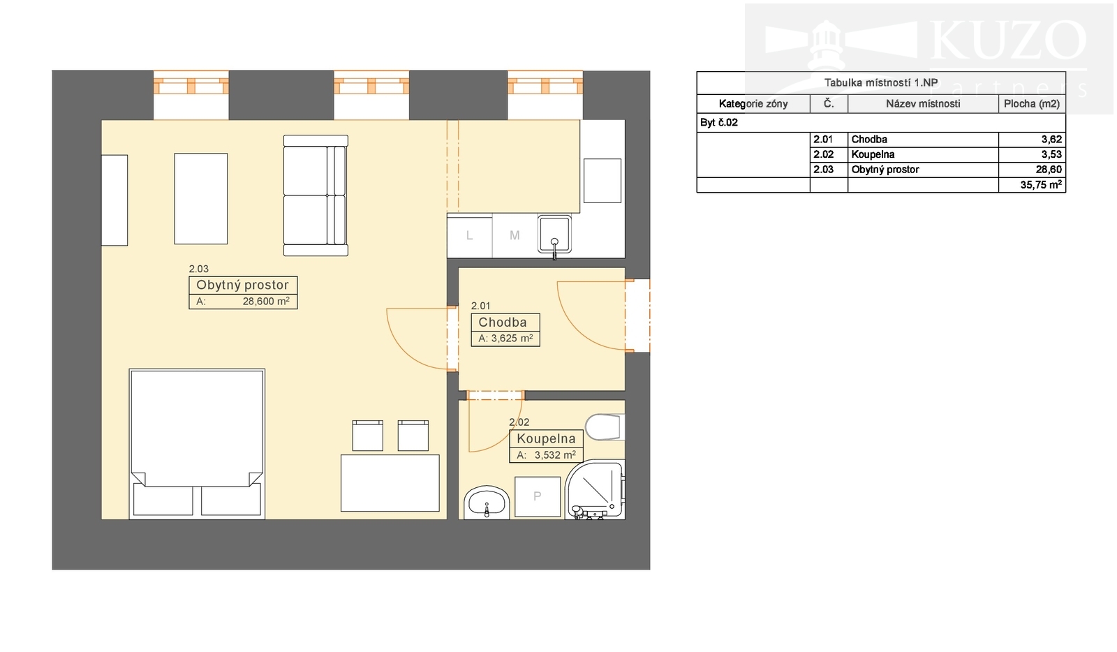 Investiční byt 1+kk 35,84 m2 v nové cihlové rezidenci! Prodej bytů v novém komorním projektu. Nabízíme vám jedinečnou příležitost být mezi prvními a zajistit si tak investici s vysokým potenciálem zhodnocení ještě před dokončením stavby. Výstavba je v plném proudu a předpokládaný termín dokončení je stanoven na konec dubna 2026 (v případě, že nenastanou nepředvídatelné komplikace). Pro koho je projekt ideální? • Pro investory: Dispozice 1+kk je na trhu s pronájmy dlouhodobě nejžádanější. Získáte tak nemovitost, která si na sebe dokáže efektivně vydělávat. • Pro jednotlivce a páry: Perfektní startovací bydlení s nízkými provozními náklady v novostavbě. • Pro seniory: Umístění ve zvýšeném přízemí zajišťuje pohodlný a téměř bezbariérový přístup. Úvodní nabídka bytů k prodeji: Buďte první, kdo si vybere byt, který nejlépe odpovídá vašim představám a investičnímu záměru: • Byt o výměře 35,84 m2 - cena 3.450.000 Kč Všechny ceny jsou konečné a zahrnují kompletní právní servis i provizi RK. 30% ceny platba po rezervaci, 70% po podpisu Kupní smlouvy (lze individuálně domluvit podmínky). Klíčové parametry projektu: • Konstrukce: Poctivý cihlový dům zaručující skvělé tepelně-izolační vlastnosti a dlouhou životnost. • Parkování: Aktuálně se řeší možnost parkování 5 míst u domu na soukromém parkovišti, prodej samostatně dle dohody, platí do vyprodání volných míst. • PENB: Energetická náročnost budovy: Třída C - Úsporná. Lokalita, která má vše: Byty se nachází ve strategicky výhodné lokalitě, která kombinuje klid s perfektní dostupností. • Centrum obce: Pouhých 500 metrů, tedy pár minut chůze. • Dopravní dostupnost: Vlakové nádraží vzdálené jen 400 metrů. Proč investovat právě teď? Koupě nemovitosti v úvodní fázi prodeje s sebou přináší nejlepší výběr a jistotu zhodnocení investice ihned po kolaudaci. Buďte o krok napřed. Získejte kompletní informace: Zaujala Vás tato nabídka? Pro bližší informace, detailní podklady k projektu a domluvení osobní schůzky neváhejte kontaktovat naši realitní kancelář. Domluvte si schůzku a buďte mezi prvními, kdo si vybere nejlepší byt pro své plány! ________________________________________ Upozornění: Fotografie označené hvězdičkou (*) v pravém dolním rohu jsou vizualizovány pomocí umělé inteligence a slouží pouze pro ilustraci možného budoucího stavu.