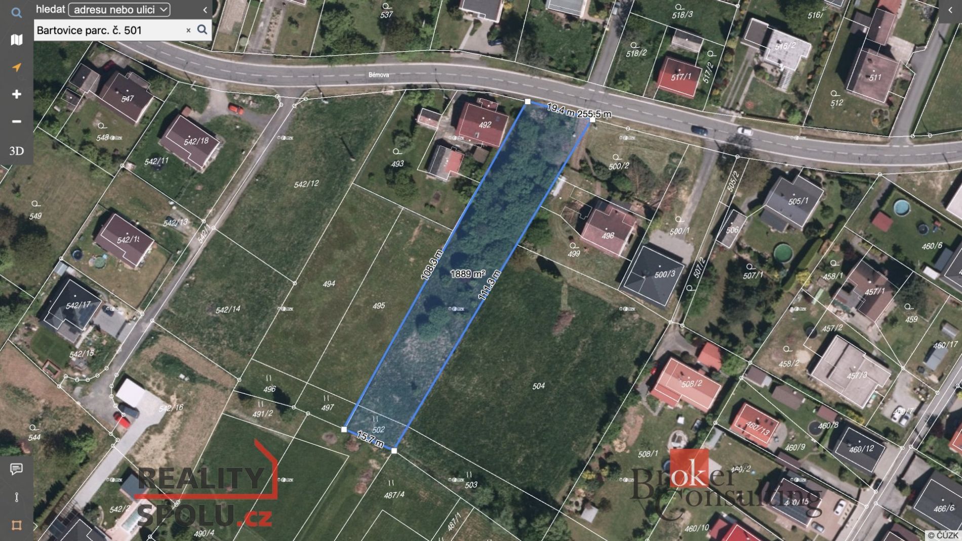 Pozemek, bydlení, prodej, Bartovice, Ostrava, Ostrava-město