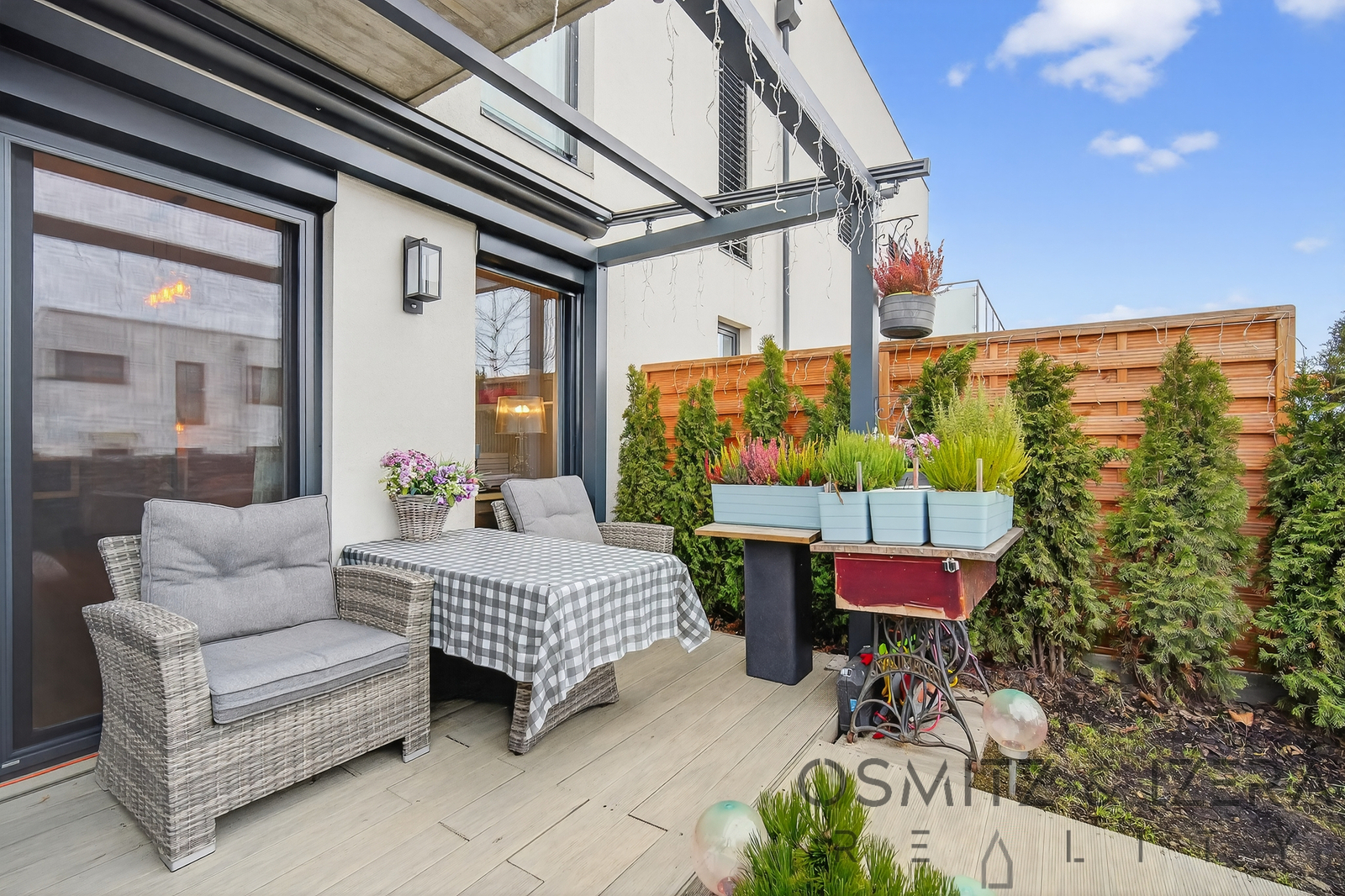Hledáte bydlení, které kombinuje komfort novostavby s nadstandardním venkovním prostorem? Světlý a prakticky řešený byt o dispozici 1+kk (45 m2) v oblíbené a klidné lokalitě Praha - Jahodnice. Tento byt není jen o metrech čtverečních - jeho největším lákadlem je velkorysá terasa o rozloze 25 m2, která díky instalované pergole slouží jako plnohodnotný letní obývák. Ať už plánujete grilování s přáteli, ranní jógu nebo relaxaci s knihou, zde najdete dokonalé soukromí. Dispozice a interiér: Byt v moderním designu lze snadno upravit na 2kk. Aktuálně jej tvoří prostorný obývací pokoj s kuchyní, ložnice oddělená japonskými stěnami a menší pracovna. • Kuchyně: Tvar „U“, ostrůvek se sklokeramickou deskou, vestavěné spotřebiče (americká lednice, horkovzdušná trouba, myčka, digestoř, dřez Franke), skleněné obklady a snížený strop s bodovými světly. • Koupelna: Vana, závěsné WC, černé keramické umyvadlo, pračka se sušičkou a topný žebřík. • Předsíň: Vestavěné úložné prostory a sezení. • Vybavení: V ceně je zahrnut i masivní nábytek v obývacím pokoji (komoda, police, stůl). Zahrada a technologie: Slunná zahrada (JV) s terasou je v osobním vlastnictví a nabízí naprosté soukromí díky 3 metry vysokému gabionovému plotu. • Vybavení zahrady: Hliníková pergola s motorickou střechou TaHoma, ratanové sezení, solární sprcha, vzrostlé jehličnany, venkovní osvětlení a přívod vody. • Chytrá domácnost: Motorické předokenní rolety, plisé žaluzie a sítě proti hmyzu ve všech oknech. • Technické parametry: Podlahové vytápění tepelným čerpadlem, energetická náročnost PENB B, velmi nízké měsíční náklady. • Úložné prostory: K bytu náleží praktický sklep v suterénu budovy. Byt je bez závazků a připraven k nastěhování. Lokalita Praha Jahodnice: Bydlení v Jahodnici nabízí ideální městské bydlení propojené s životem a přírodou. V docházkové vzdálenosti najdete veškerou občanskou vybavenost, zastávku MHD i místa pro aktivní odpočinek (cyklostezky, blízkost Hostivařské přehrady nebo parku v Dolních Počernicích). Tento byt je ideální volbou pro singles, mladé páry nebo jako bezpečná investice pro následný pronájem, který díky terase a vybavení najde nájemníky okamžitě. Přijďte se podívat na svůj nový domov. Budu se na vás těšit na prohlídce! Alexandra a Marek