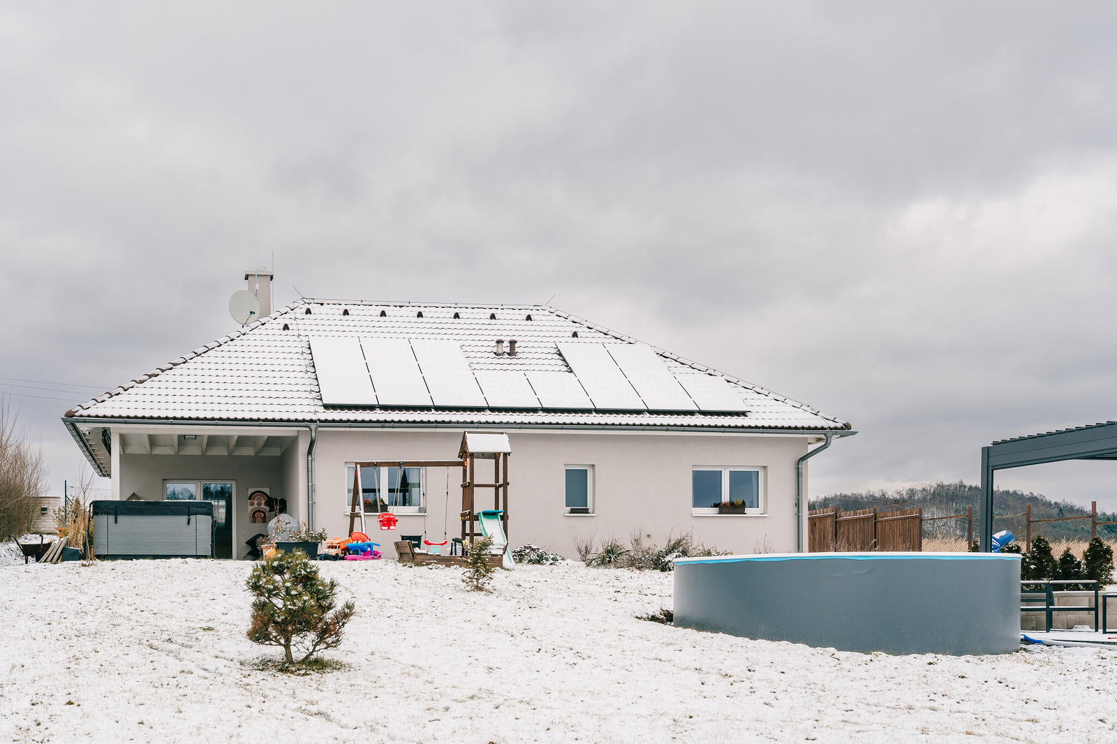 Nabízíme k prodeji rodinný dům 4+kk v části obce Nebřich - Neveklov, okres Benešov. Jednopodlažní dřevostavba ve velmi dobrém stavu nabízí komfortní a moderní rodinné bydlení s krásnými výhledy do okolní přírody. Dům je v osobním vlastnictví a dispozičně nabízí prostorný obývací pokoj propojený s kuchyní, tři ložnice a praktické zázemí v technické místnosti. Výhodou jsou také dvě WC a koupelna s velkým sprchovým koutem. Pochozí půda s dřevěnými krovy pak představuje možnost přestavby v bytovou jednotku nebo úložný prostor. Interiér je částečně vybaven, výraznou předností je krásná kuchyňská linka vybavená moderními spotřebiči. Podlahové vytápění je zajištěno tepelným čerpadlem, což přispívá k nízkým provozním nákladům a komfortnímu vytápění. Na zahradě se nachází bazén, který doplňuje volnočasové možnosti a zvyšuje atraktivitu nemovitosti. Na zahradě je také založen ovocný sad (švestka, broskev, jabloně, třešně, rakytník), ale najde se tu i prostor pro pěstování vlastní zeleniny. Vlastní zdroj dešťové vody na zálivku přispívá k větší udržitelnosti a snížení nákladů. Voda v domě je zajišťována z vrtané studny. V domě je i komínová vložka, která je připravená na připojení krbových kamen. Technické a další informace: Elektřina: 230 i 400 V. vlastní zdroj Fotovoltaika o výkonu 5,6kWp a bateriové uložiště o kapacitě 11,2kWh. V případě výpadku sítě je dům plně zálohovaný bateriemi. stav objektu — velmi dobrý zdroj topení — tepelné čerpadlo topné těleso — podlahové vytápění druh objektu — dřevostavba Stavba je celkově velmi ekologická a navržena s důrazem na nízké provozní náklady a dlouhodobou energetickou stabilitu. Nemovitost je vhodná pro zájemce hledající klidné bydlení s kontaktem s přírodou a komfortními technologiemi vytápění. Přátelské až komunitní sousedské prostředí v klidné rezidenční části. Lokalita poskytuje pěkné výhledy a dostatek soukromí. V Neveklově, který je vzdálen necelých 10 km najdete veškerou občanskou vybavenost. Cesta z Prahy Vám zabere cca 40min., cesta z Benešova cca 20min. Pokud jste rozhodnuti pro změnu svého bydlení, neváhejte nás kontaktovat a domluvit si prohlídku.