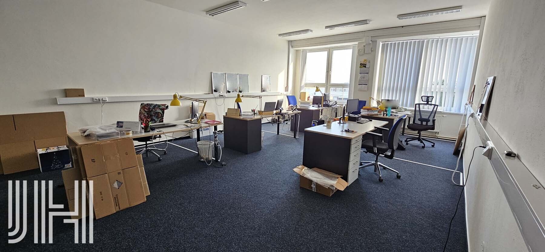 Nabízíme k pronájmu kanceláře v areálu firmy nacházející se v 1. patře budovy. Nabízíme k pronájmu 3 celky kanceláří o velikostech 3x kancelář (144,4 m2), 2x kancelář (68,1 m2), 5x kancelář (162,5 m2). Kanceláře jsou přístupné po schodišti z centrální chodby, soc. zařízení zvlášť na chodbě, vrátnice v objektu přístupná 24/7. Kanceláře jsou vybaveny datovými rozvody, osvětlením, klimatizací a koberci. Možnost využívání dalších místností v budově např. pro archiv dokumentů. Centrální plynové vytápění. Parkování osobními auty možné v areálu a je v ceně nájemného. V areálu je možné si také pronajmout parkování pro nákladní vozy dle velikosti - od 2.000 Kč bez DPH (do 3,5t), 2.500 Kč (do 12t) a 3.000 Kč (nad 12t). Služby se vyúčtovávají dle m2 pronajímaných prostor, nebo počtu osob. PENB - D.